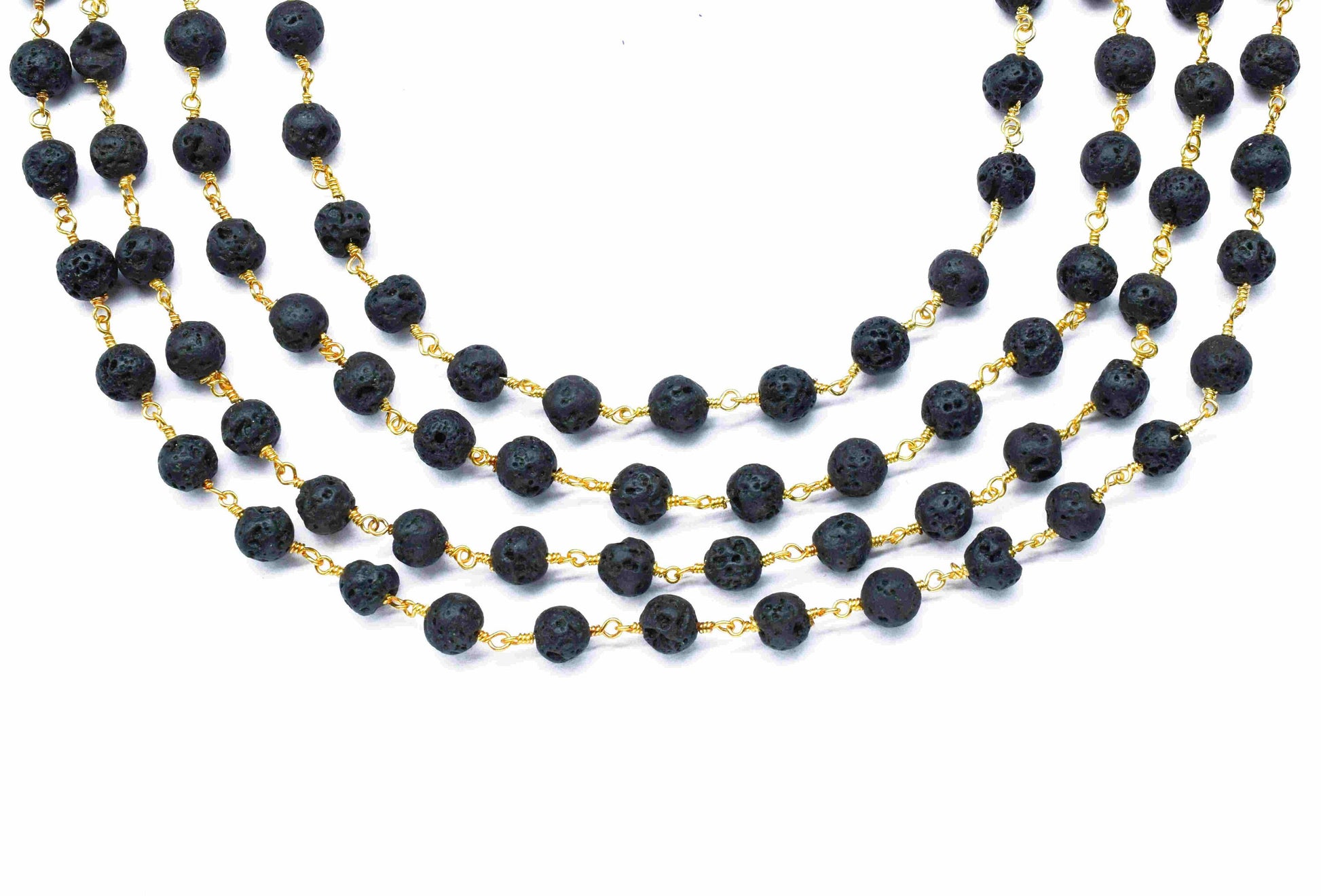 Black Lava Wire Wrapped Chain By Foot For Necklace,Black Lava 6mm round Shape Handmade Jewelry Making,Black Lava Smooth Beads Rosary,Gift