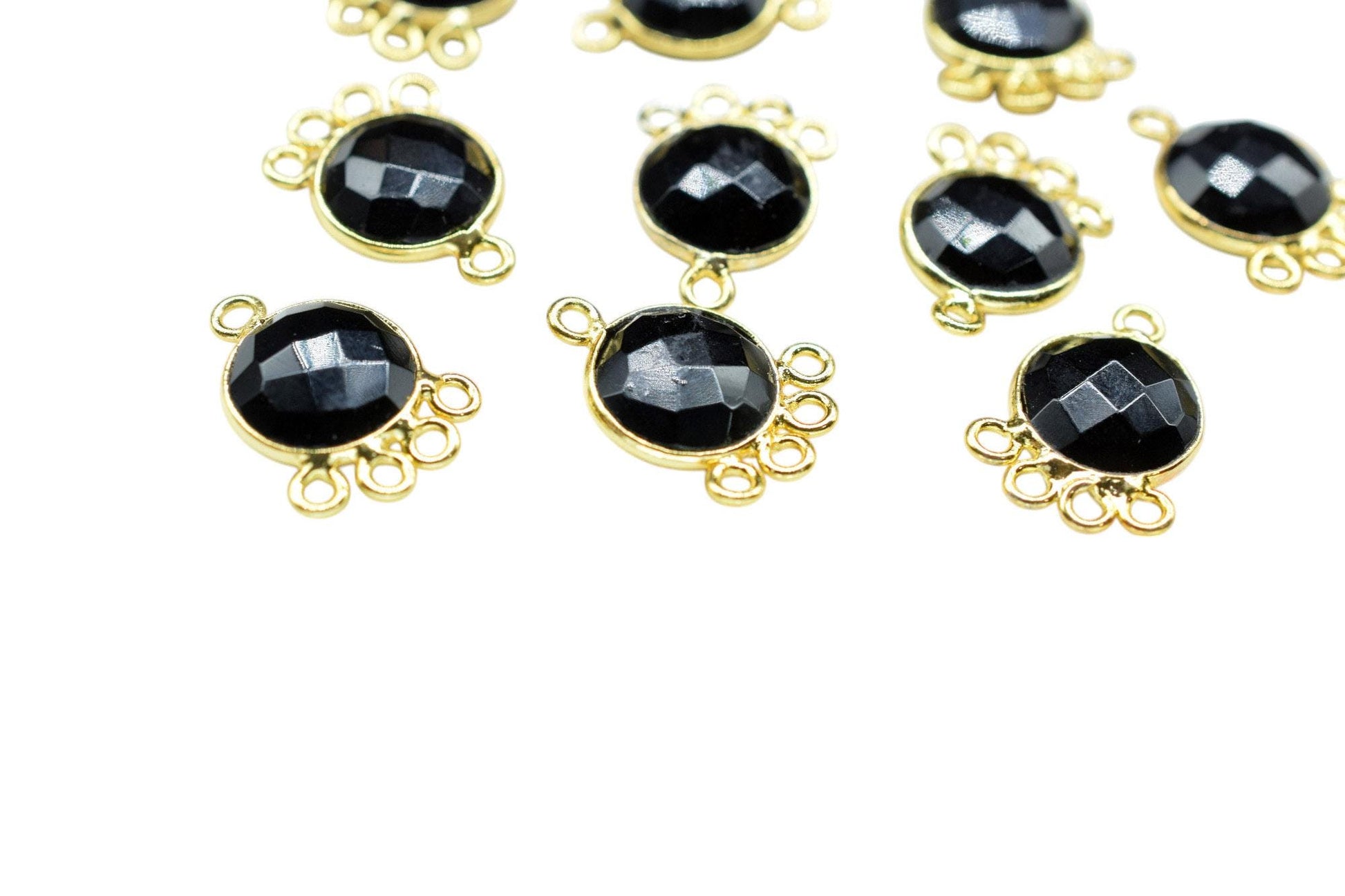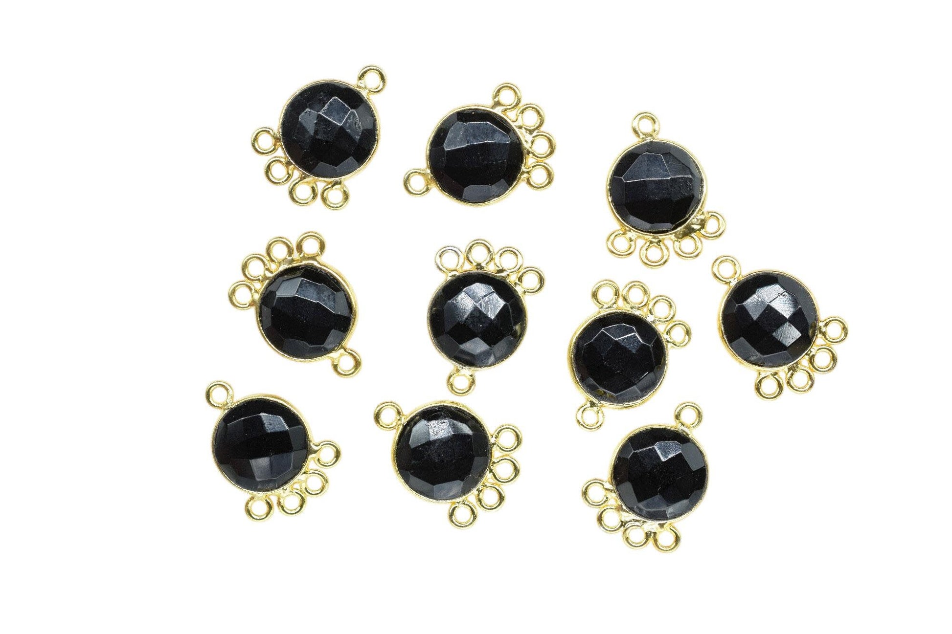 Black Onyx 10mm Round Bezel Charm/Gemstone Brass Component/Single Bail Pendant charms/Round Handmade Jewellery Connector/B'day Gift