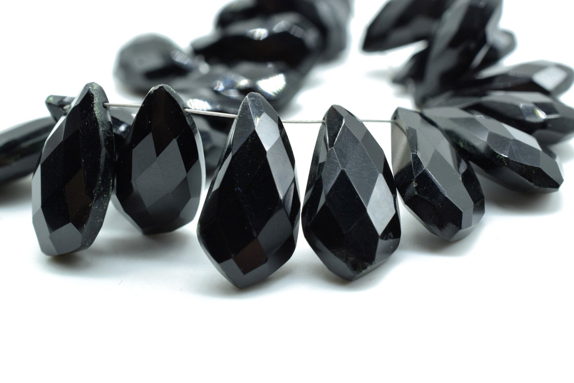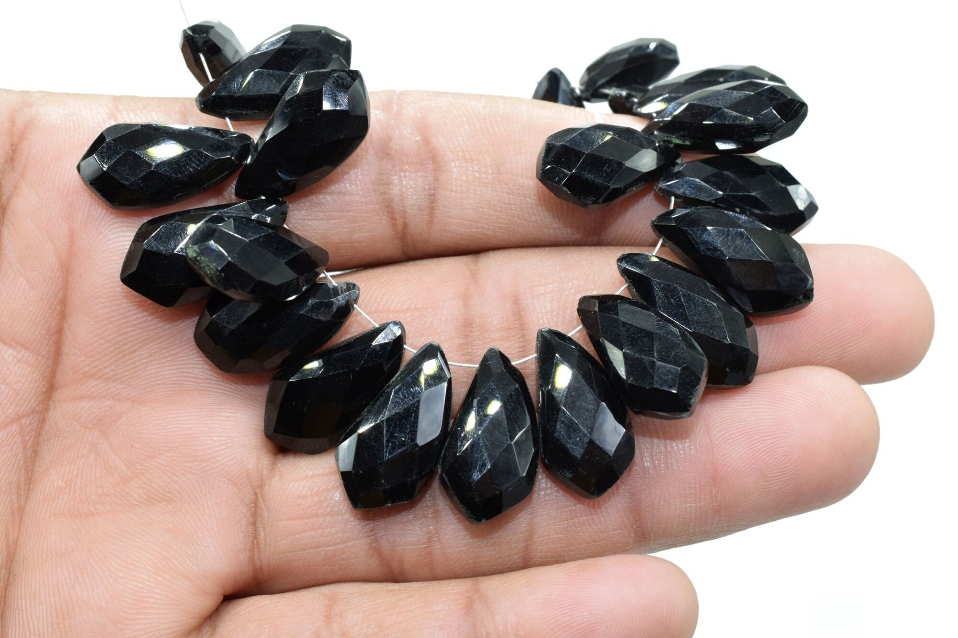 Black Onyx Faceted 10x20mm Tie Shape Briolette Beads,Pear Shape beads,Tie Shape Briolettes,Black Onyx Briolettes,Fancy Shape Briolettes