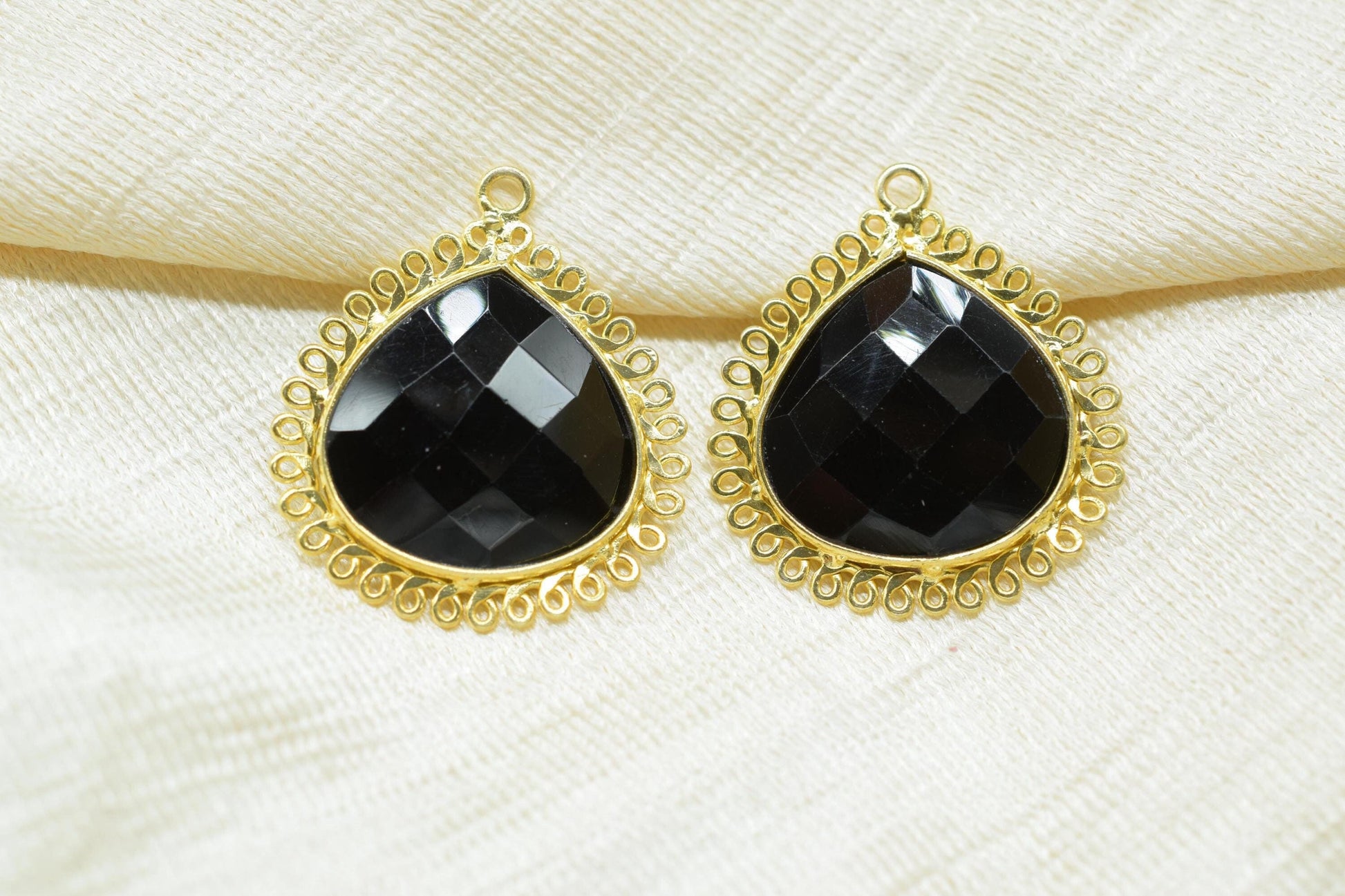 Black Onyx 20mm Heart Bezel Charms,Gemstone Brass Component,Wholesale Jewelry,Single Bail Pendant,Handmade Jewellery Connectors,Bday Gift
