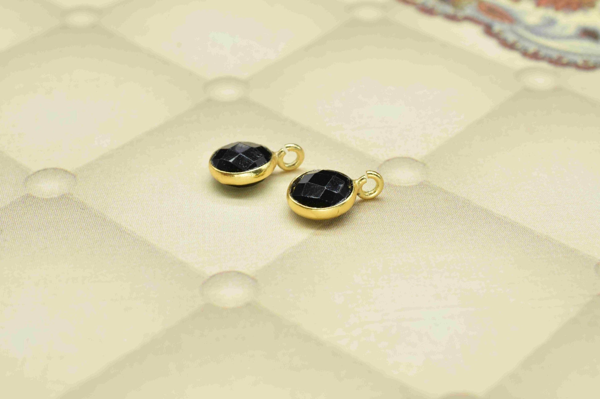 .Black Onyx 6mm Round Earring Connector,Black Gemstone Studs,Black Onyx Earring Connectors,DIY Jewellery Making Supply,Round Connector Jewellery