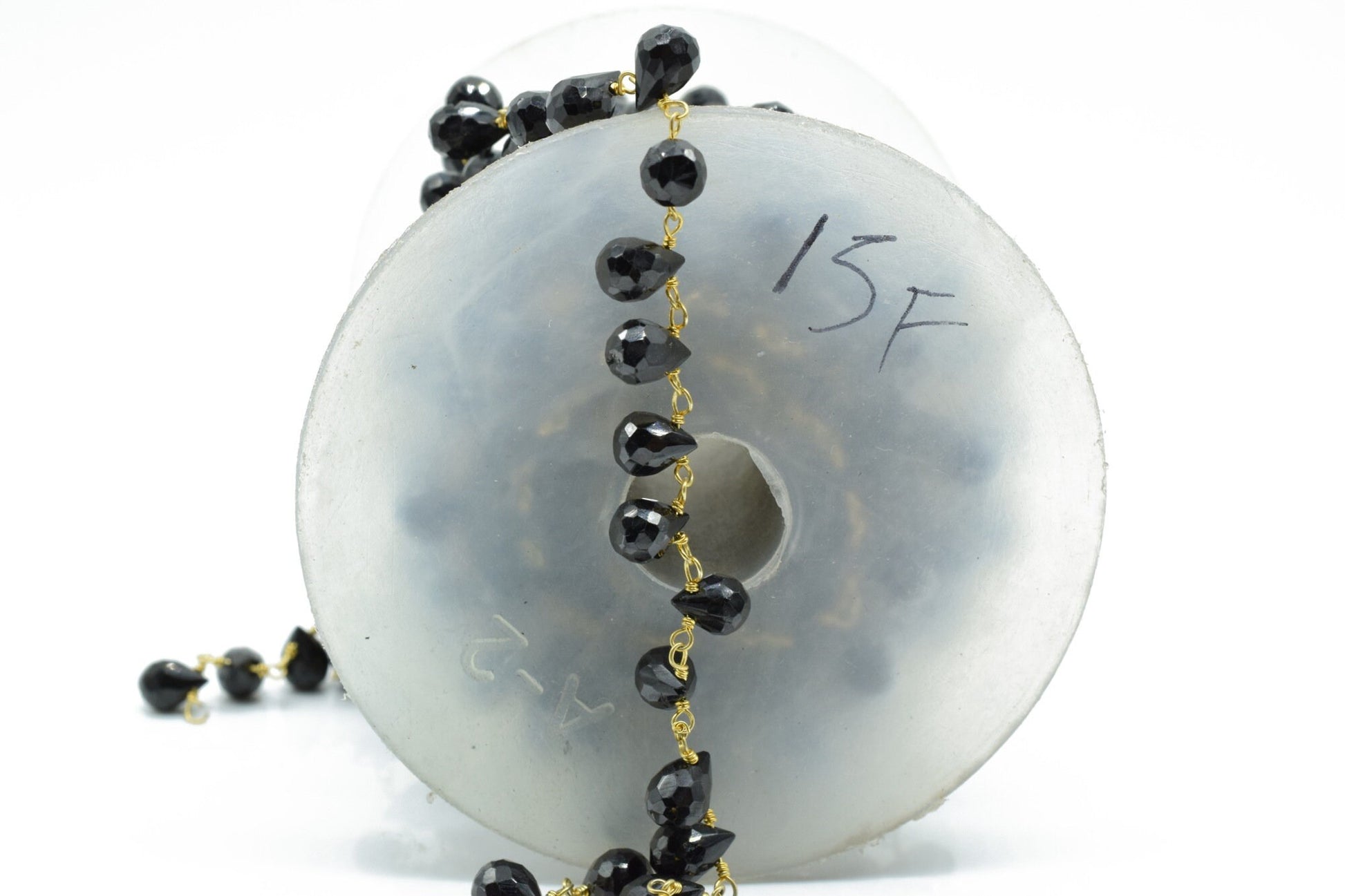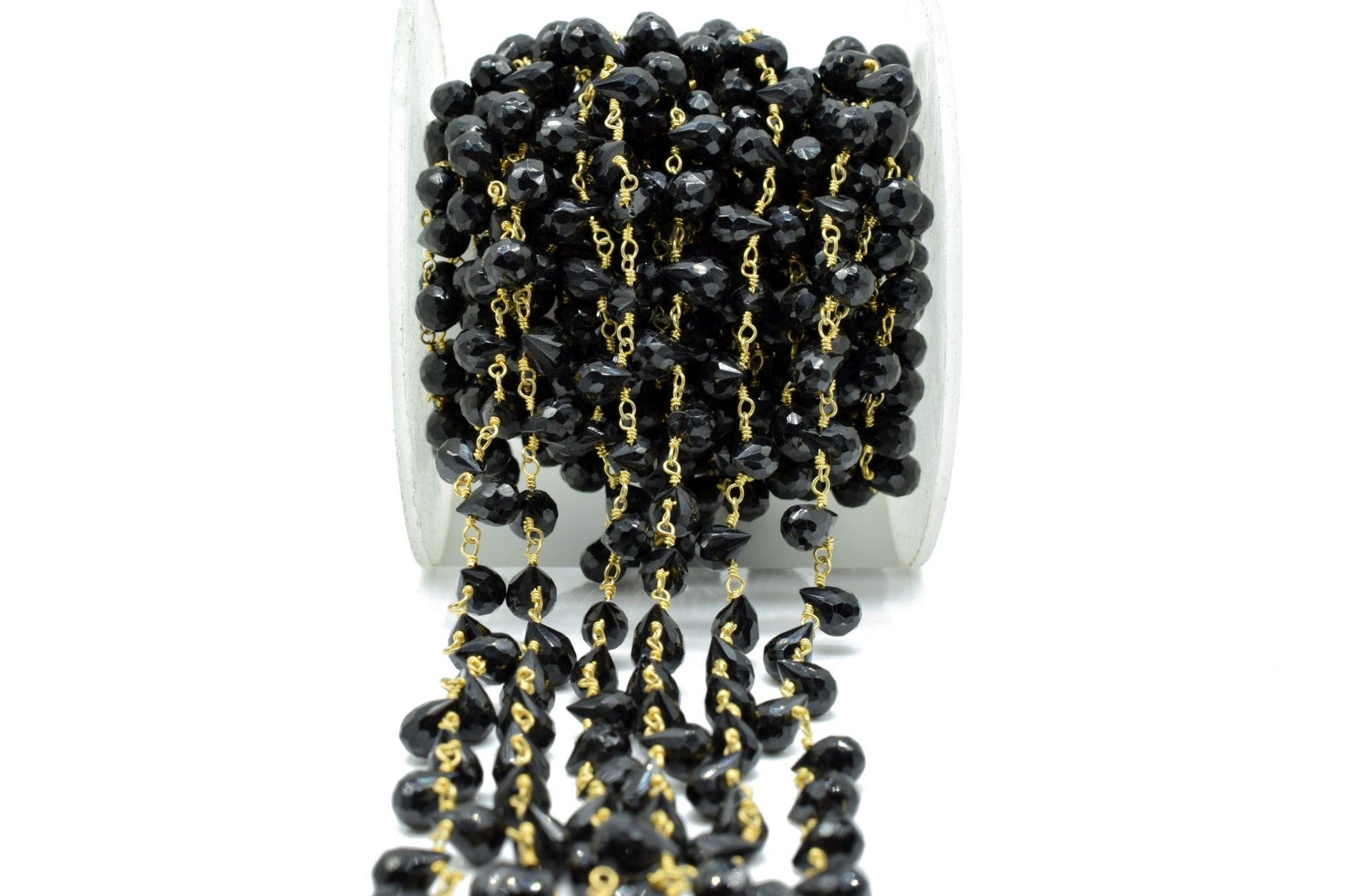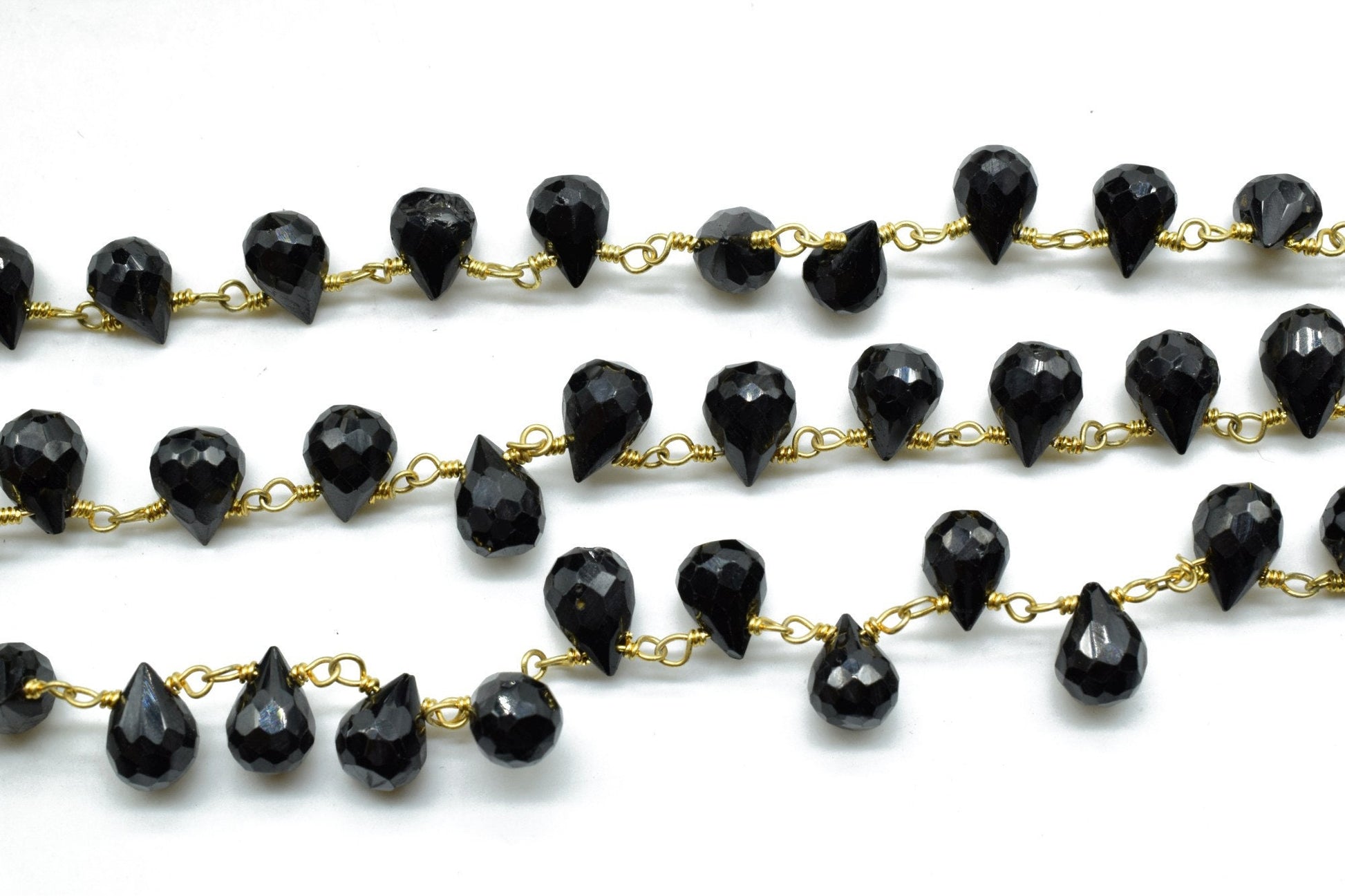 Black Onyx 6x8mm Drops Beaded Chain,Black Onyx Drops Rosary,Black Onyx Wire Wrap Chain,Black Onyx Drops chain,Jewelry Making craft & Chain,