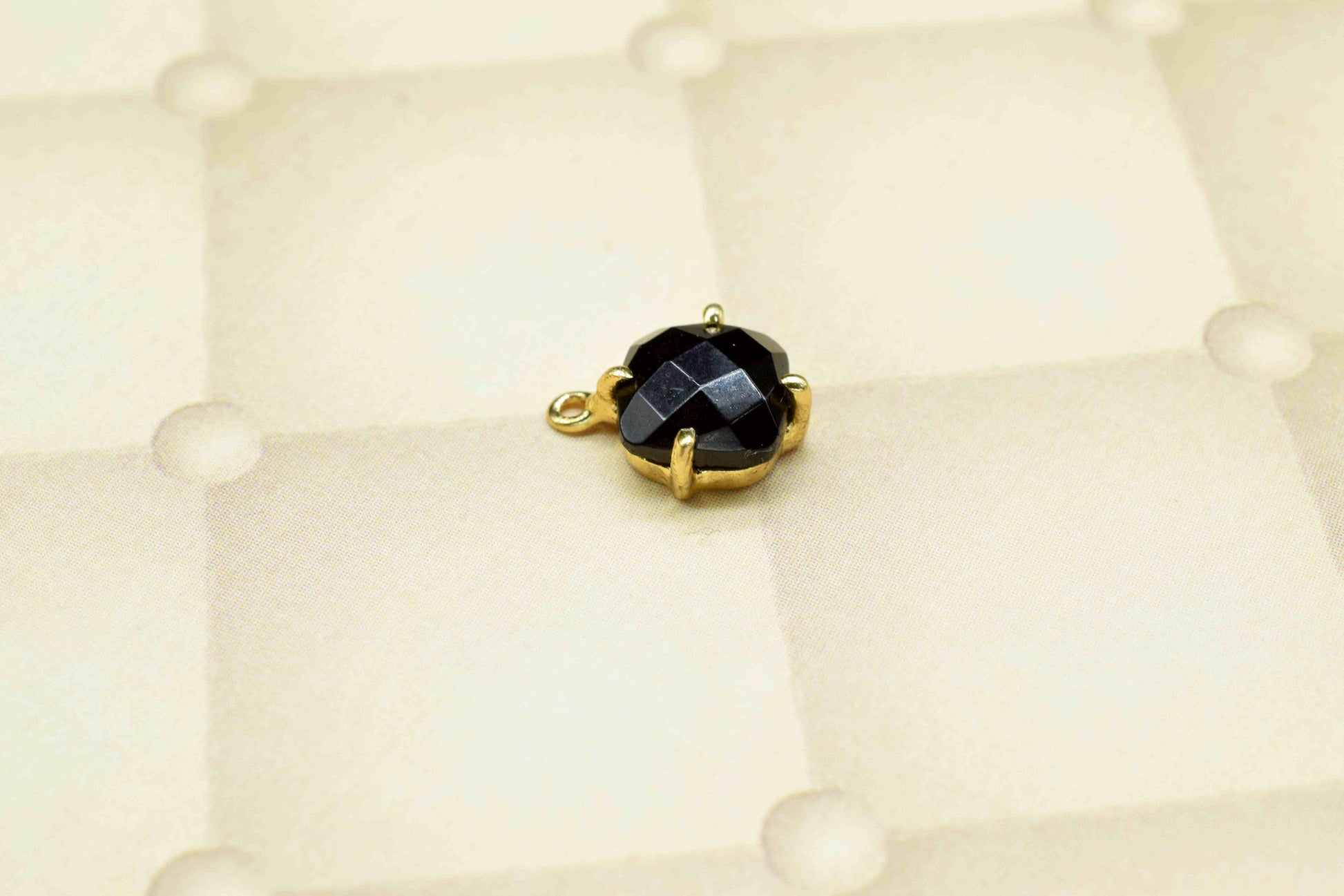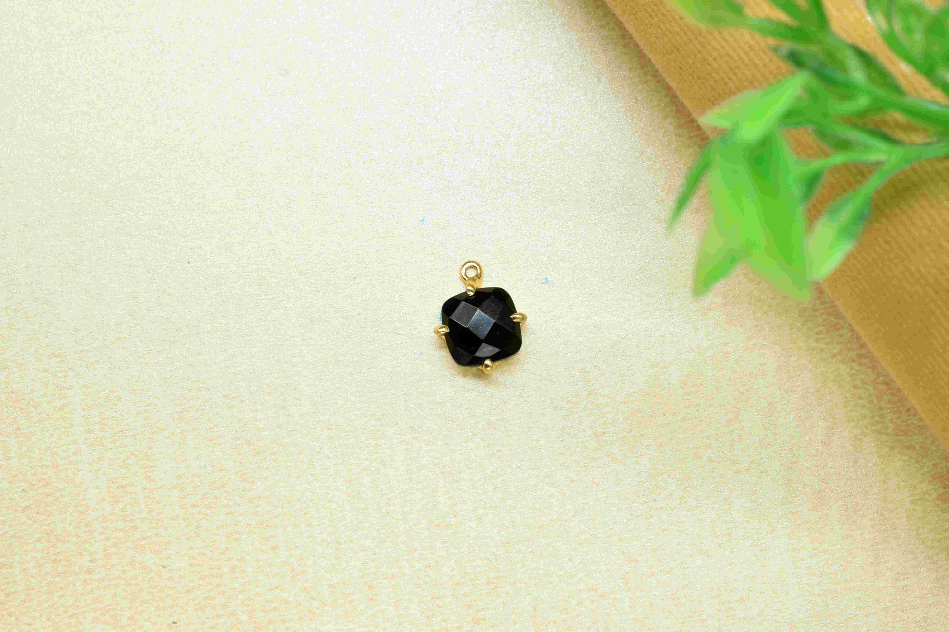 Black Onyx 8mm Cushion Shape Gemstone Single bail connector,Black Onyx Handmade Gemstone Bezel Prong Set Pendants,Black Onyx Faceted jewelry