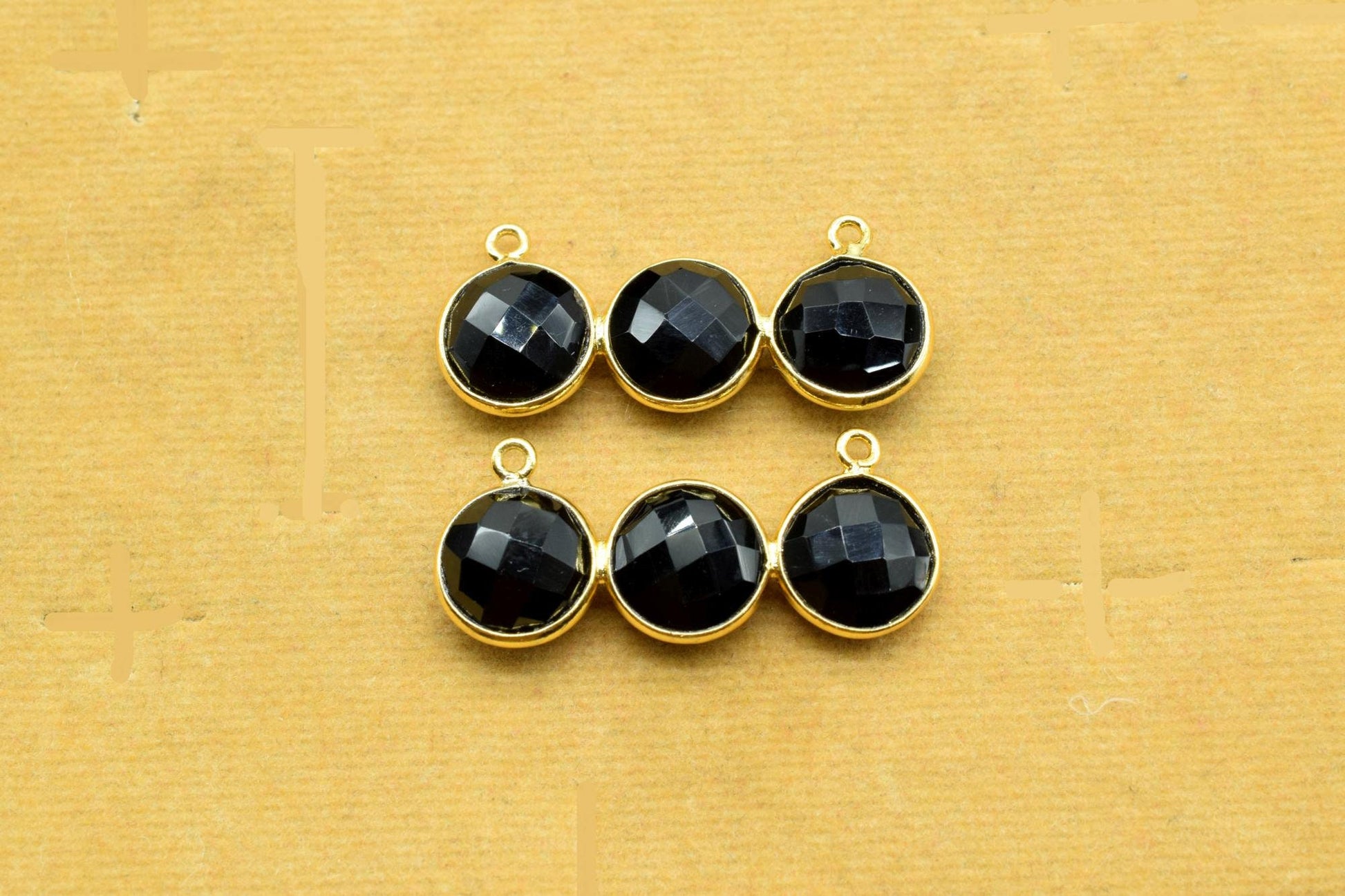 Black Onyx Attached Bezel Pendant,Gemstone Component,Double Bail Pendant,Black Onyx Earring,Charm Pendant,Jewelry Making Supply,Onyx Jewelry