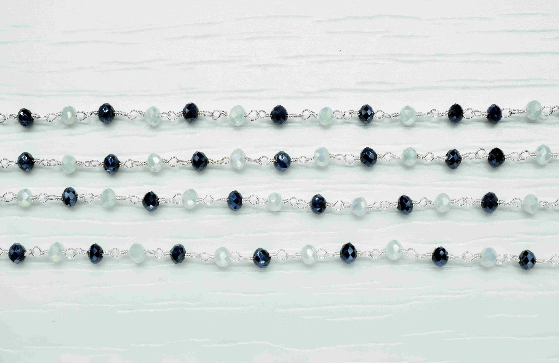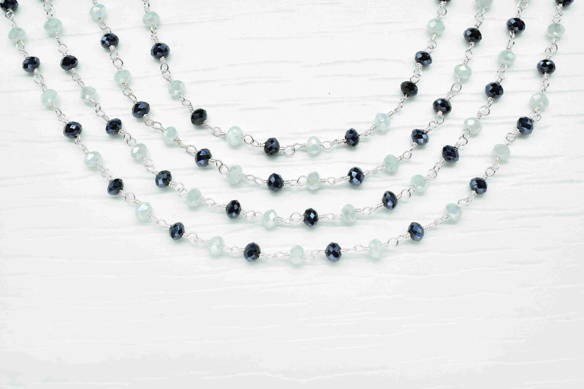 Black Onyx Beaded Chain,Multi Stone Rosary Chain,Peru Chalcedony Micro Beads chain,Handmade Rosary Jewelry Making,Wire Wrapped Rosary,Gift