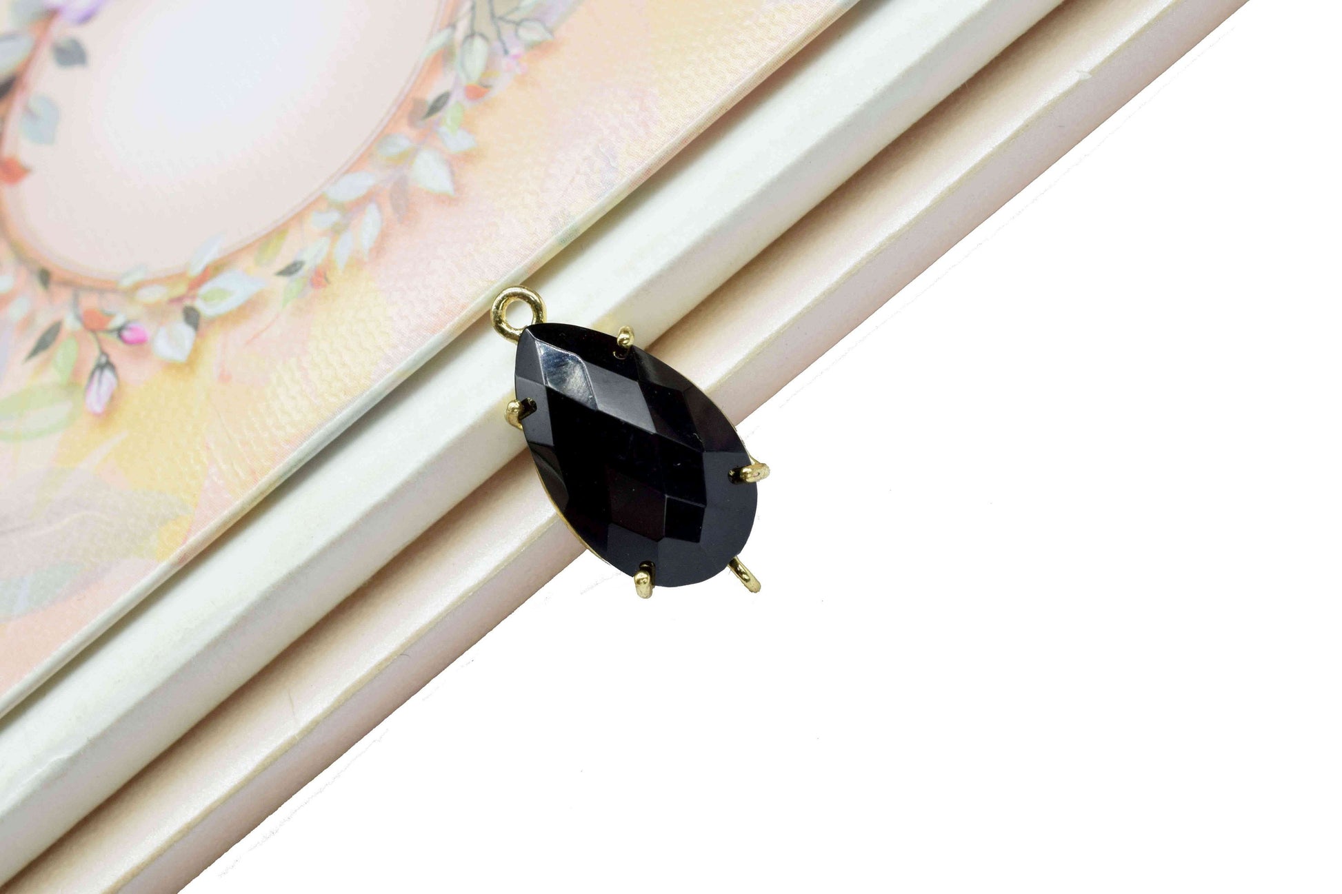 .Black Onyx Connector,Black Onyx jewelry,Black Onyx Teardrop Bezel,double bail connector,Handmade Gemstone Bezel,Prong Set Bezel Pendant,Gift