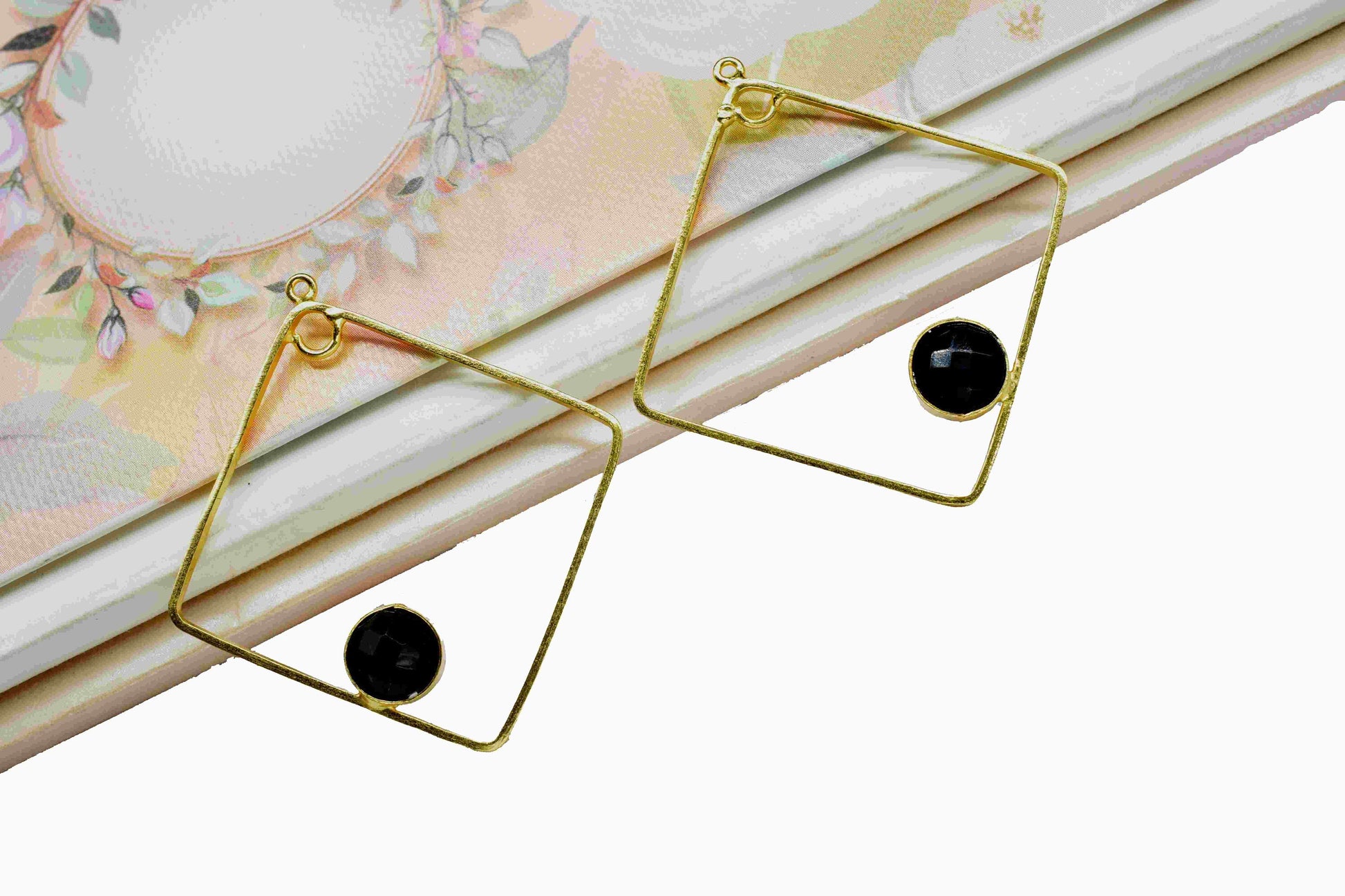 .Black Onyx Gemstone Component Earring,32mm Square Shape Earring Connector,Gemstone Component Earring,Finding Necklace Component Jewellery,Gift
