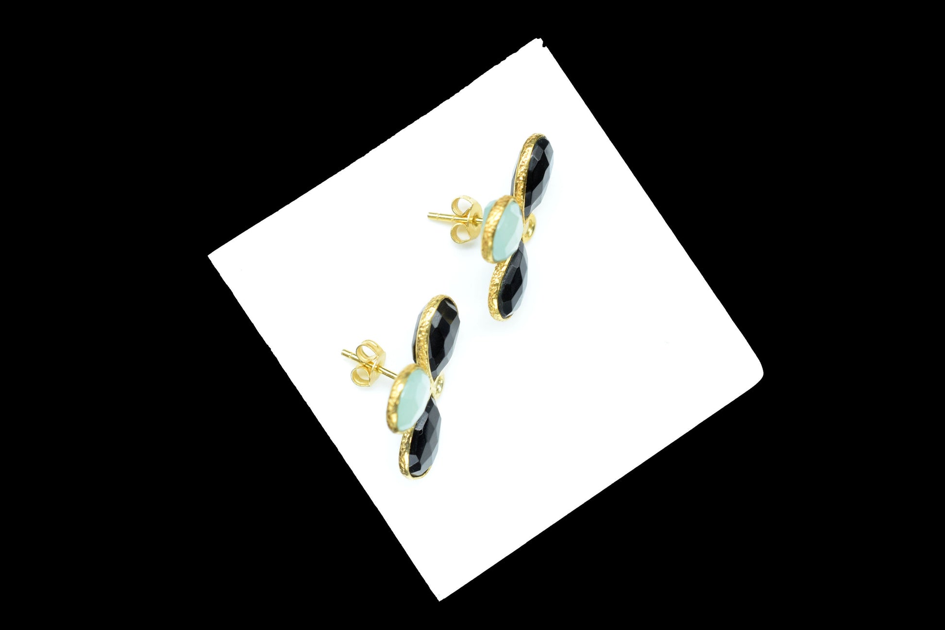 Black Onyx Gemstone Earring Connector/Gold Plated Jewelry/Peru Handmade Jewelry/Bezel Component/Jewelry making Stone/Pear Shape Stone
