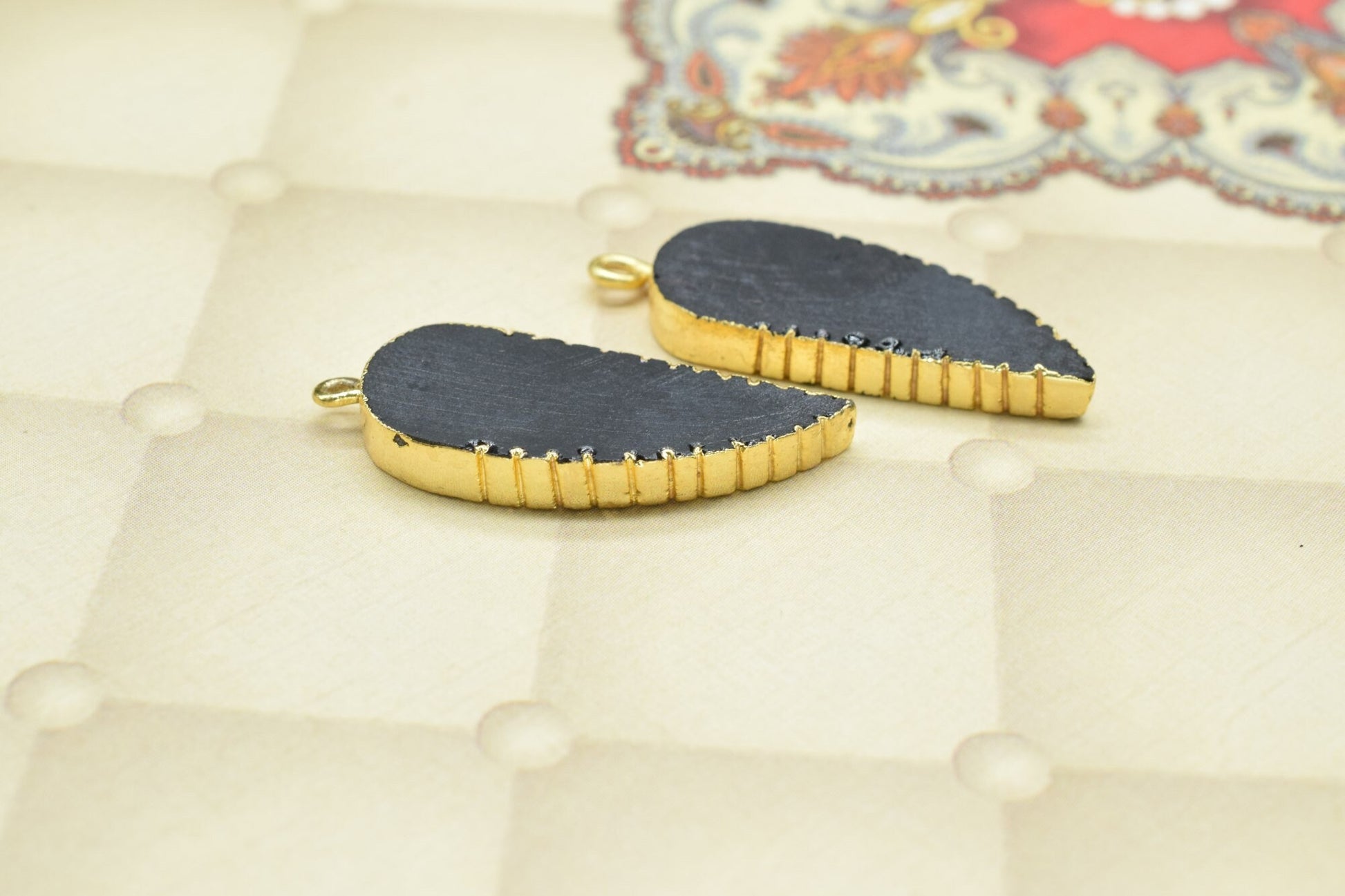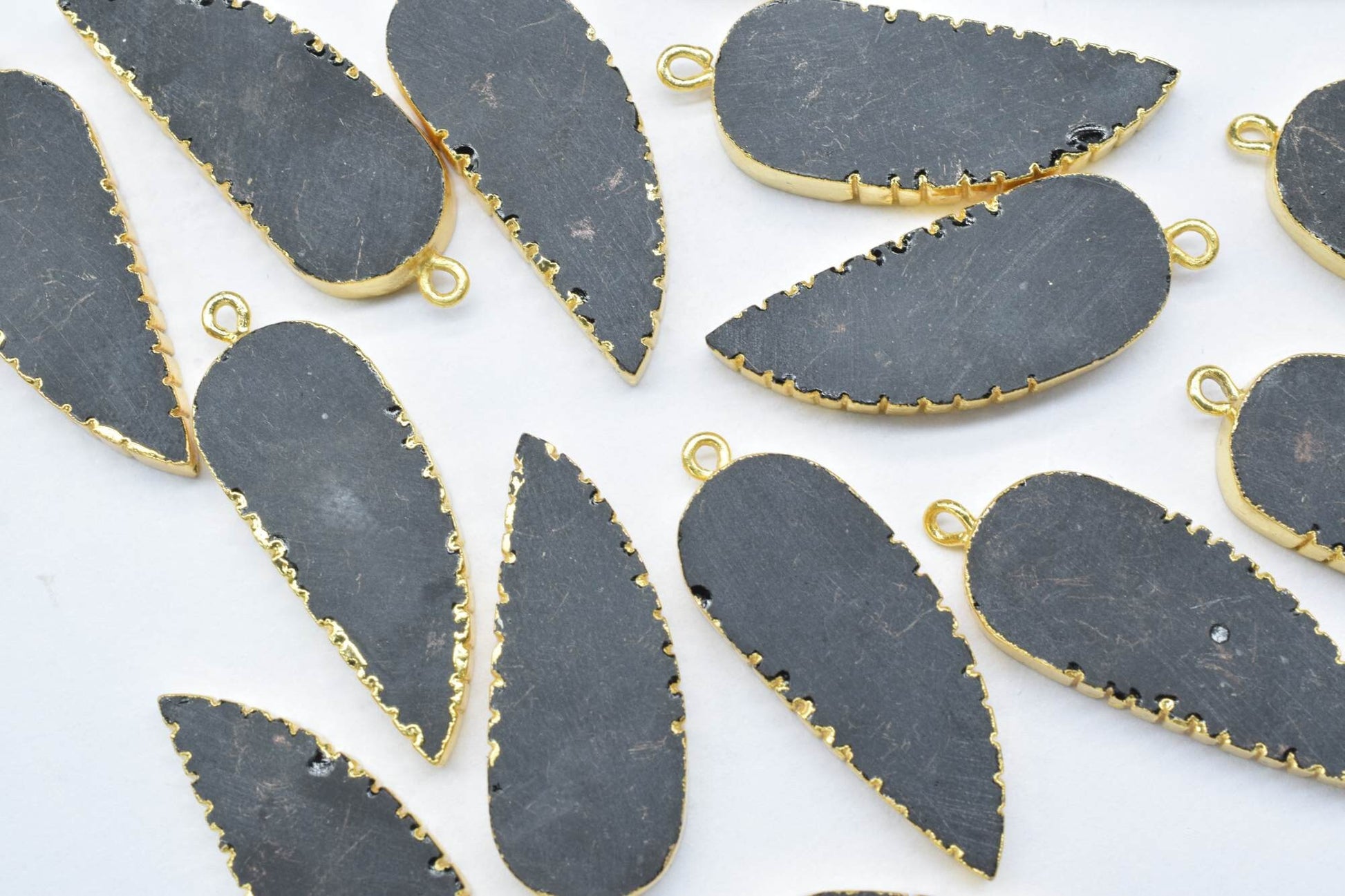 .Black Onyx Leaf Pendant,Single Bail,Handmade Leaf Shape Connector,Black Onyx Connectors Jewelry,Gemstone Angel Wings Pendant Necklace,Gift