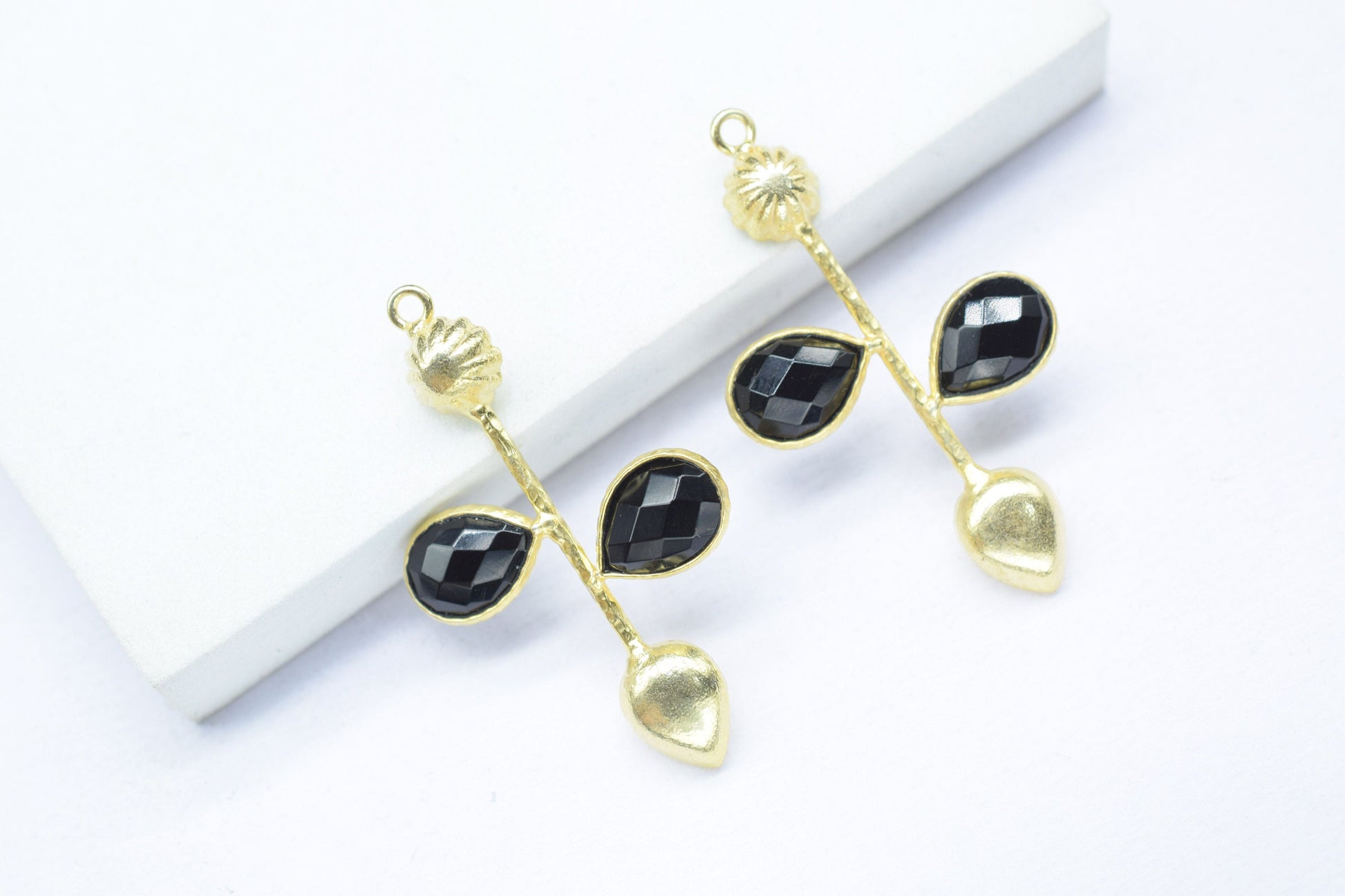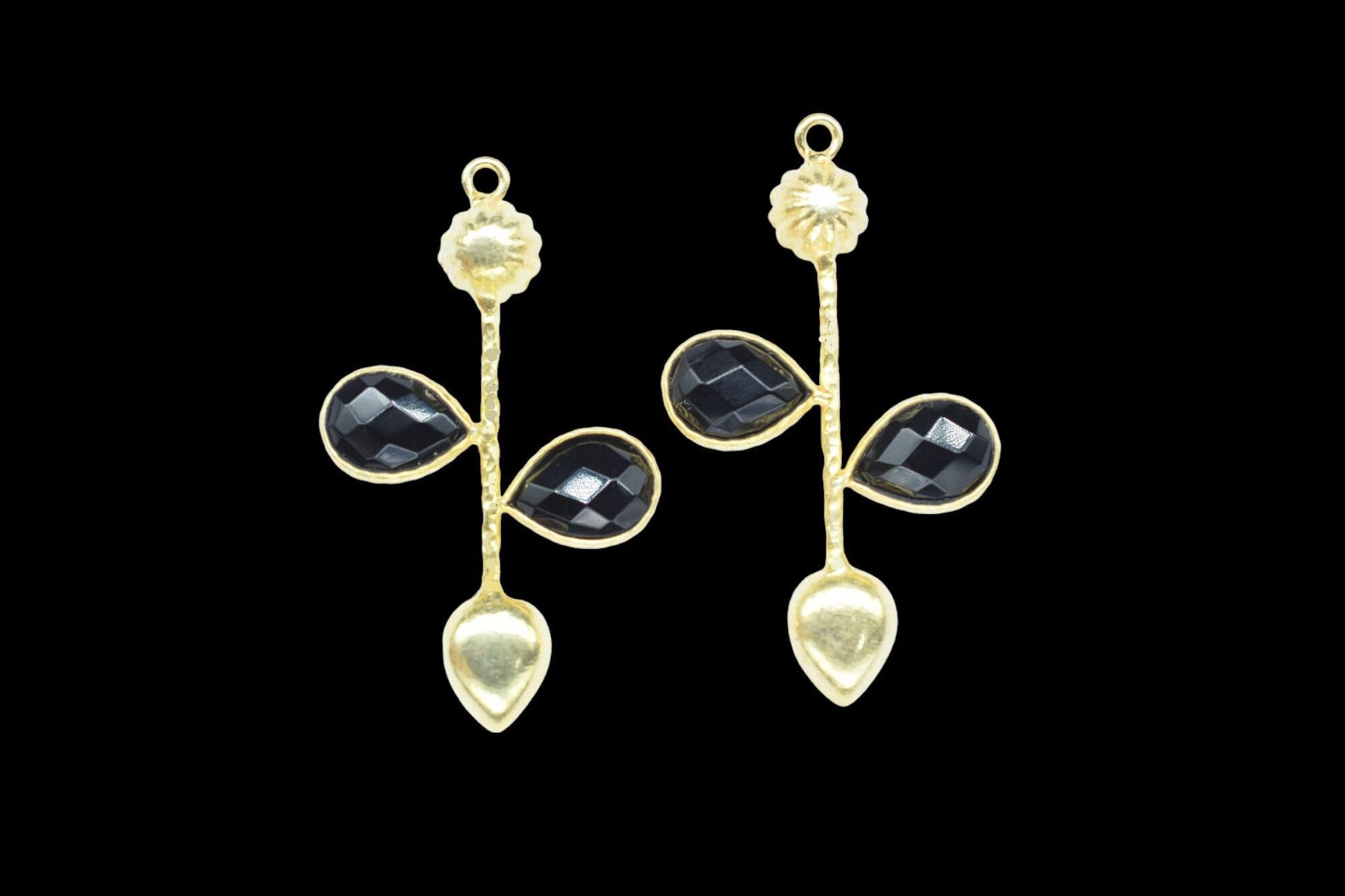 Black Onyx Teardrop Faceted Bezel Connector,Black Onyx Earring Connector,Jewelery Supply,Black Onyx Pendant Charms,Designer Pendants,B'Gifts