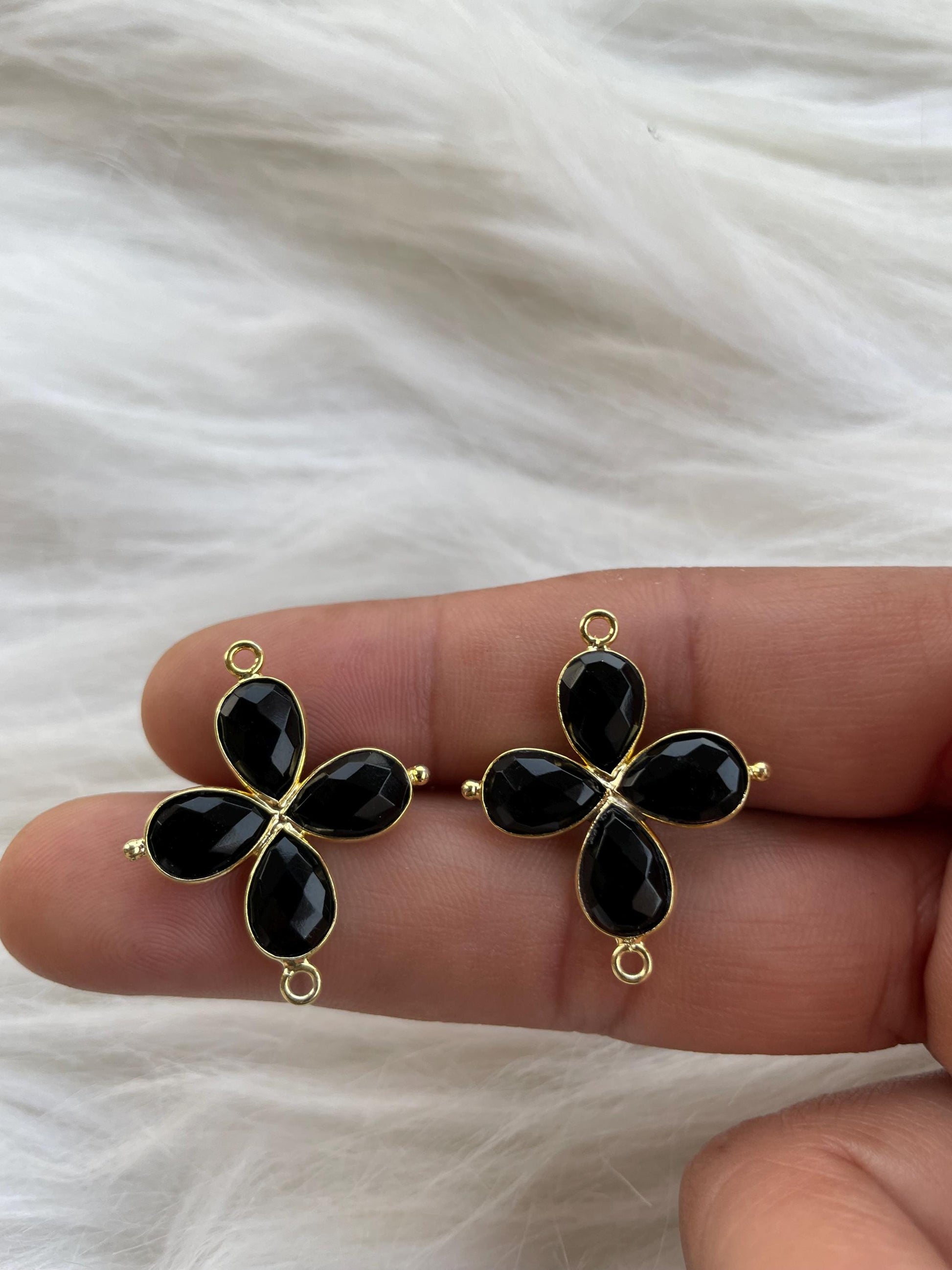 Black Onyx Teardrop Pendant,jewelry Component,Black Onyx Teardrop connector,Black Onyx Bracelet Charm,Double Loop connector,Mom's,Gifts,P122