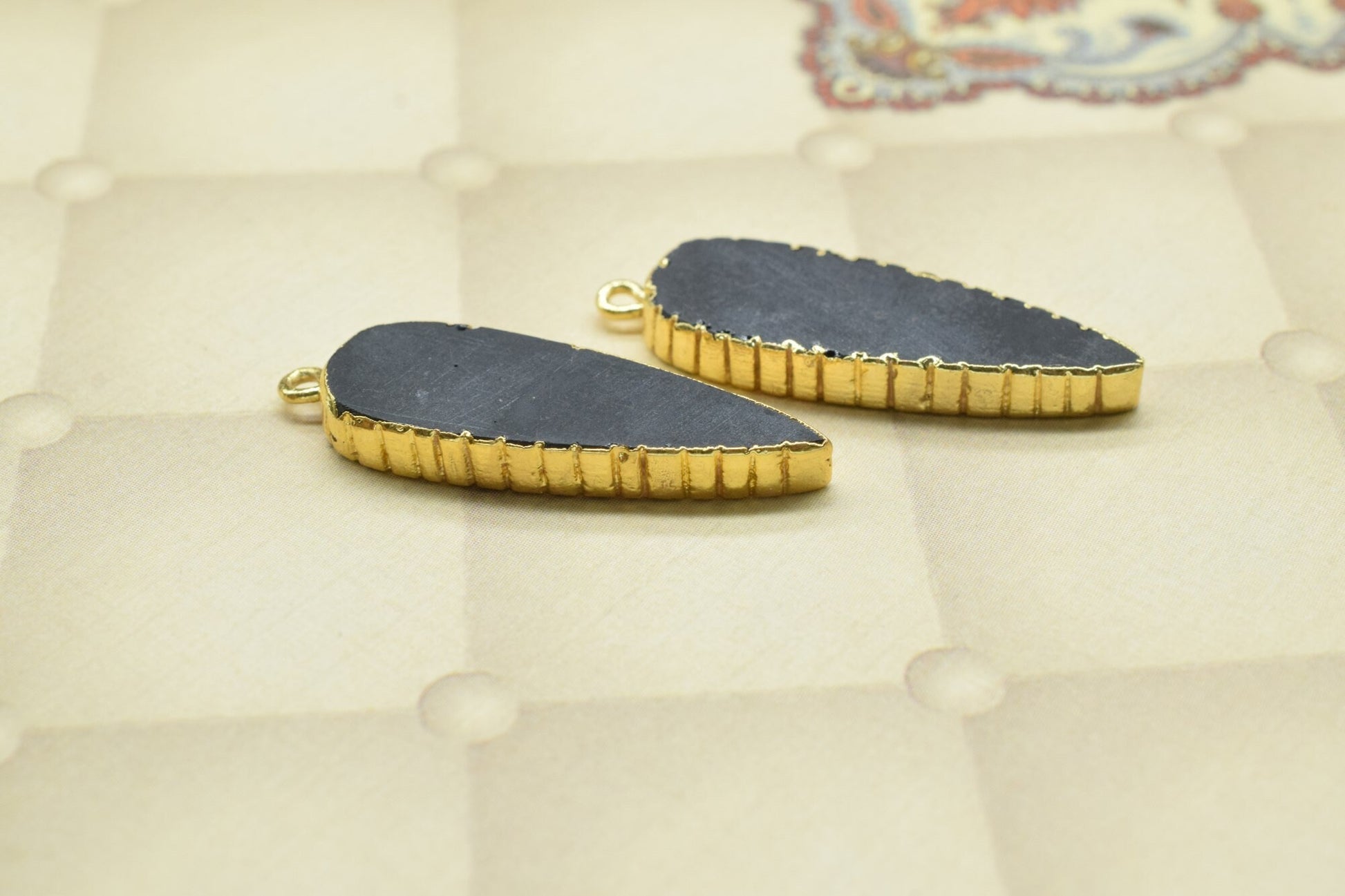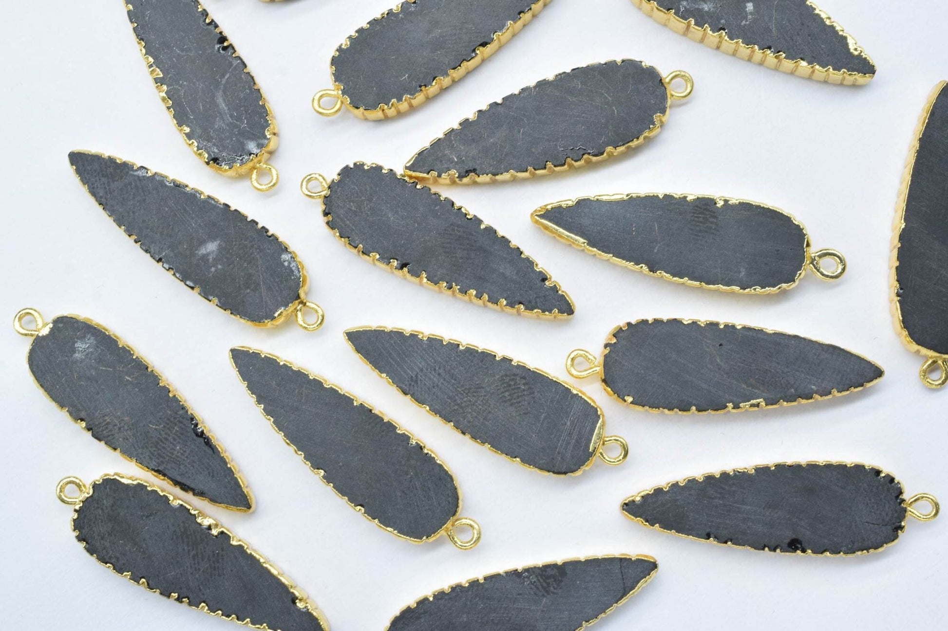 .Black Onyx Teardrop Pendant,Single Bail,Necklace Connectors,Black Onyx Jewelry,Gemstone Electroplated Charm,Handmade Pear Shape Connector