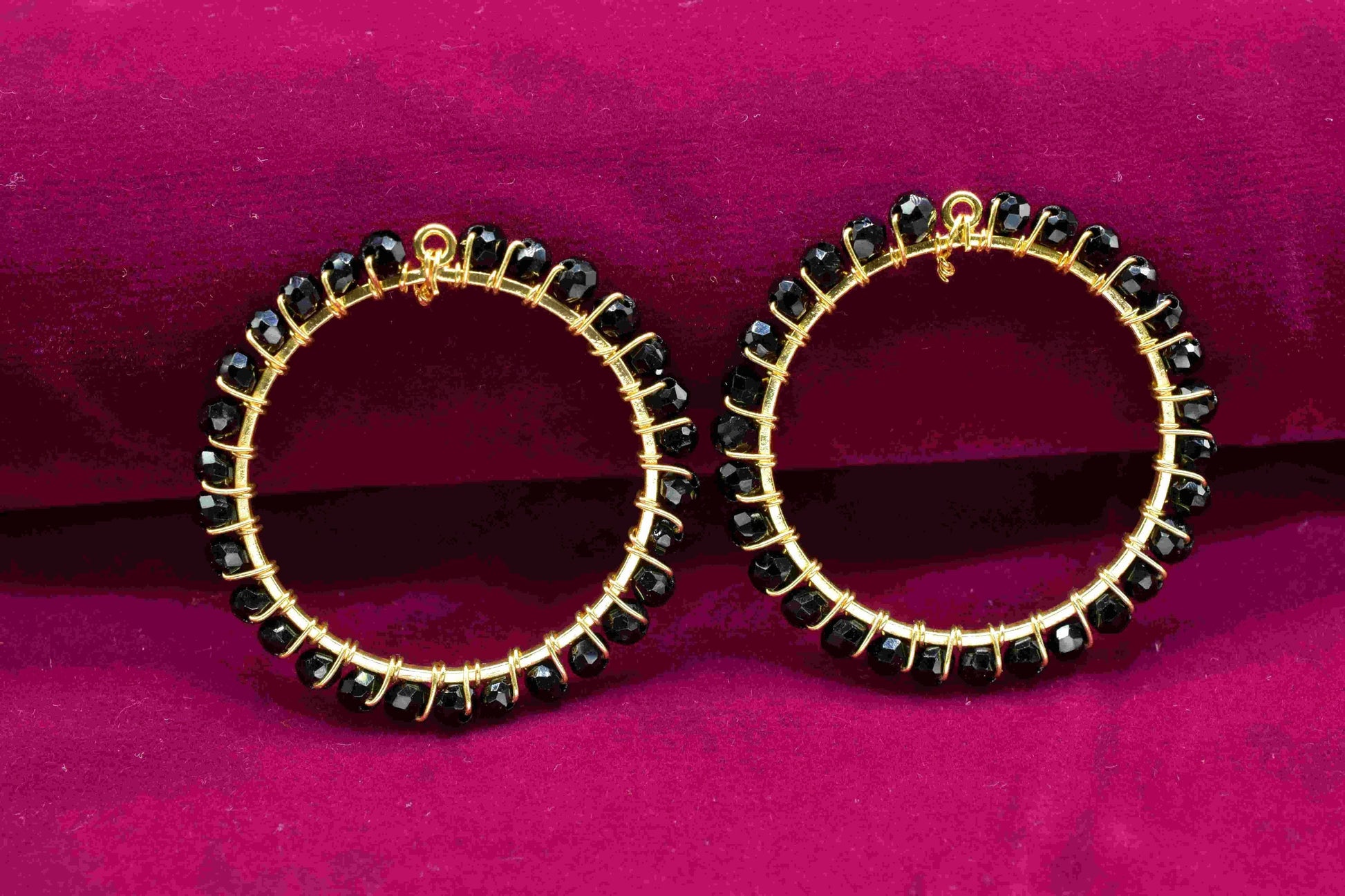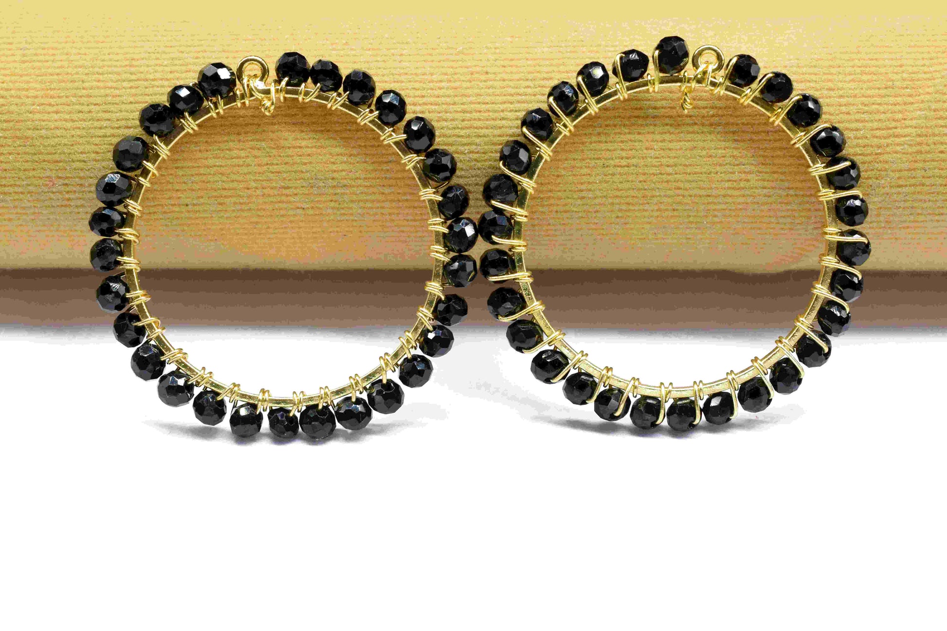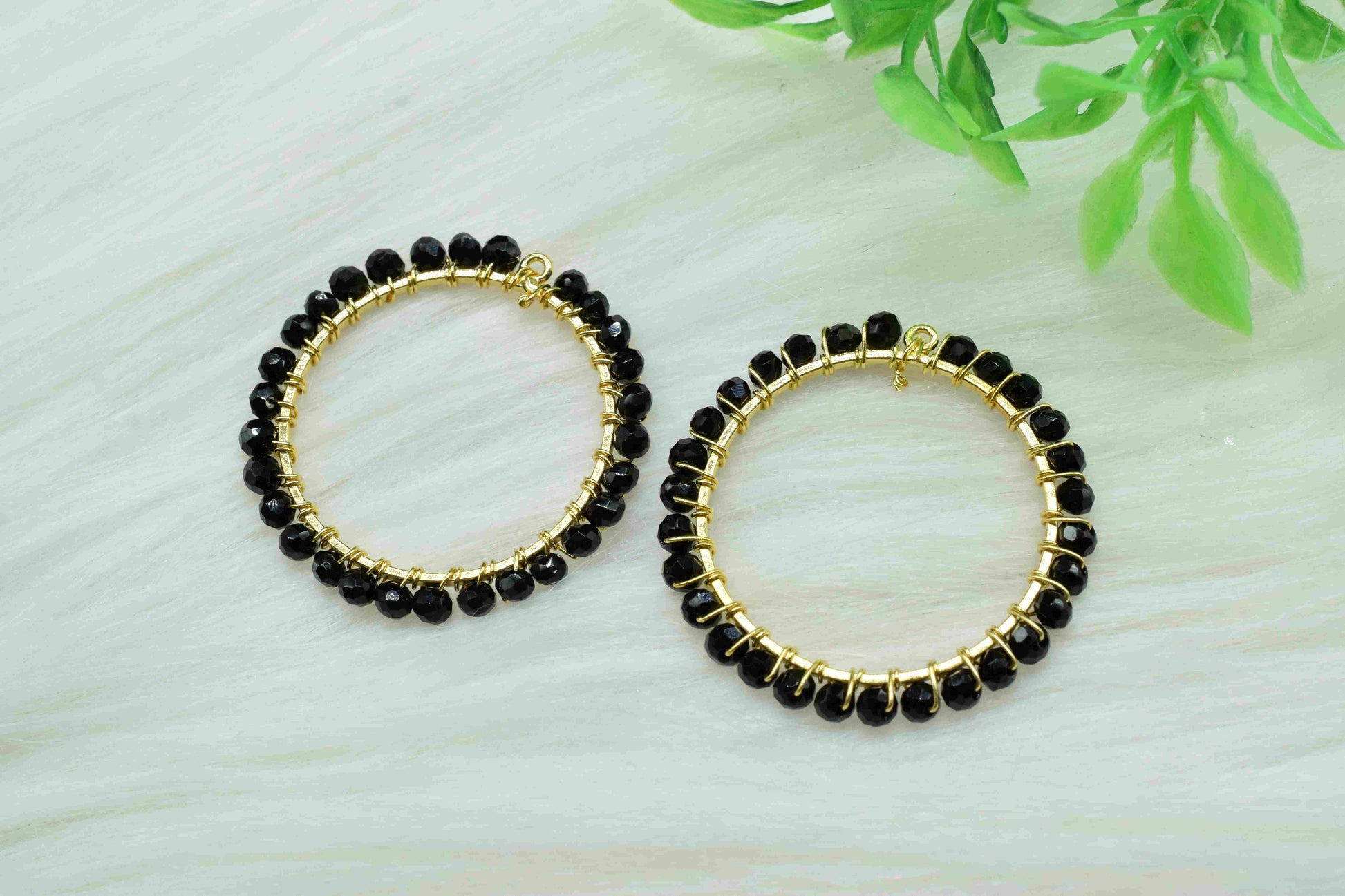 .Black Onyx Wire Wrapped Dangle Connector, Circle Pendant Component, Handmade Earring, Beaded Hoops Earring, Finding Component Black Onyx Jewellery