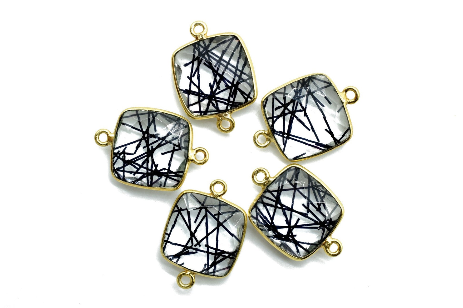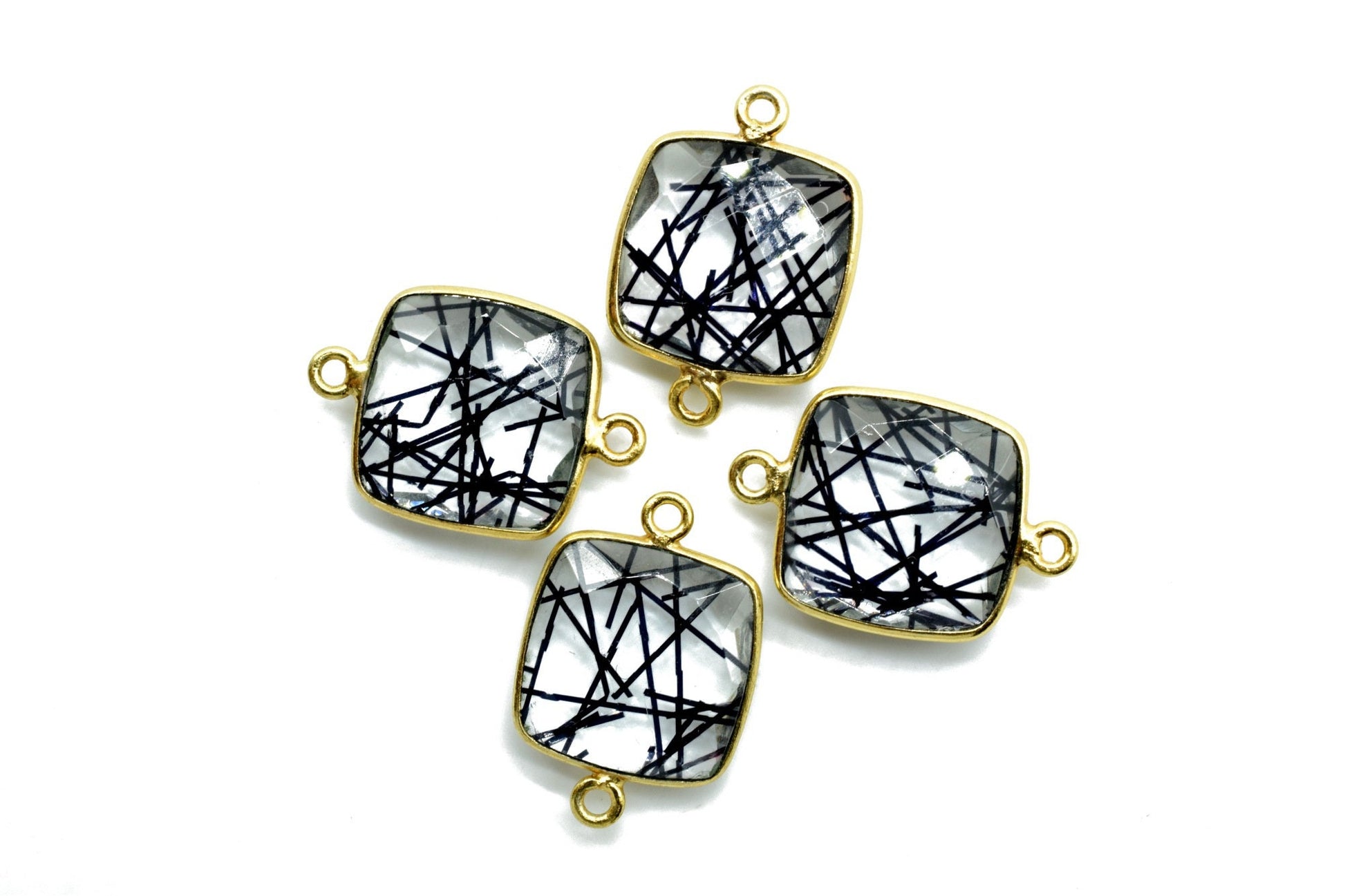 Black Rutile 14mm Cushion double bail connectors,Black Rutile Components, Cushion dual loop Connectors,Black Rutile Brass Gold Edge Jewelry