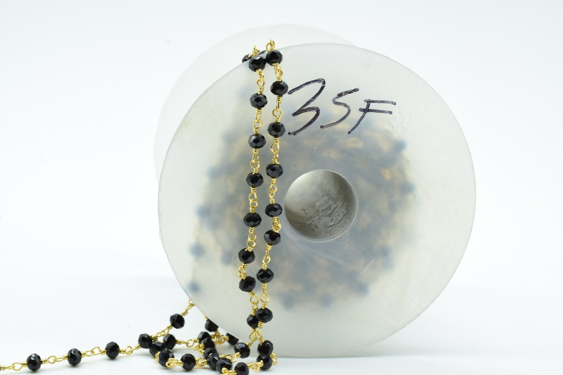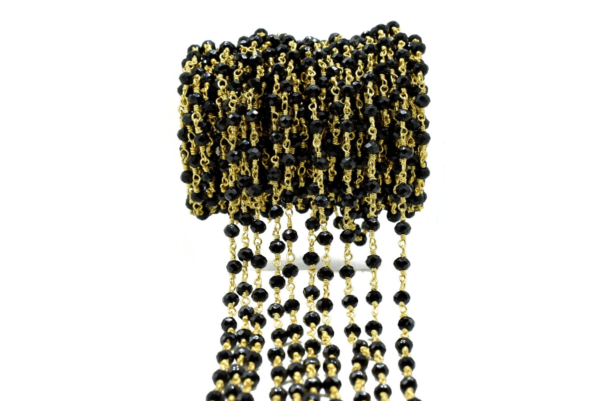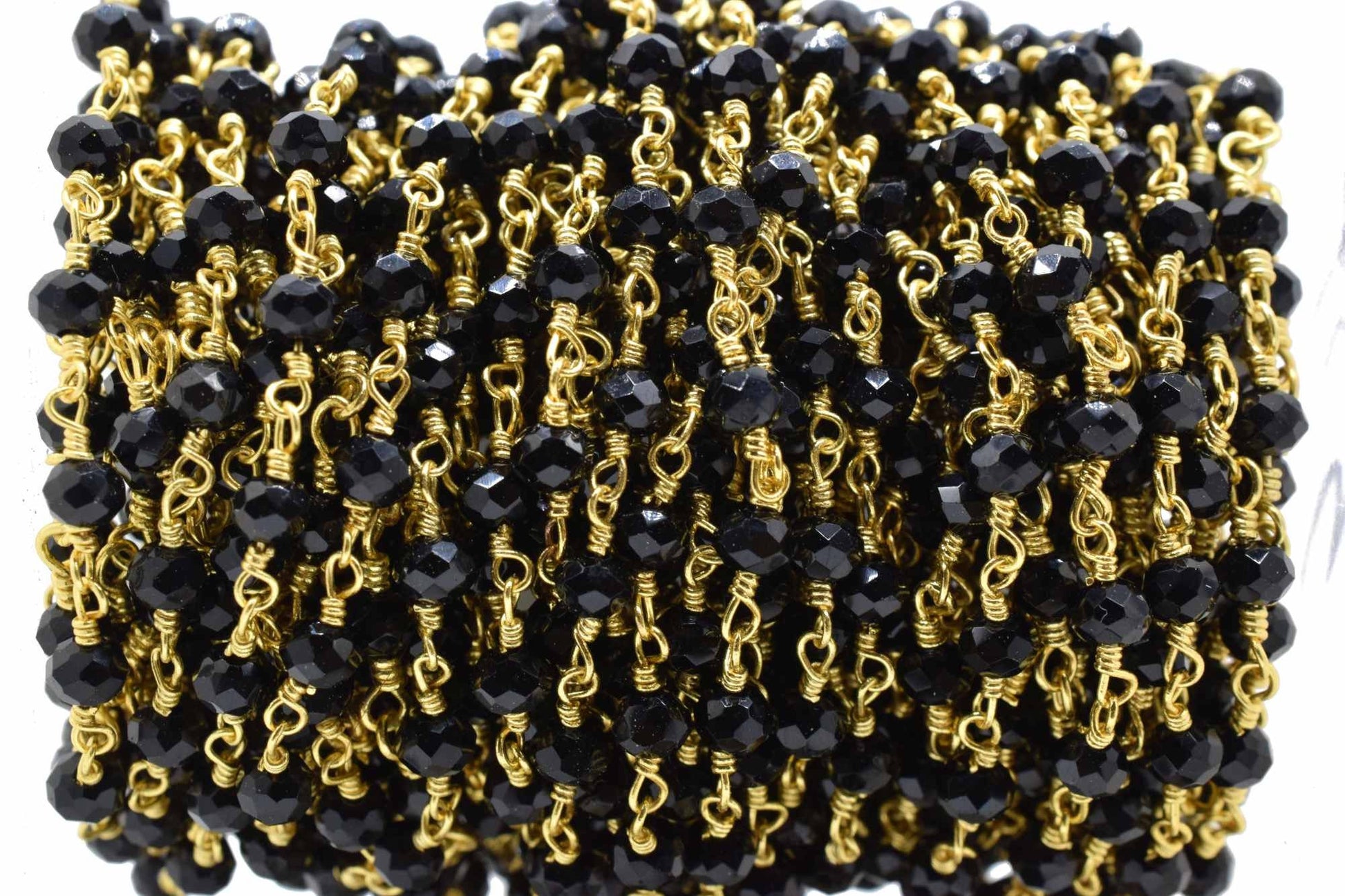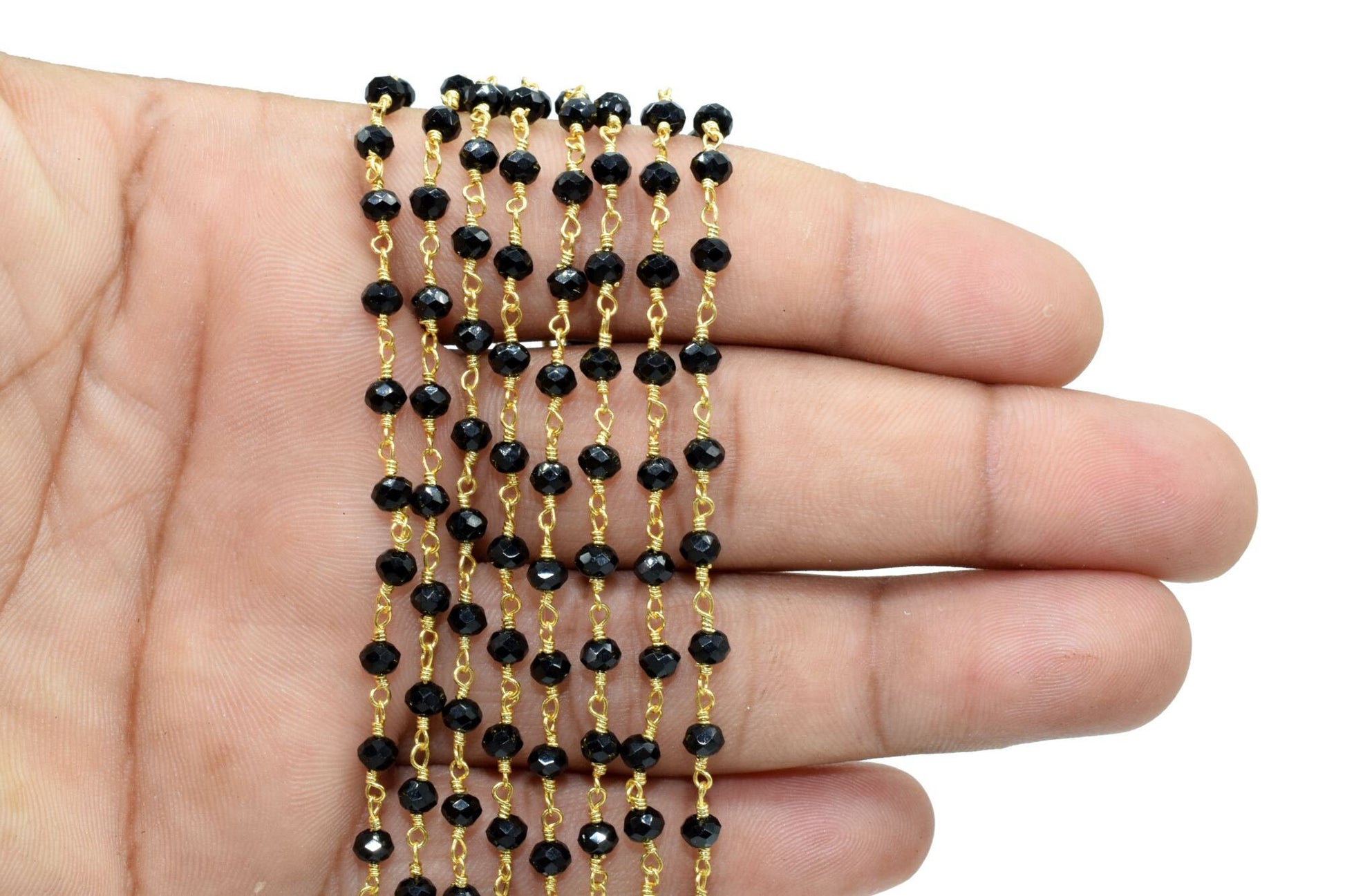 Black Spinel 3mm Rosary Style Beaded Chain, Black Spinel Faceted Beads Wire Wrapped Chain,Brass chains,Jewelry Making Chains,3mm Beads Chain