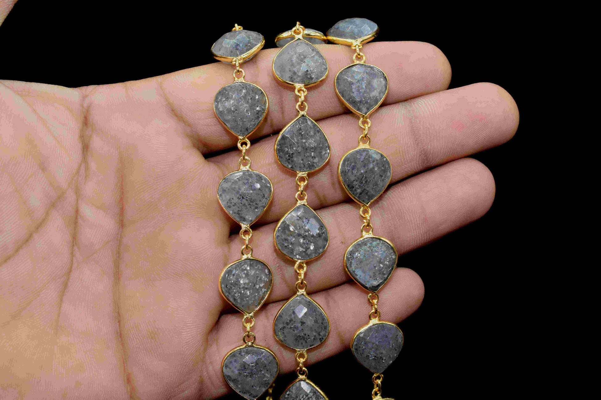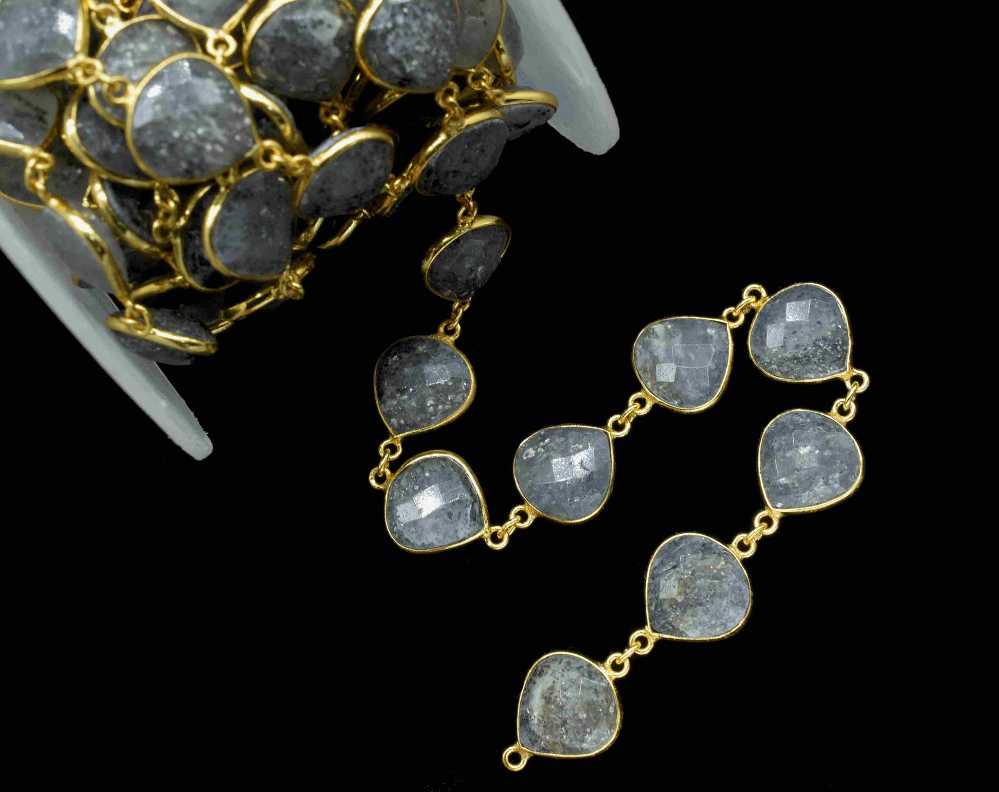 Black Sunstone Heart Shape Connector Chain, 12mm Heart Shape Sunstone Bezel Connector Chain, Black Sunstone Faceted Gemstone, Gemstone Chain