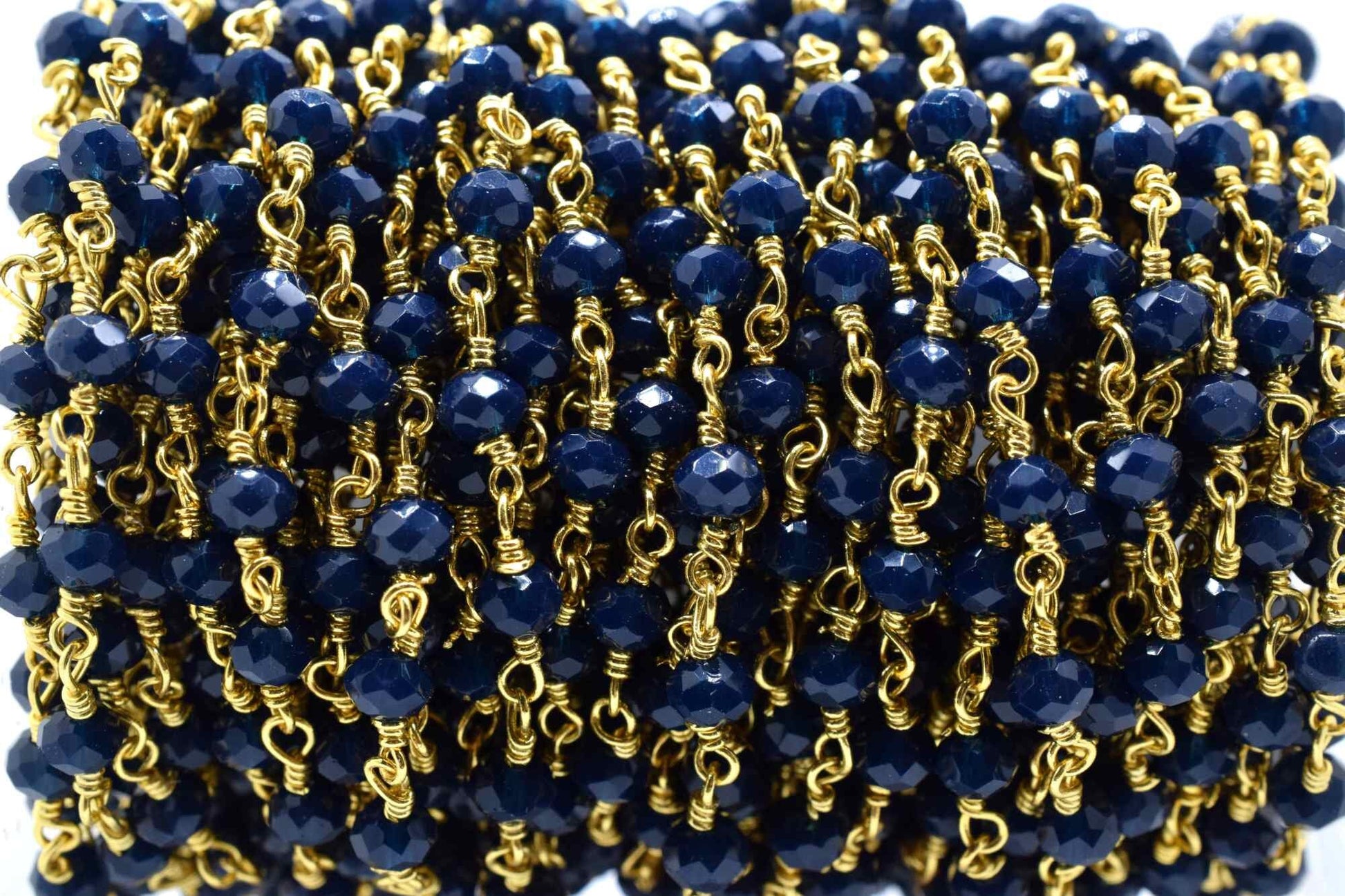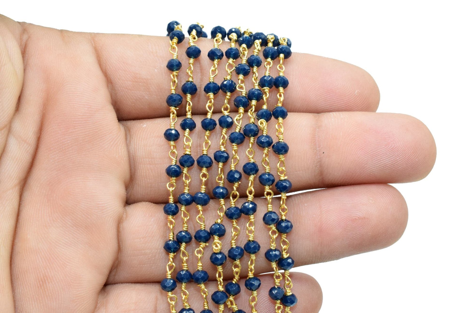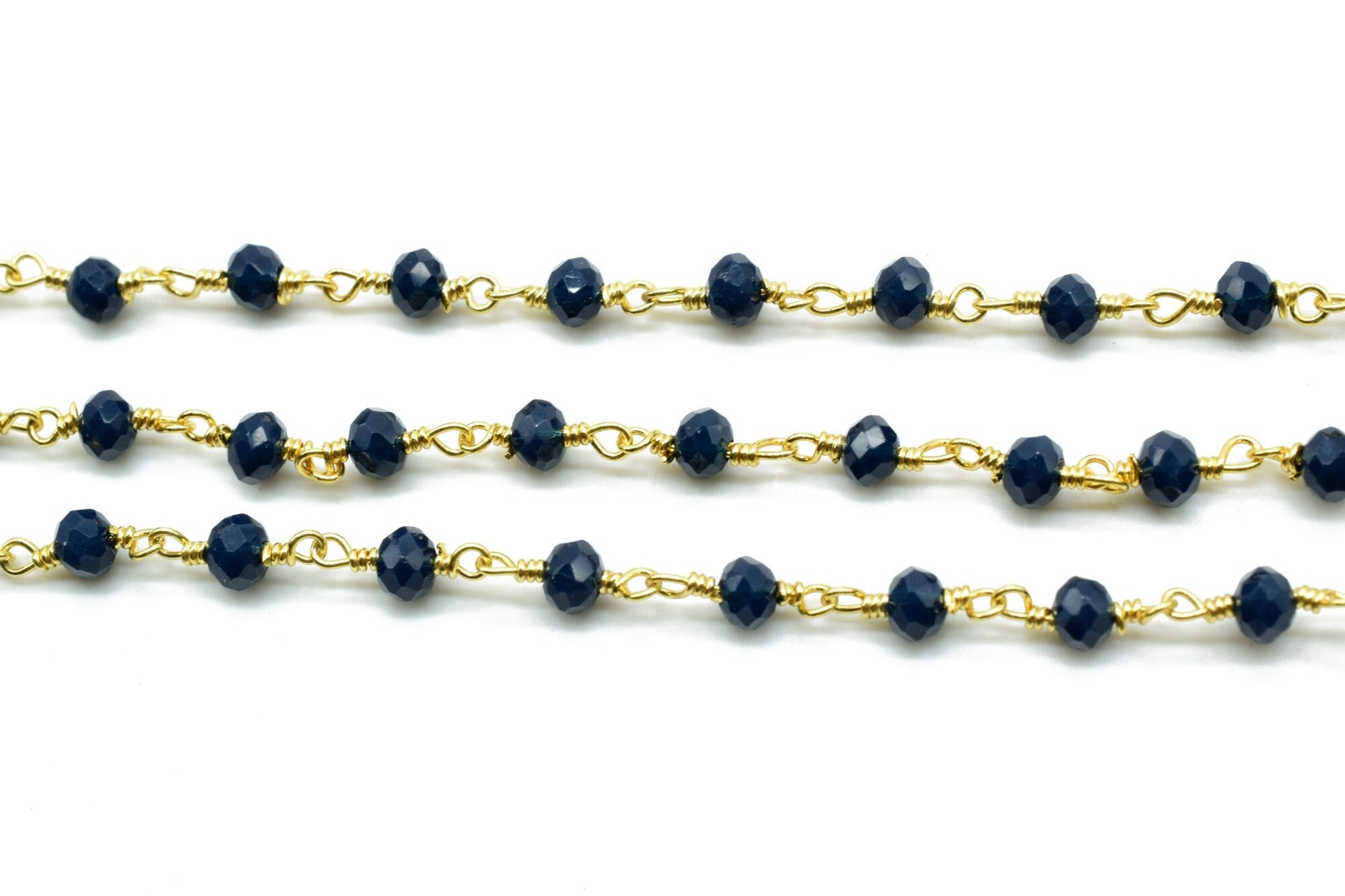 Blue Agate 3mm Beaded Chain,Blue Agate Rosary Chains,Blue Agate Gold Plating Wire Wrap Chain,Brass chain,Jewelry Making Chain,Rosary chain
