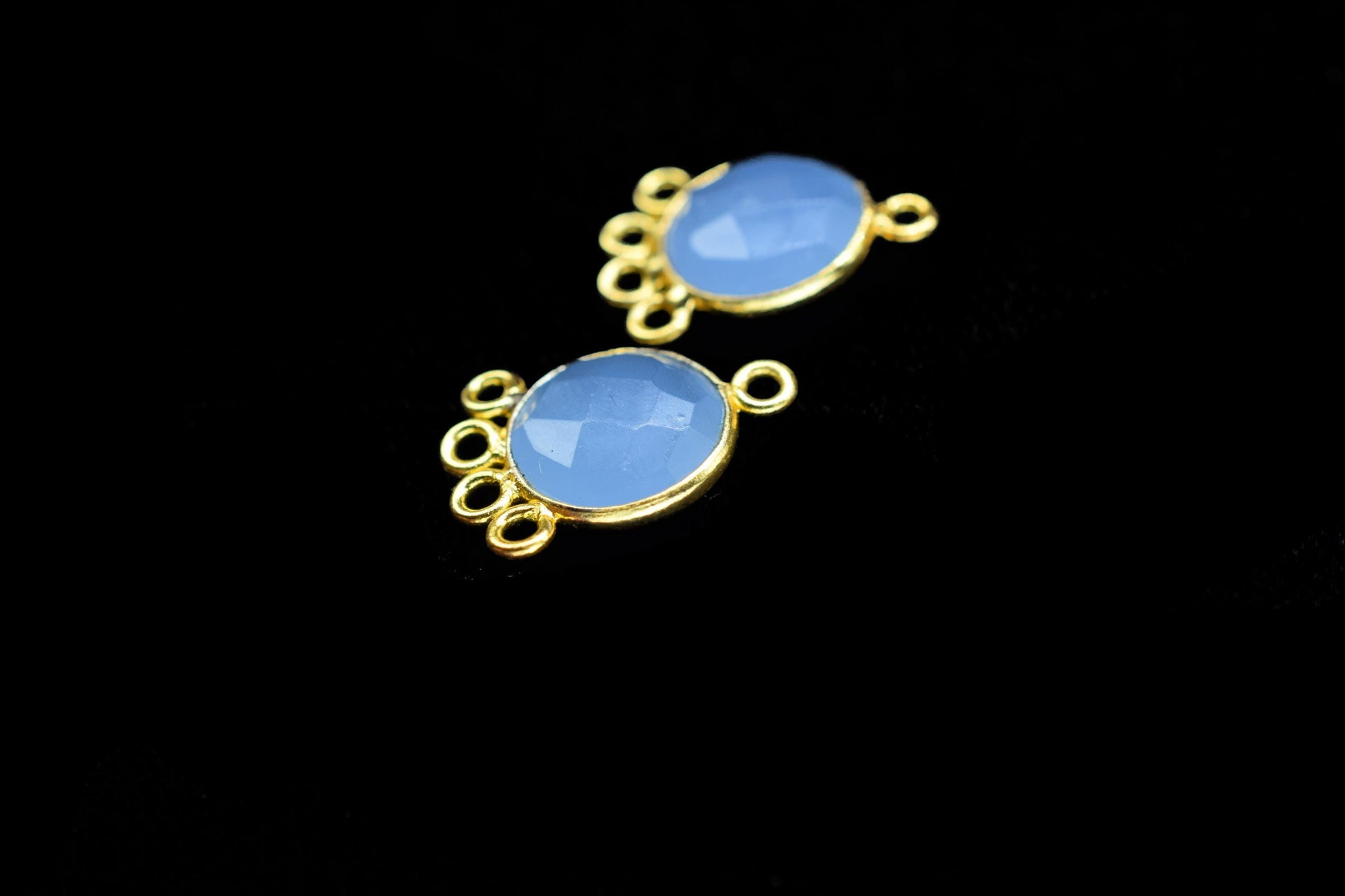 Blue Chalcedony 10mm Round Bezel Charm/Gemstone Brass Component/Single Bail Pendant charms/Round Handmade Jewellery Connector/B'day Gift