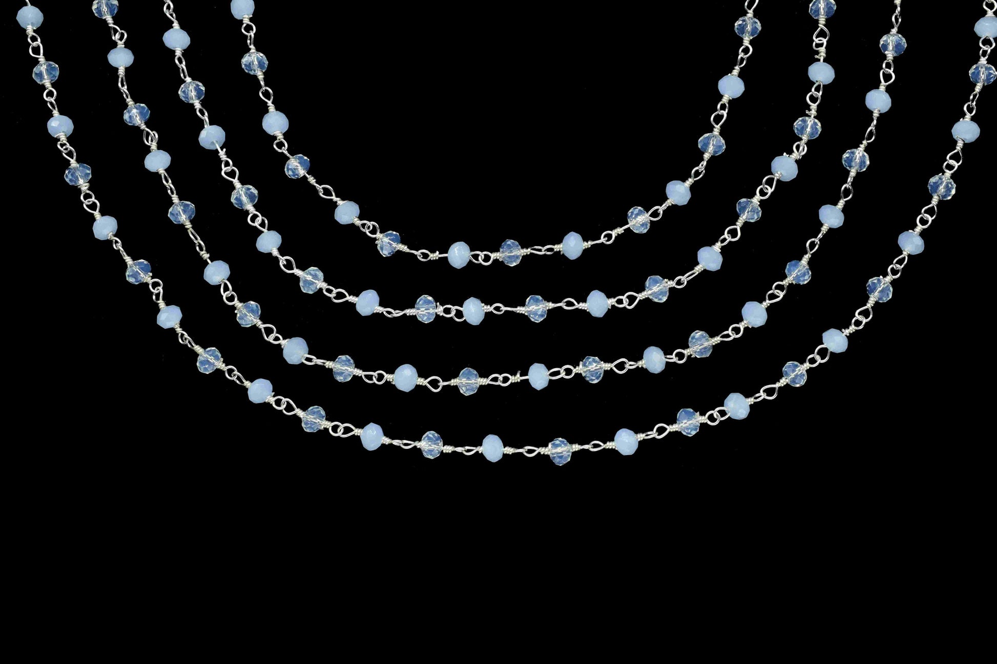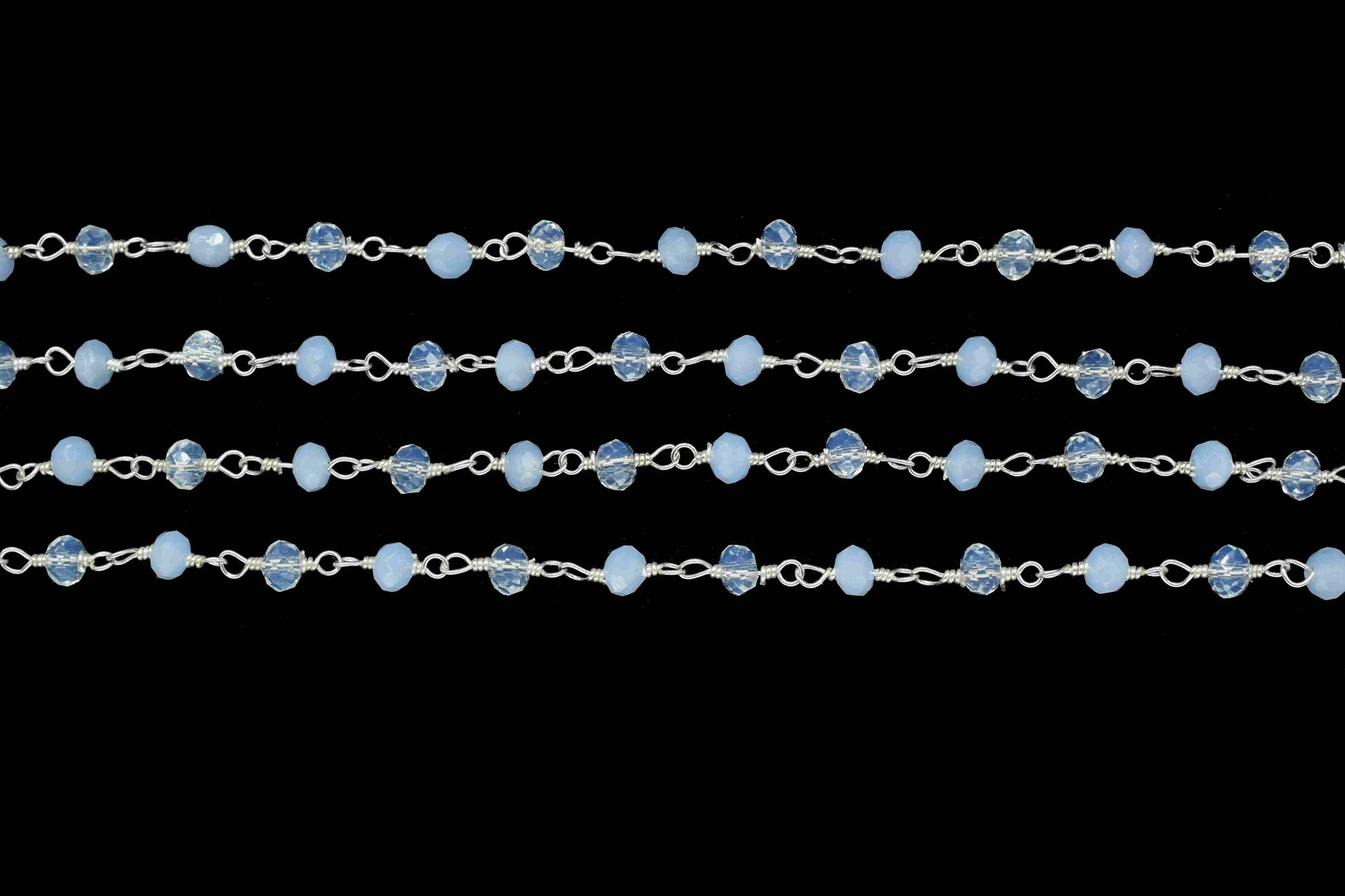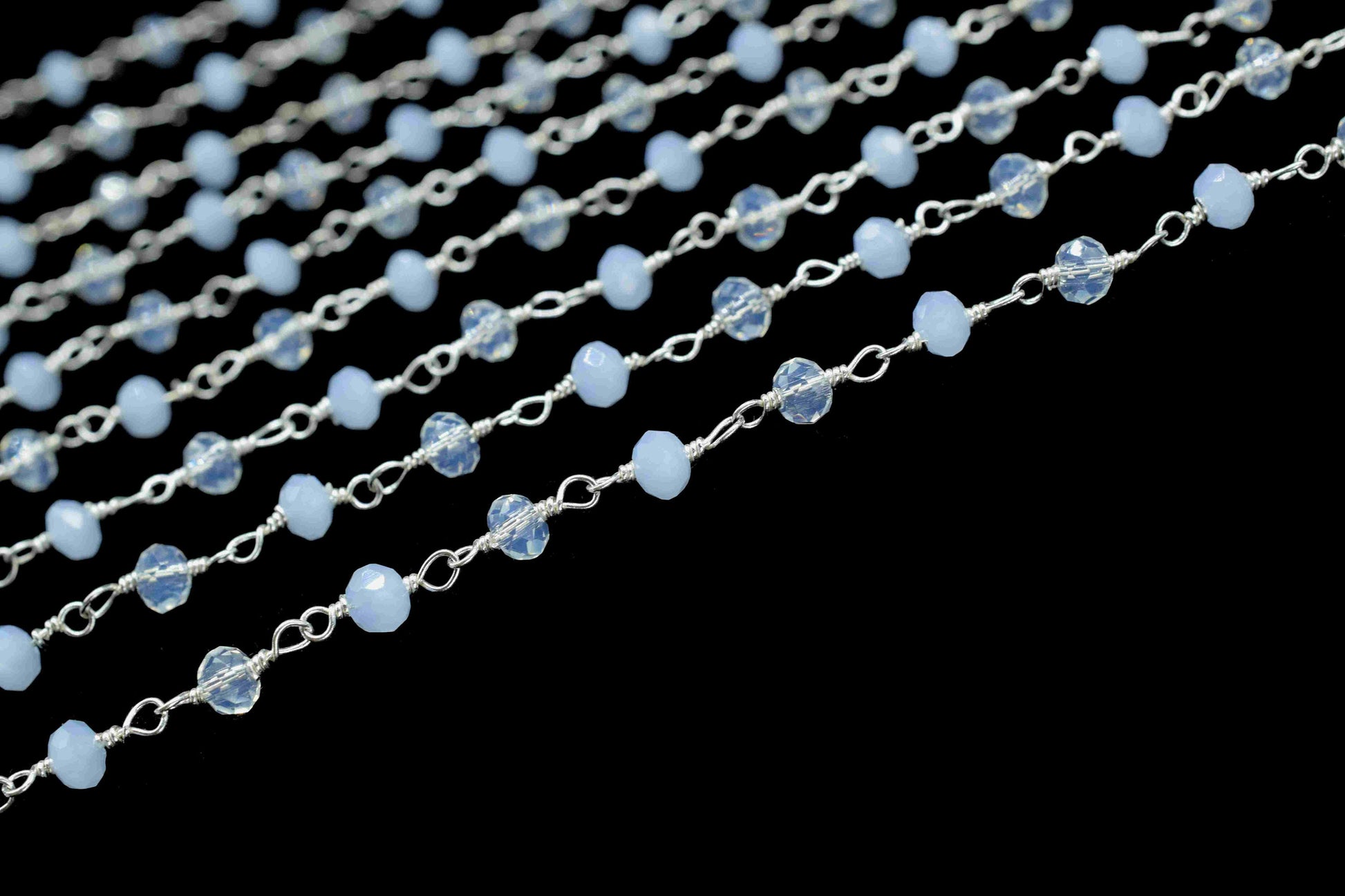 Blue chalcedony 3mm Beaded Chain,Faceted Rosary Style Beaded Chain,Wire Wrapped Rosary Chain,Blue Quartz stone links,Handmade Jewelry Making