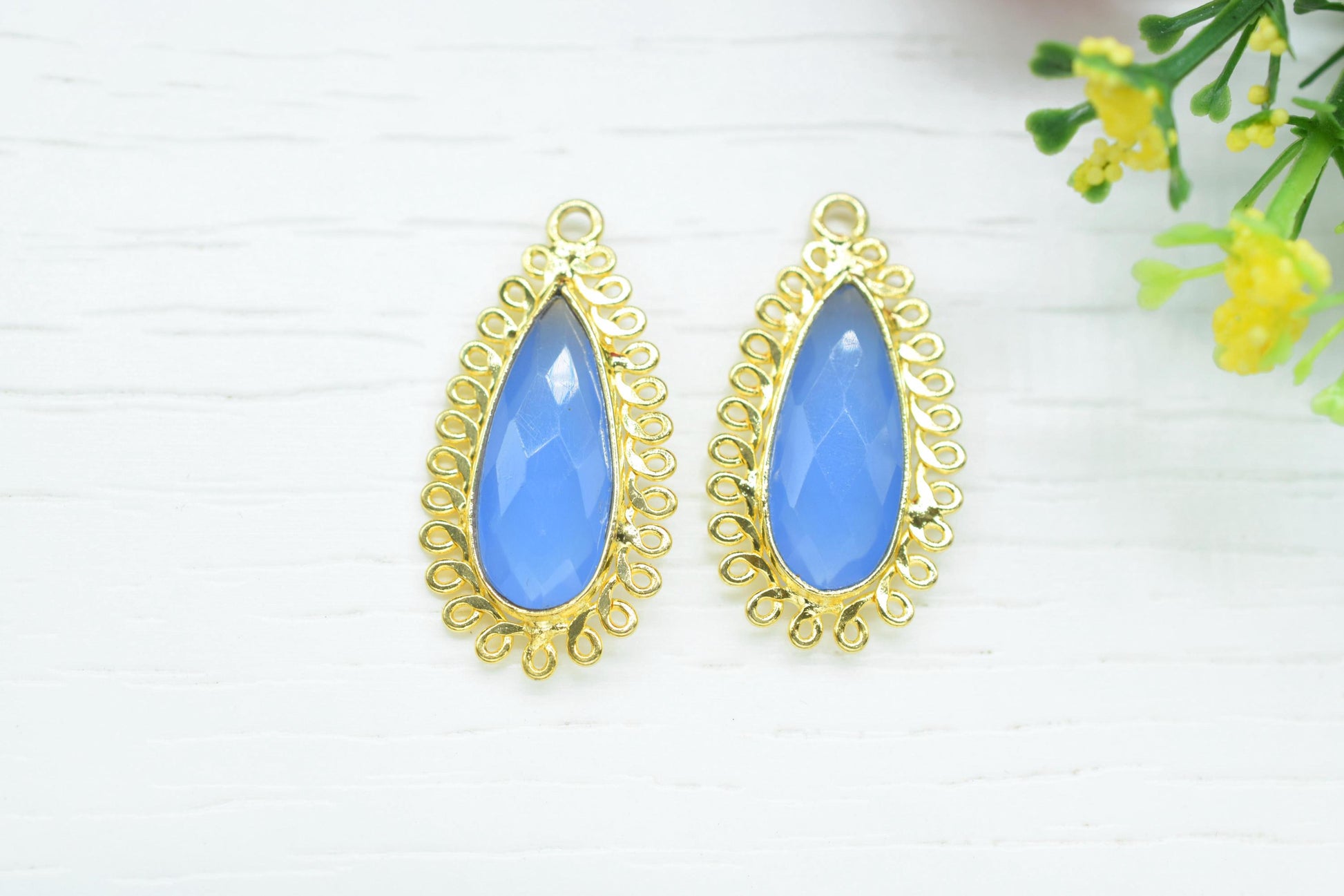 Blue Chalcedony 8x20 Teardrop Bezel Charms,Wholesale Jewelry,Single Bail Pendant,Gemstone Brass Component,Handmade Jewellery Connectors,Gift