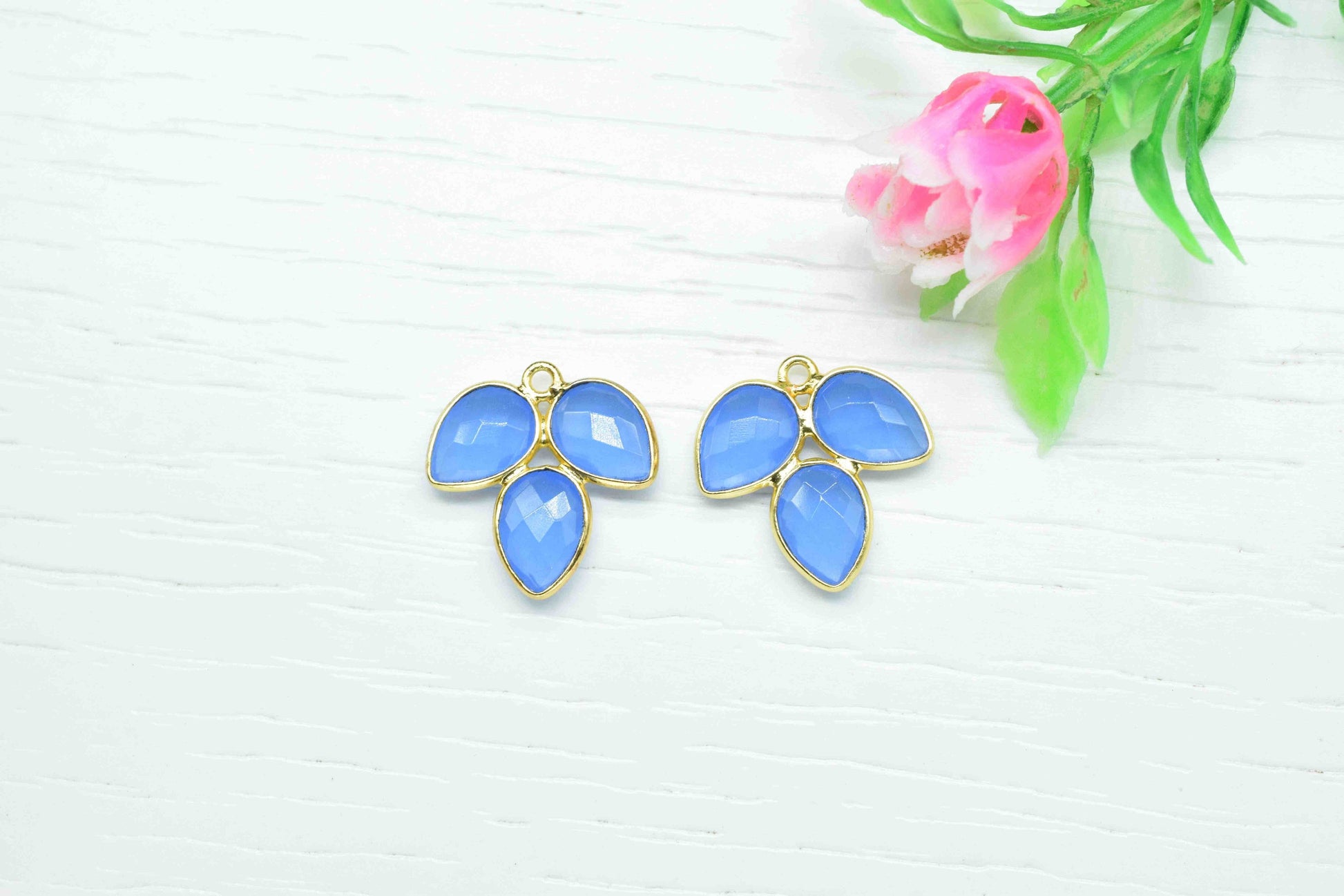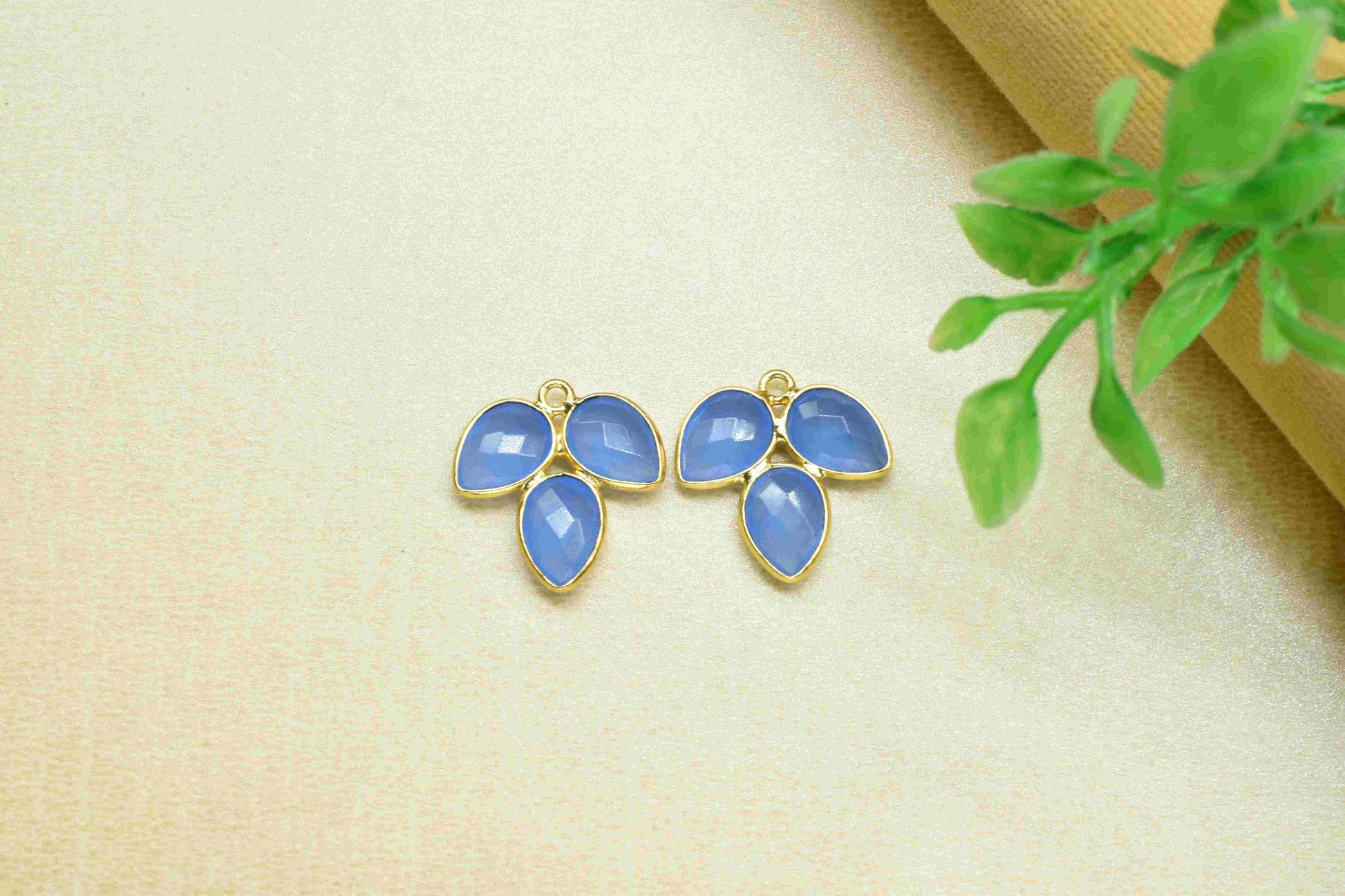 .Blue Chalcedony component,Blue Quartz Bezel Component,Blue Quartz Jewelry Making,Handmade Jewelry,Gemstone Component,Attached Bezel Pendant