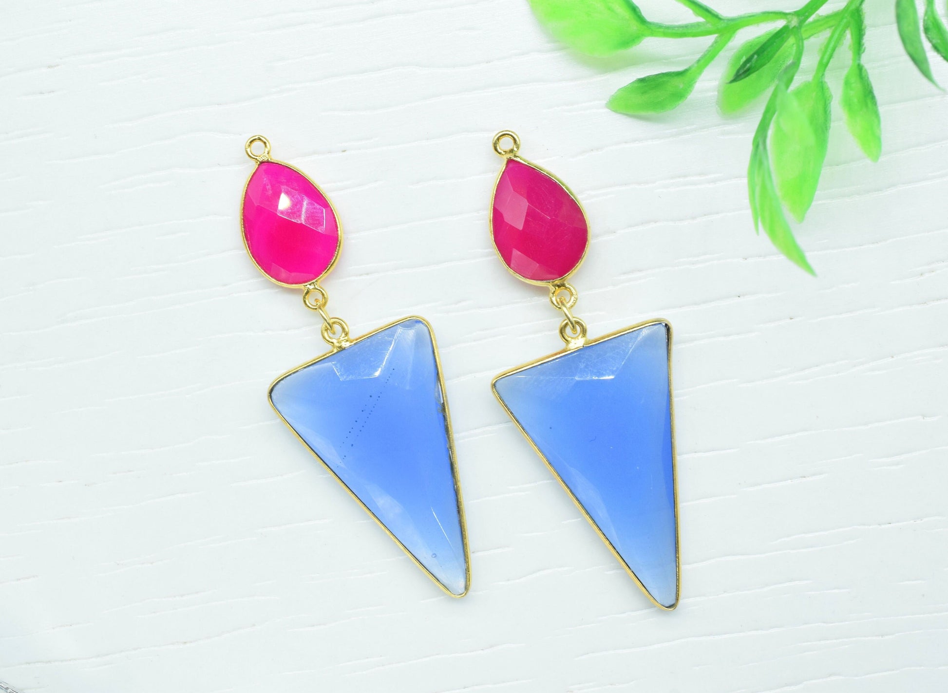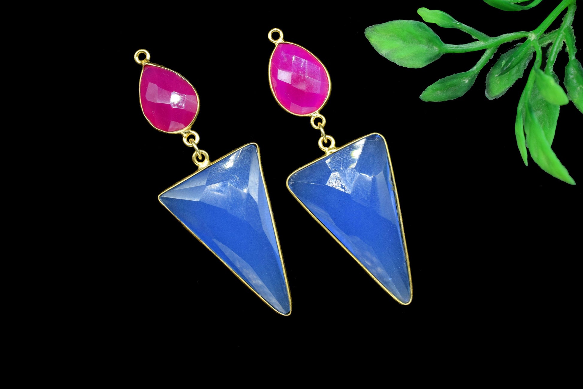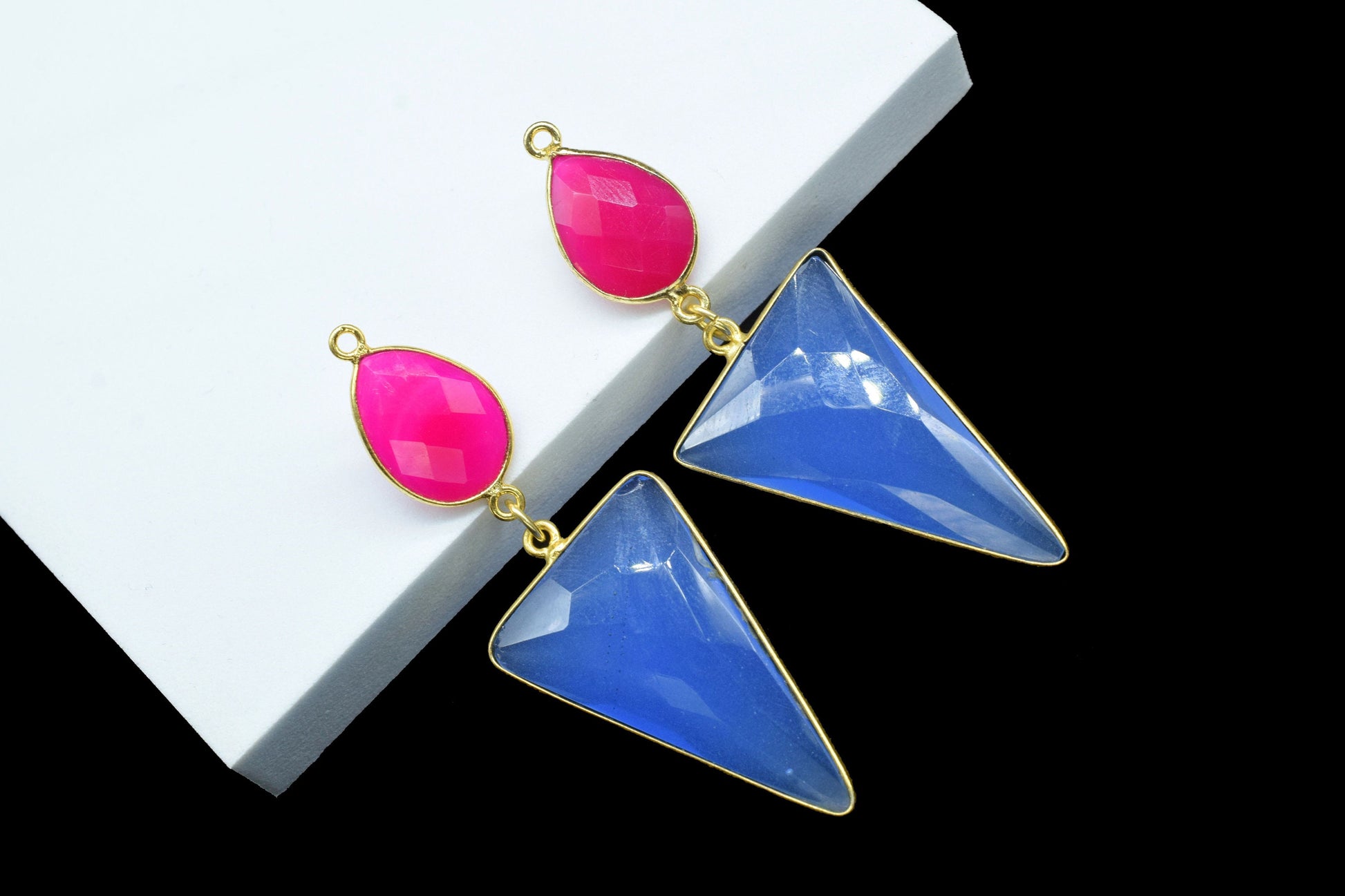 .Blue Chalcedony Dangle pendant Charms,Necklace Connector,Handmade jewelry,Component pendant,Station Bezel Link,Multi Gemstone Dangle Earring
