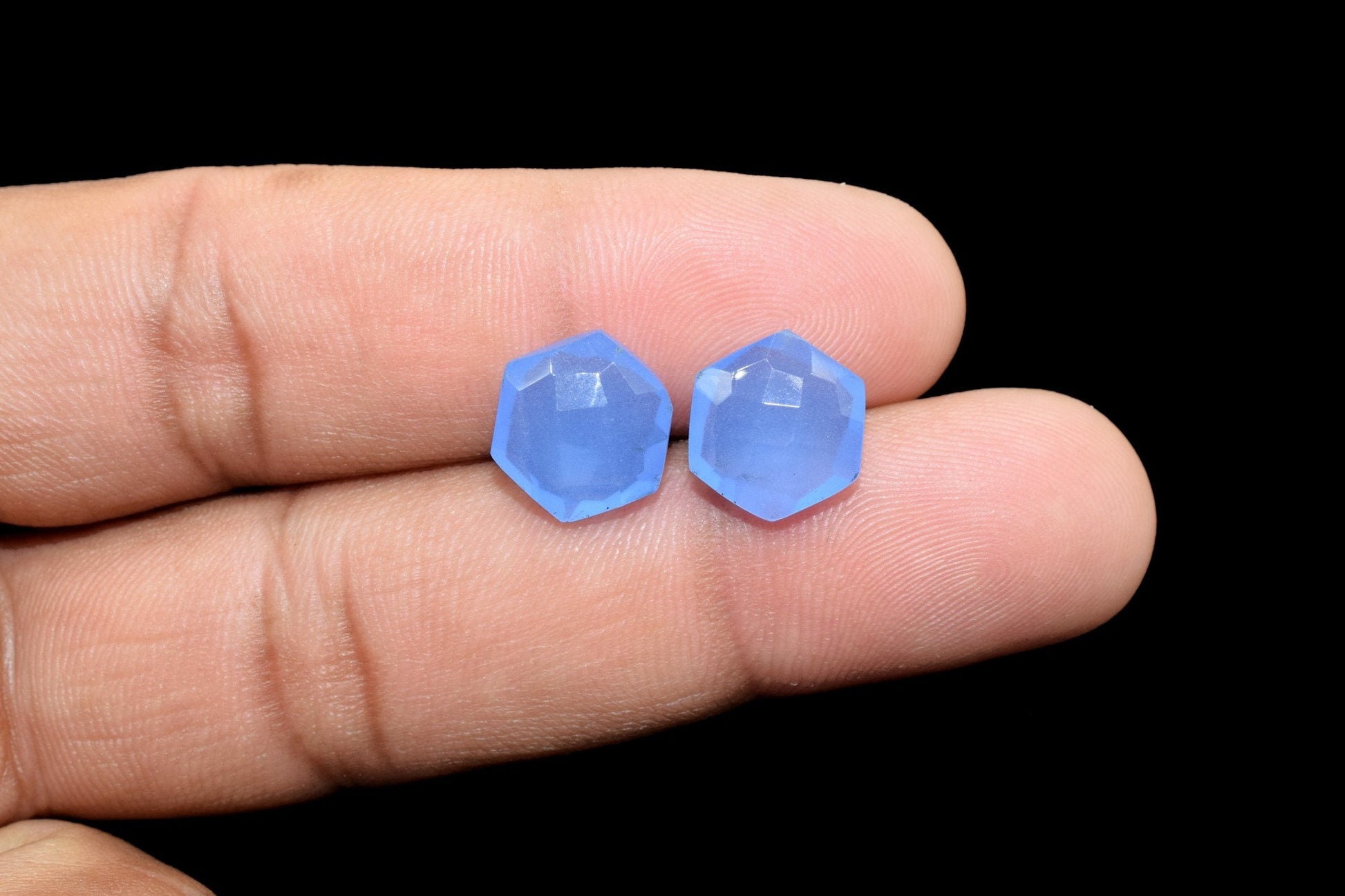 Blue Chalcedony faceted 10mm Hexagon Briolette,Blue Chalcedony Hexagon Beads,Gemstone Beads,Jewelry making Hexagon Beads,Fancy Briolettes