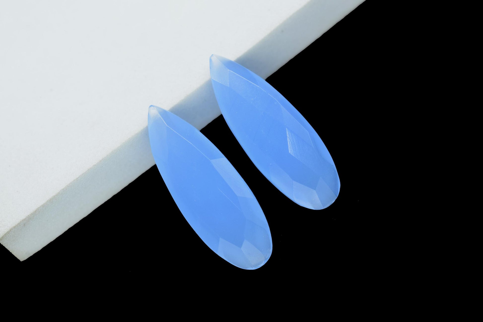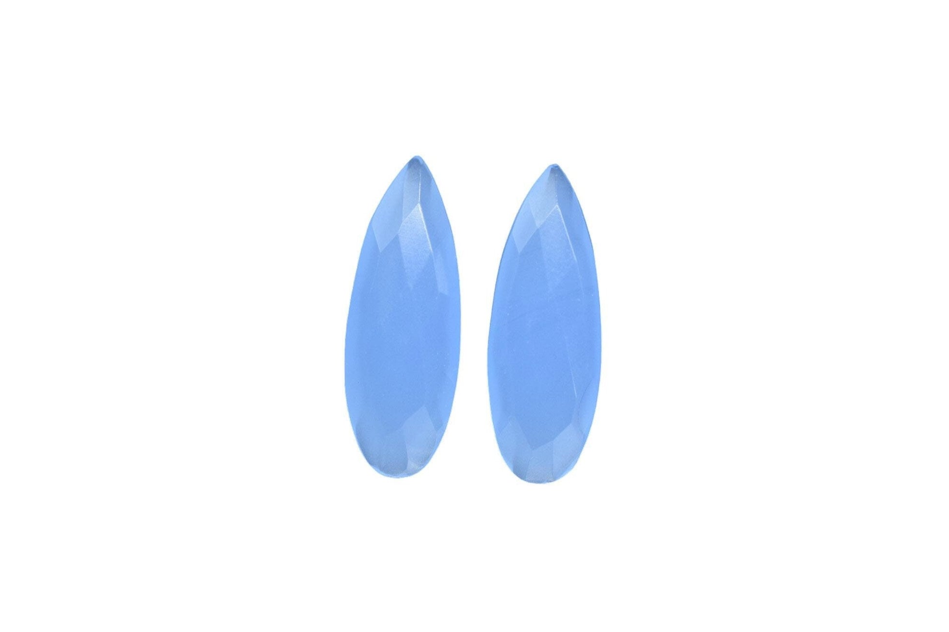 Blue chalcedony Faceted 10x30mm Teardrop Shape Briolette,Chalcedony Semi Precious Bead Jewelry,Gemstone Both Side Cut Loose Fancy Beads,Gift