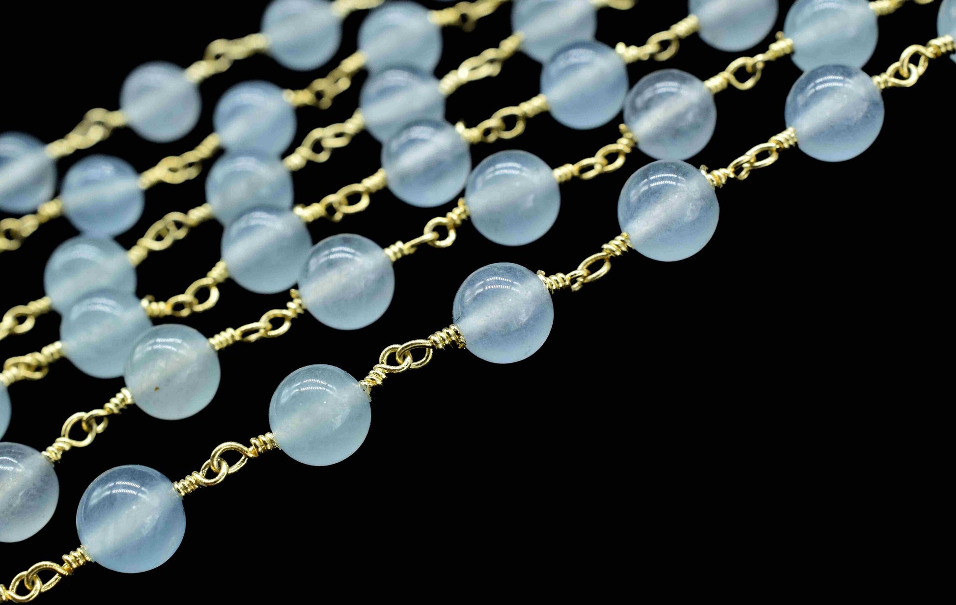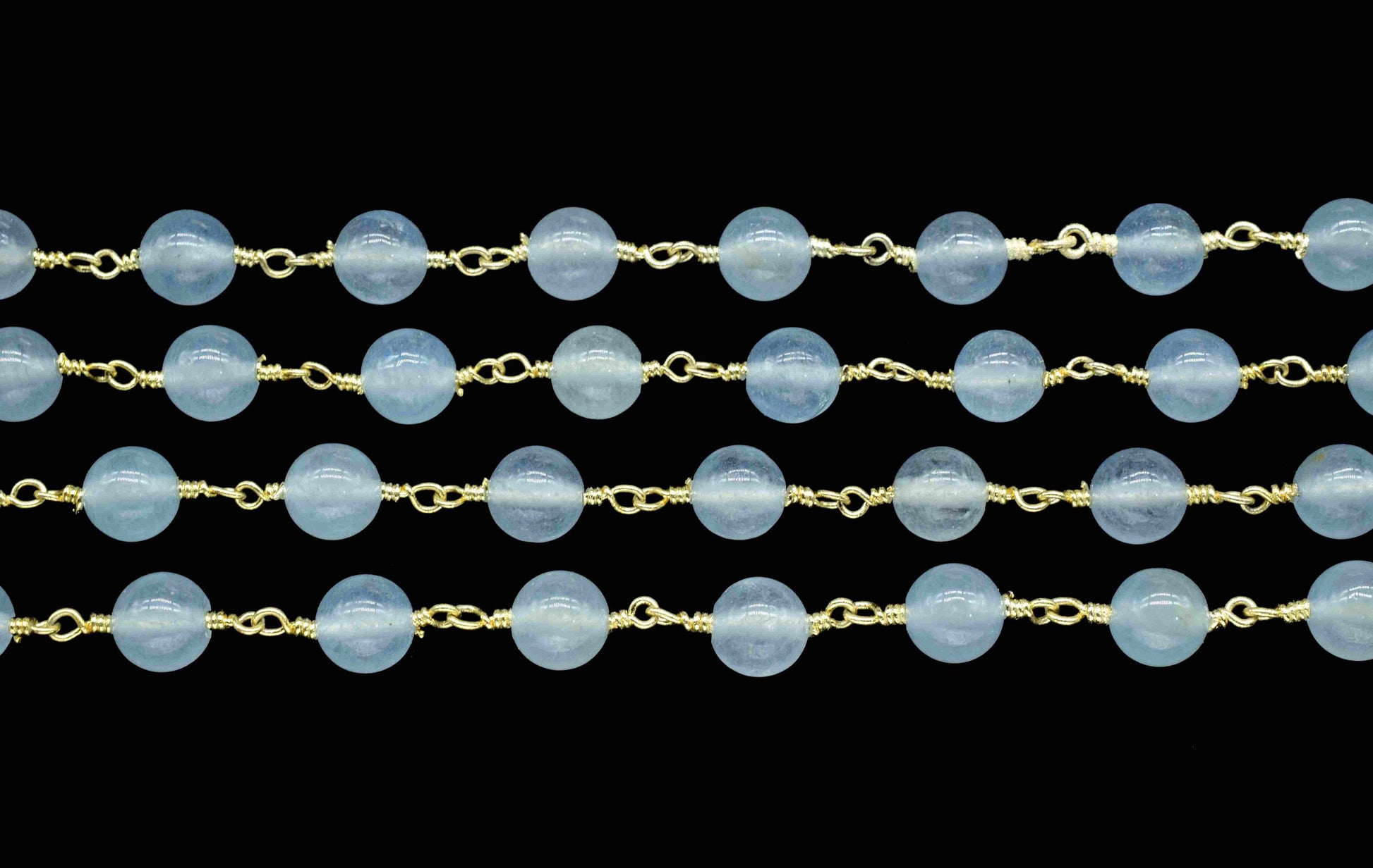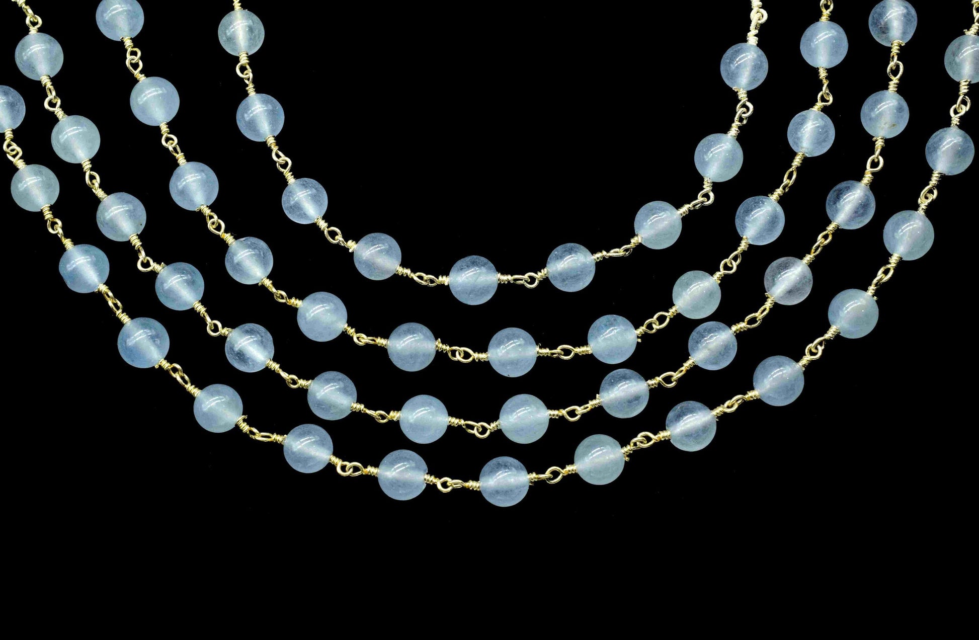 Blue Chalcedony gemstone 6mm Smooth Beads Rosary,Bulk Wholesale Beads Chains,Chalcedony Beads Chains,Blue Quartz Wire Wrapped Rosary Chain