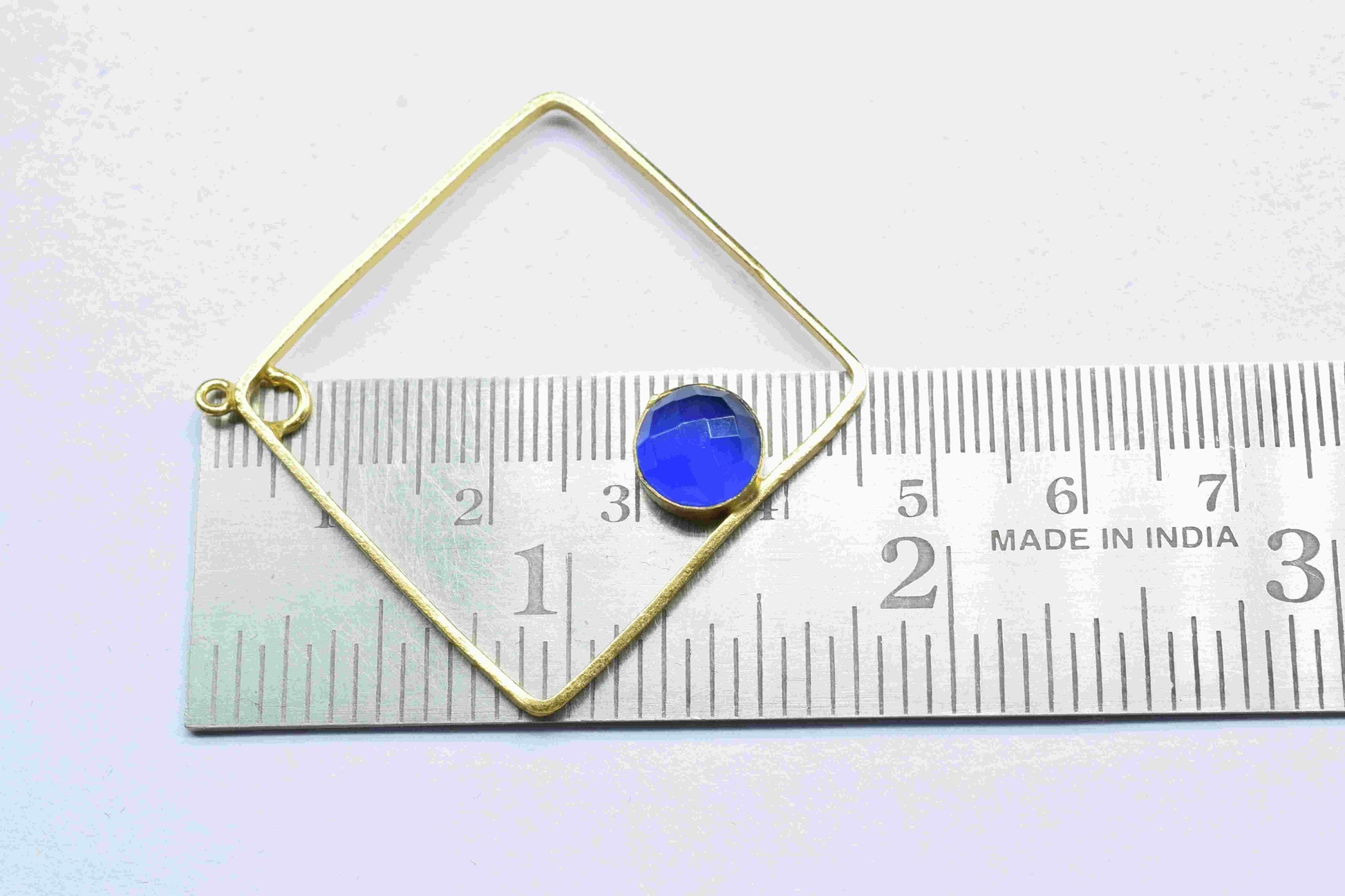 .Blue Chalcedony Gemstone Connector, 32mm Square Shape Pendant Component, Handmade Earring, Finding Component Earring, Blue Chalcedony Jewellery
