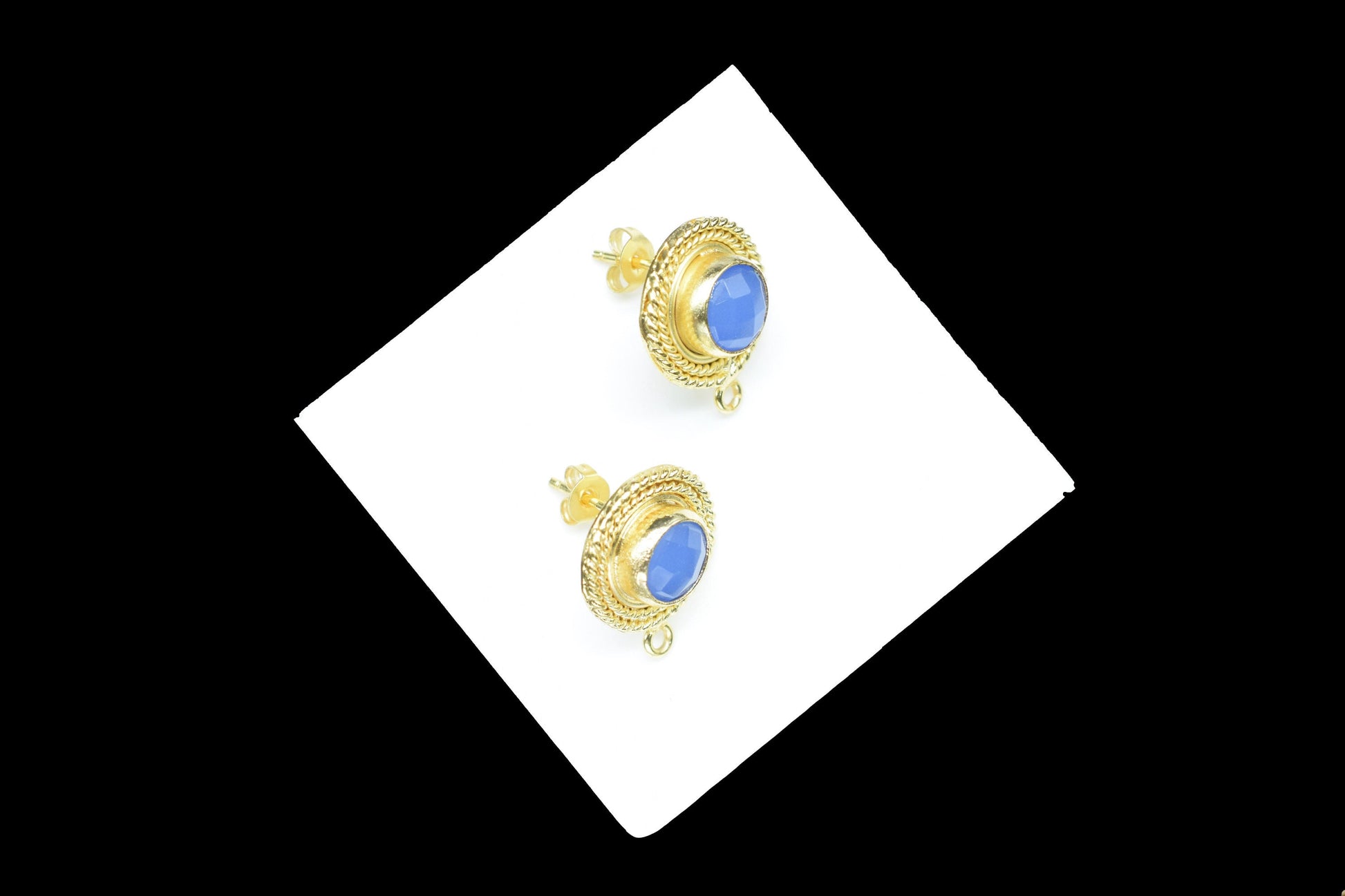Blue Chalcedony Gemstone Earring Connector/Chalcedony Round Earring/Designer Earrings/Gold Plated Jewelry/Handmade Jewelry/Earring Connector