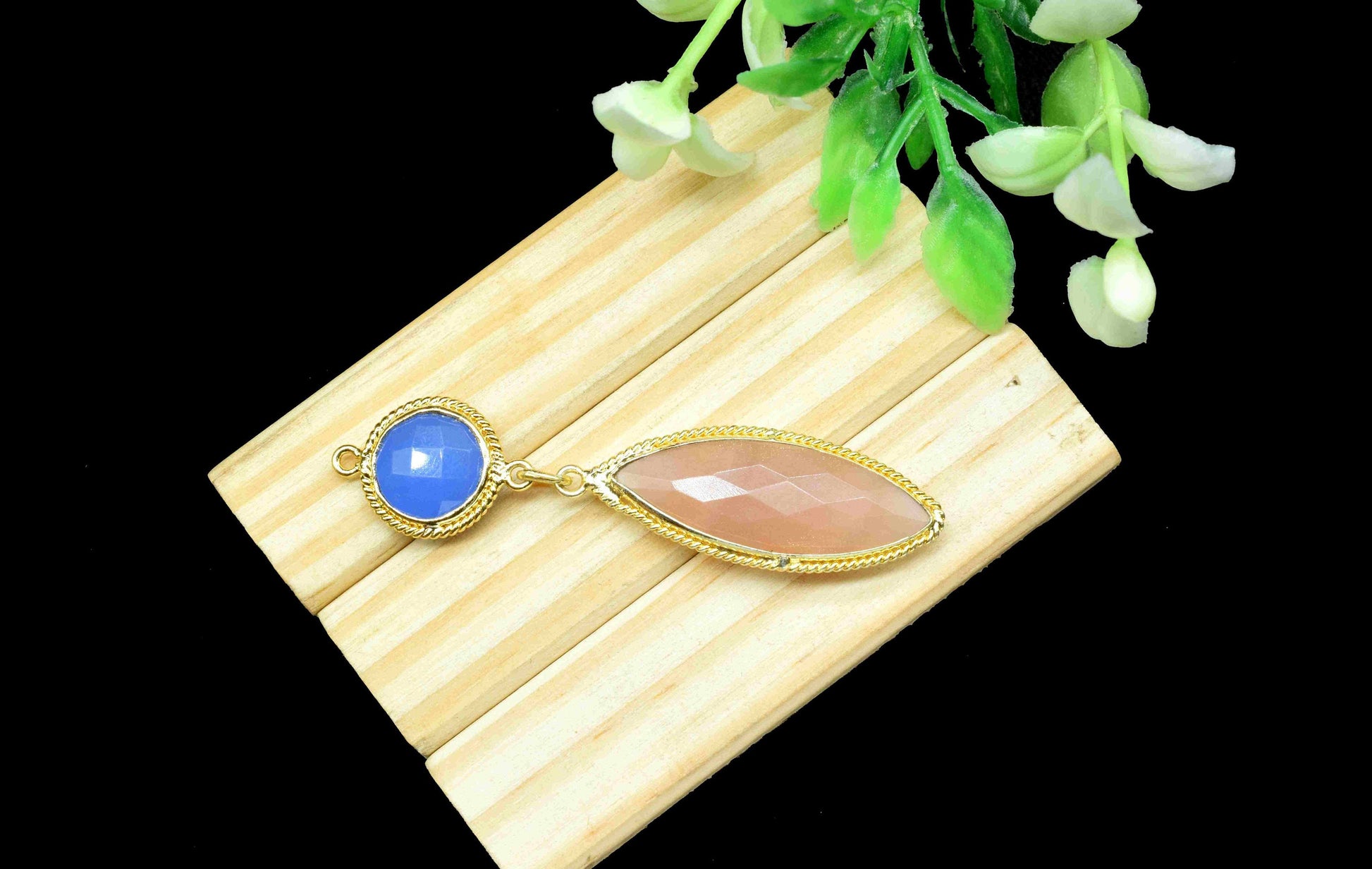 .Blue Chalcedony Pendant Charms , Peach Moonstone Dangle Earring Component , Multi Gemstone Dangle Earring , Component Jewelry , B'day Gift