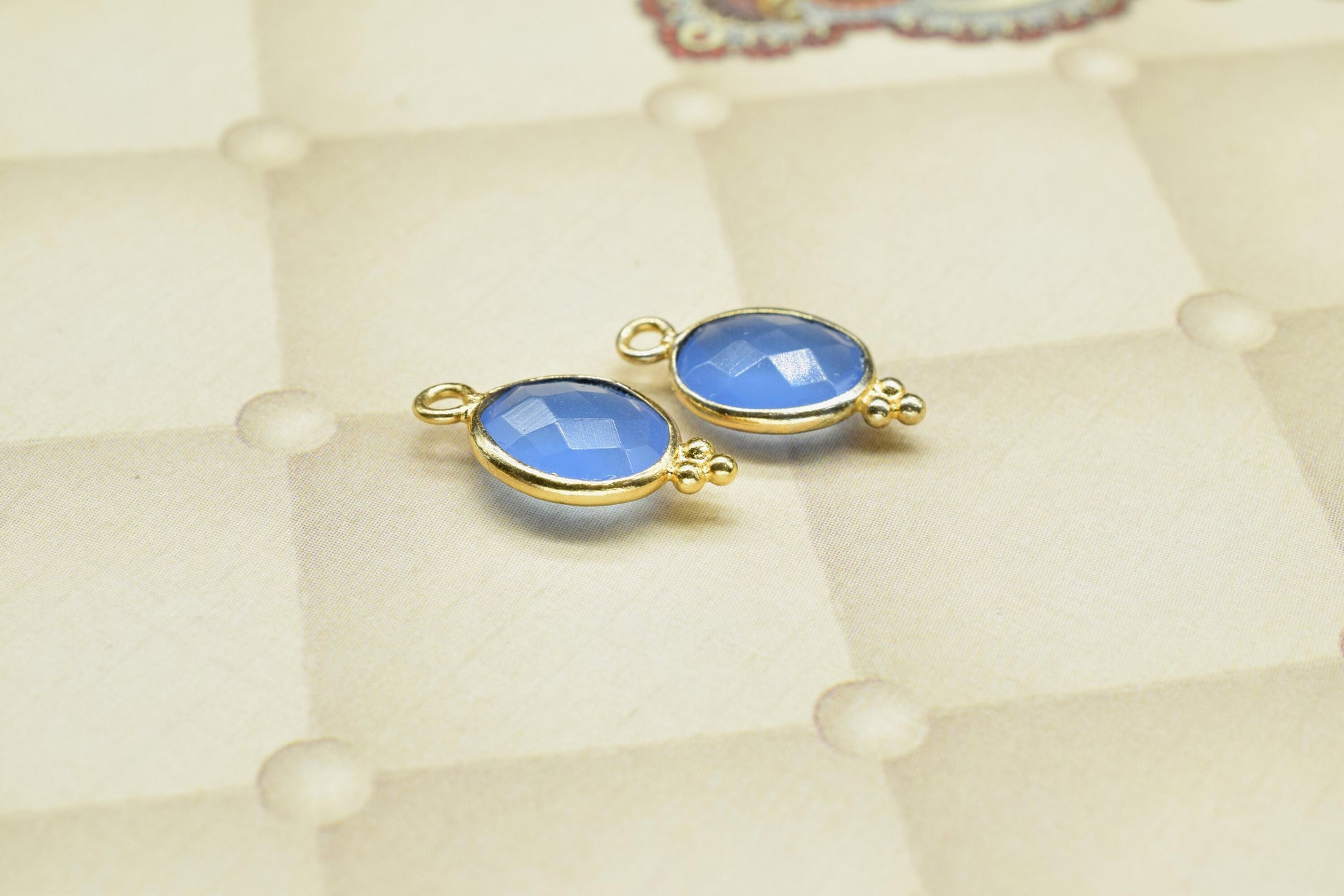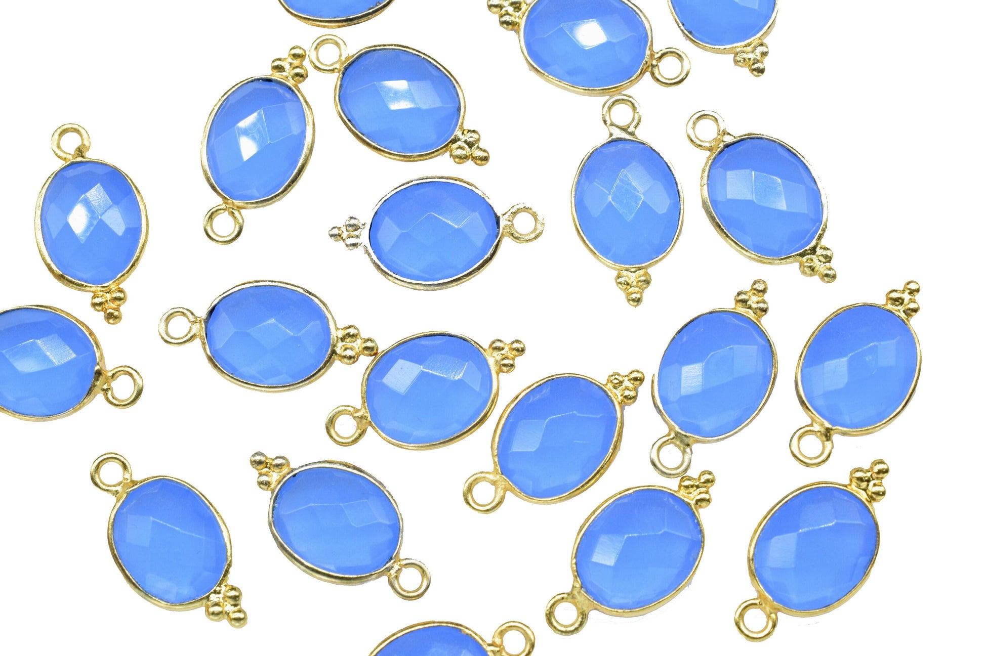 Blue Chalcedony Quartz Faceted 8x10mm Oval Shape Connector,Blue chalcedony Single bail component,Blue Chalcedony Gold Plated Bezel Connector