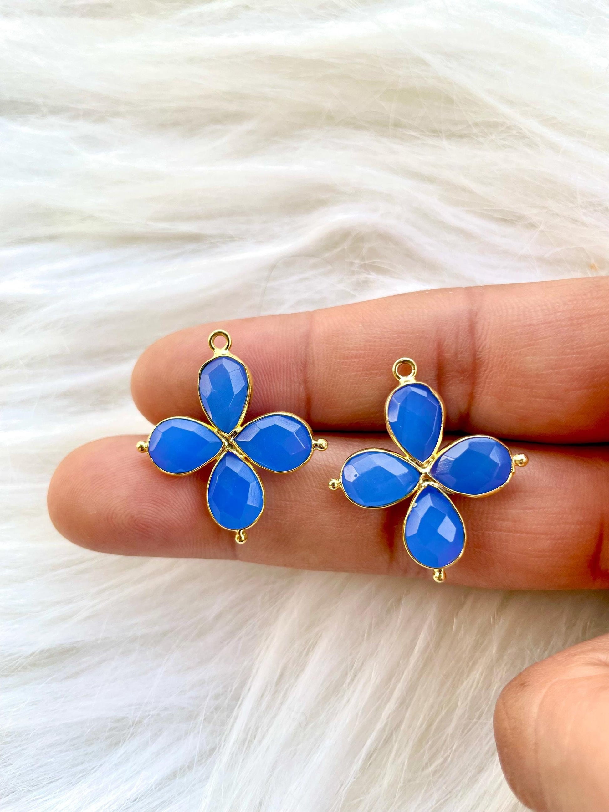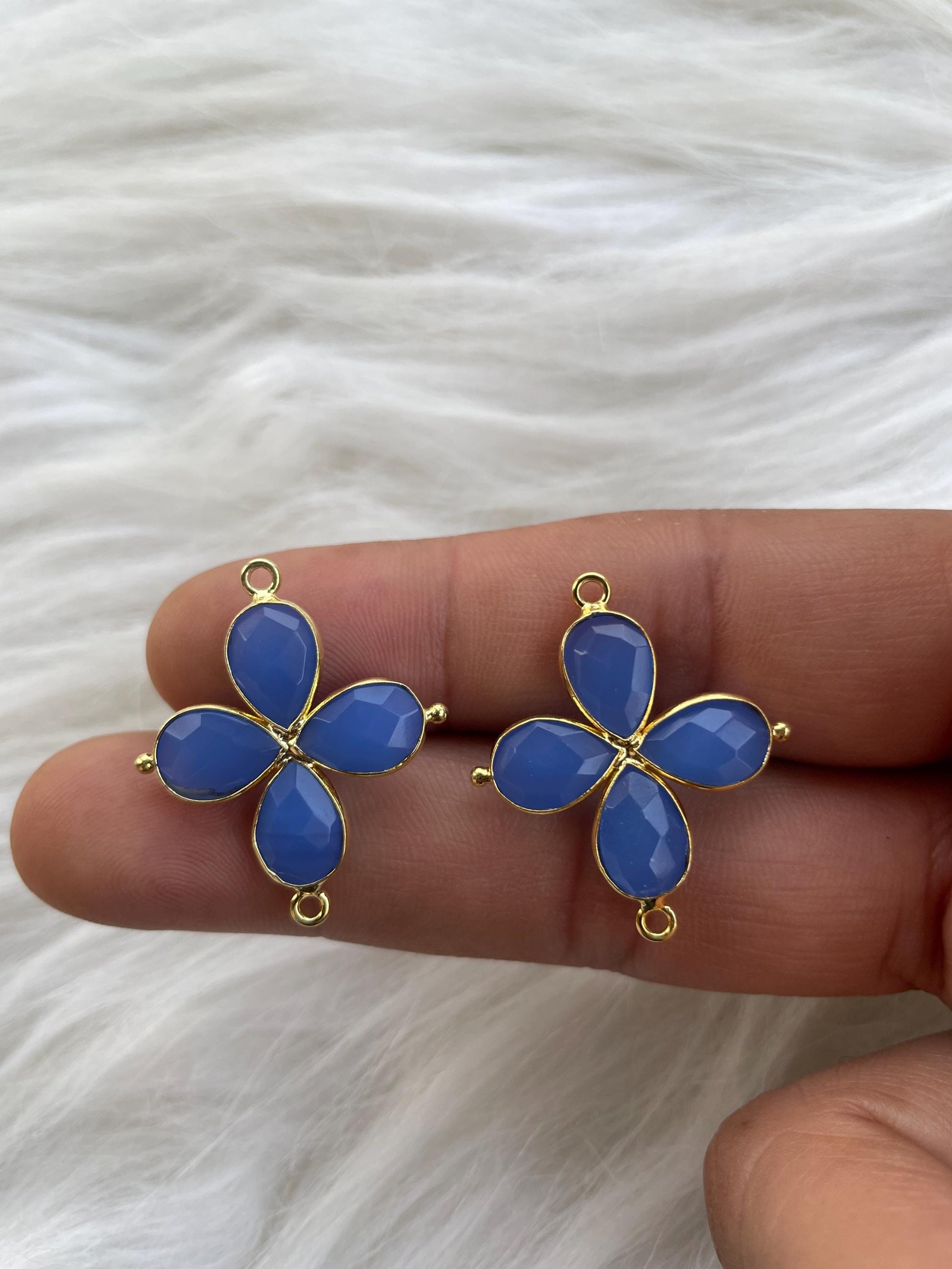 Blue Chalcedony Teardrop Pendant,Blue Gemstone jewelry,Chalcedony Bezel connectors,Gemstone Bracelet Charms,Double Loop connector,Gifts,P122