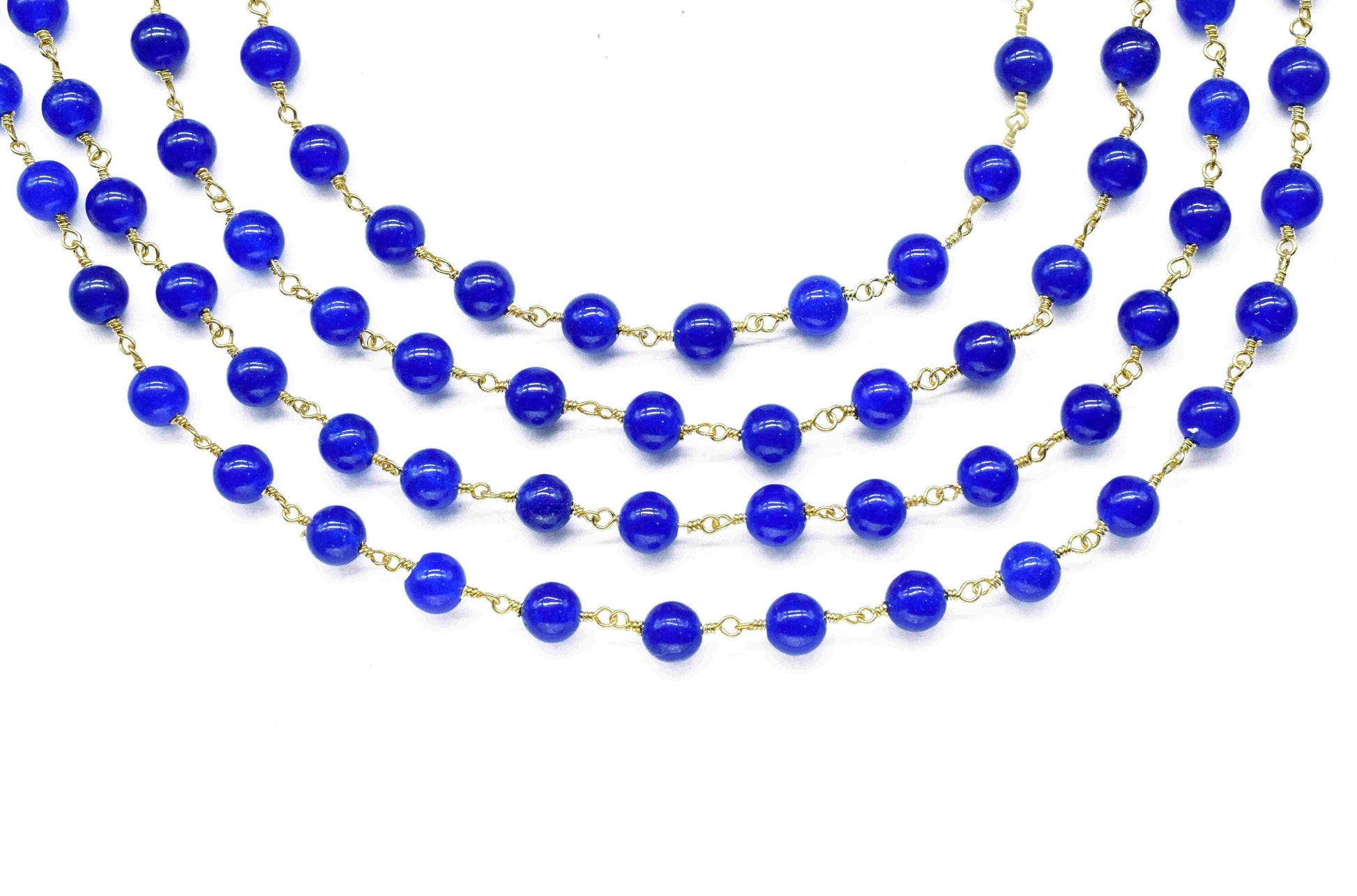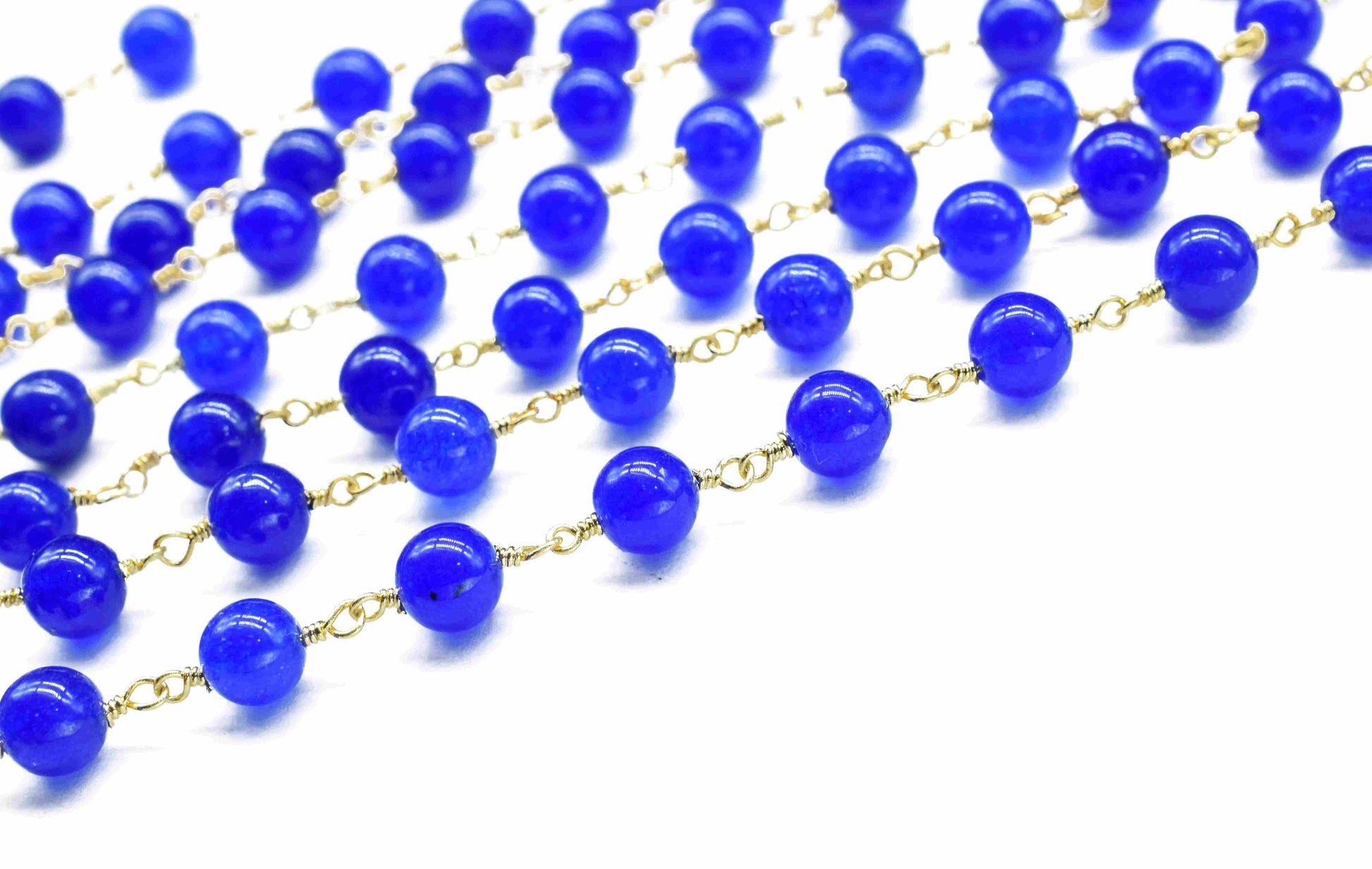 Blue jade Smooth Gemstone 6mm Smooth Bead Chain,Blue jade Beaded Rosary Chain Jewelry,Blue jade Wire Wrapped Gold Plating Beads Chain,Gift