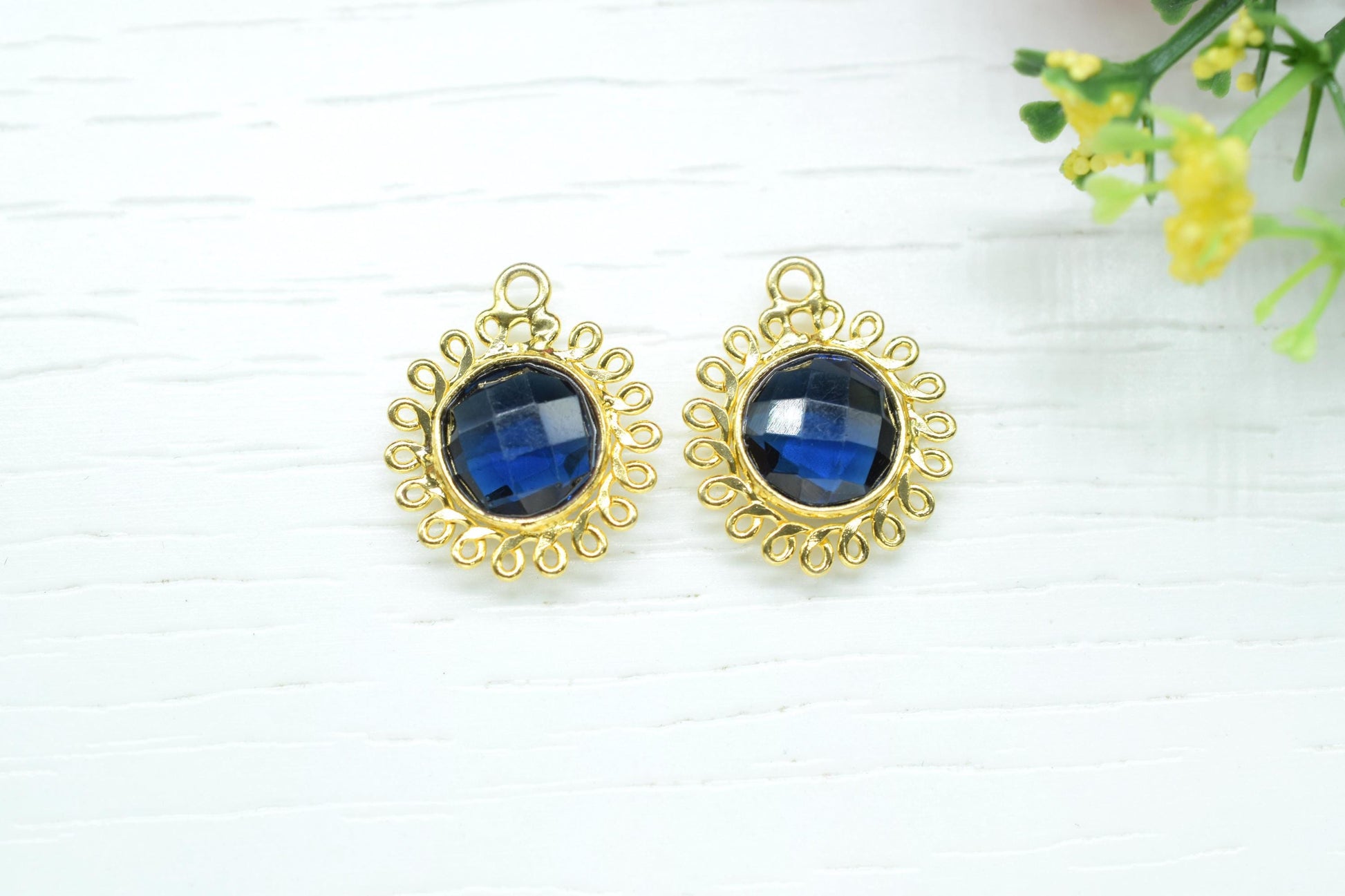 Blue Kyanite 10mm Round Bezel Charm,Gemstone Brass Component,Single Bail Pendant,Round Faceted charms,Handmade Jewellery Connector,Gift