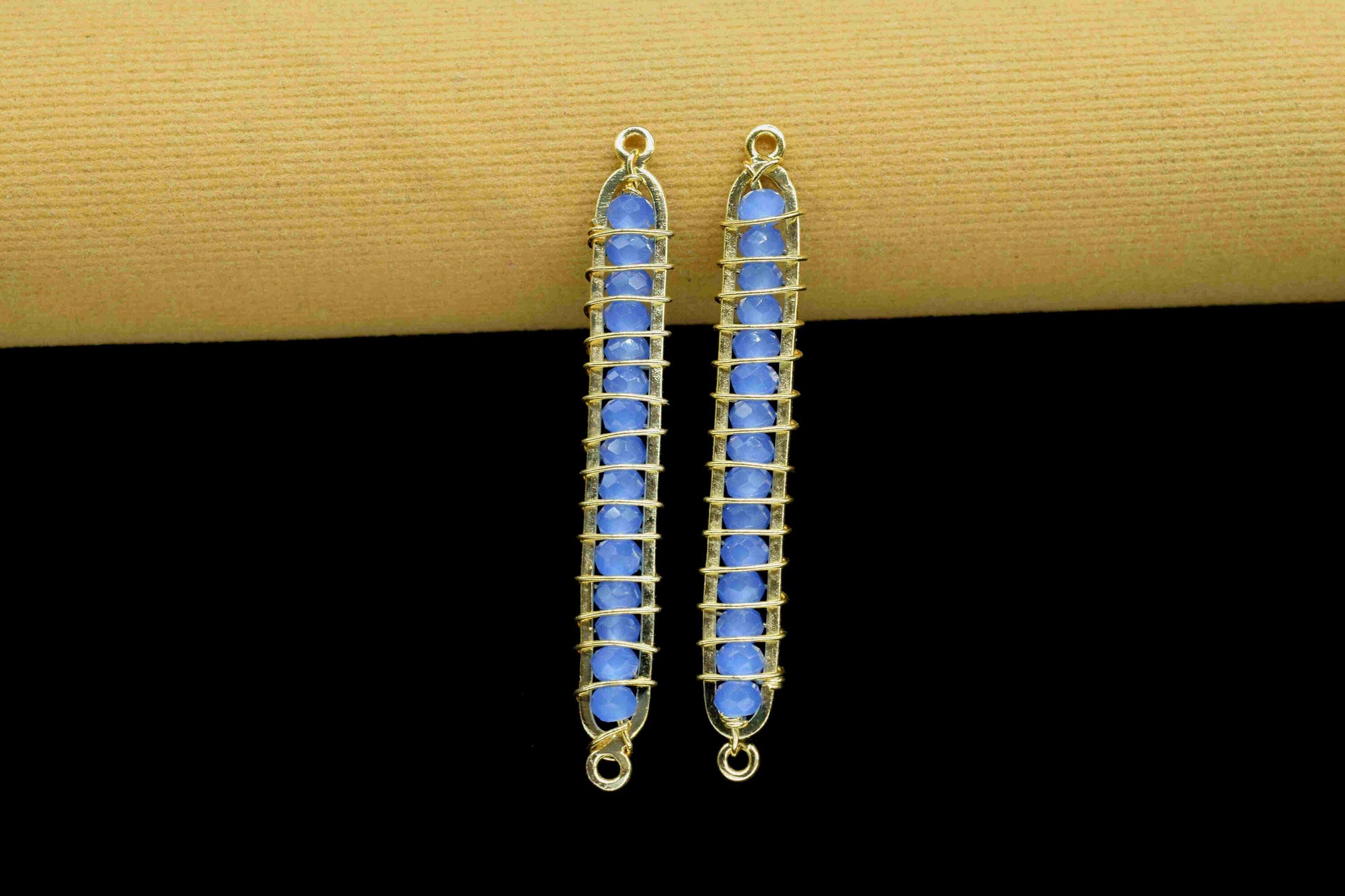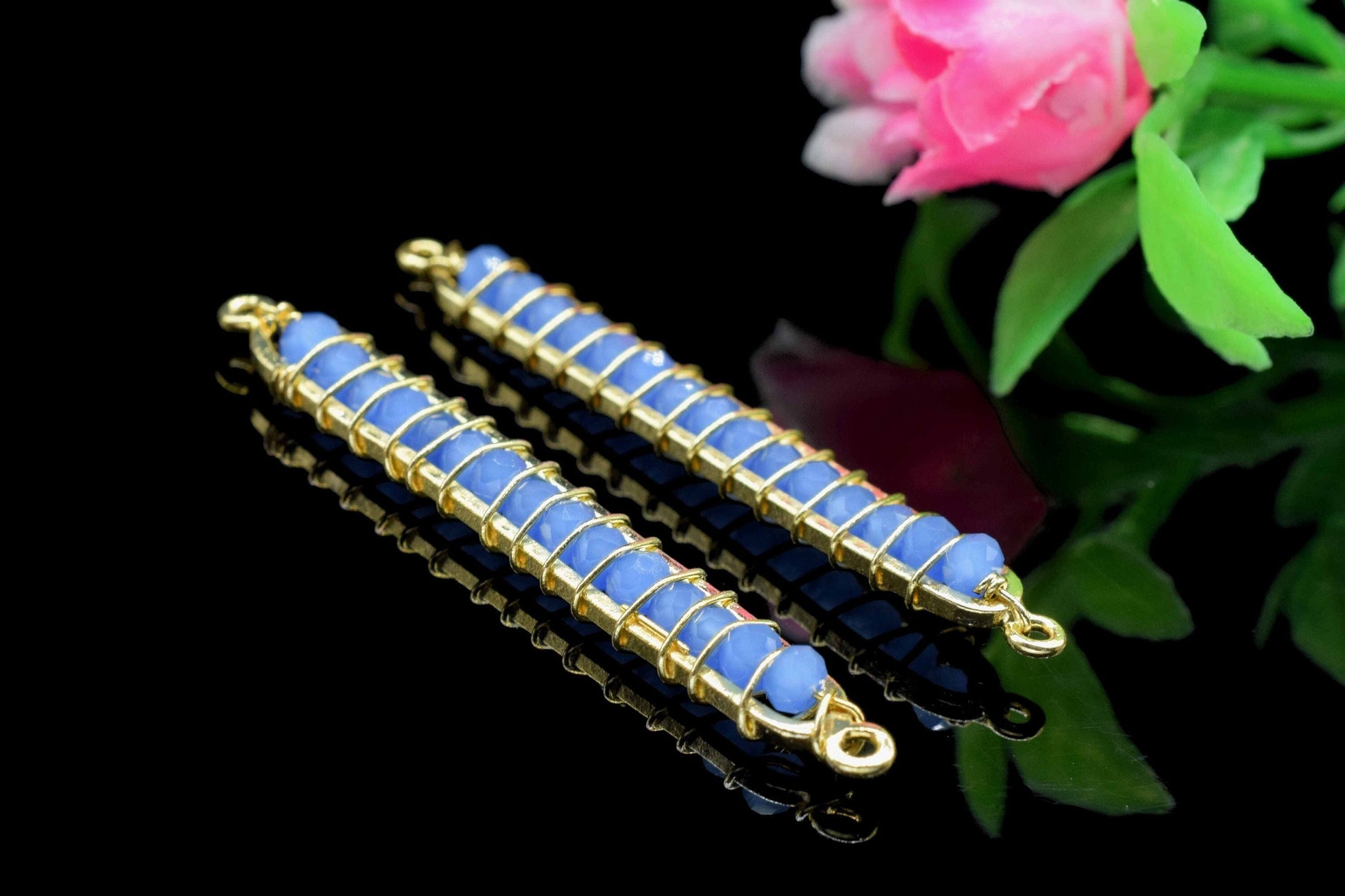 Blue Quartz beaded Bar Finding Connector,Bar Pendant Necklace,Blue Quartz Bar Bracelet,Beaded Bar Finding Component,Blue Quartz jewelry,Gift