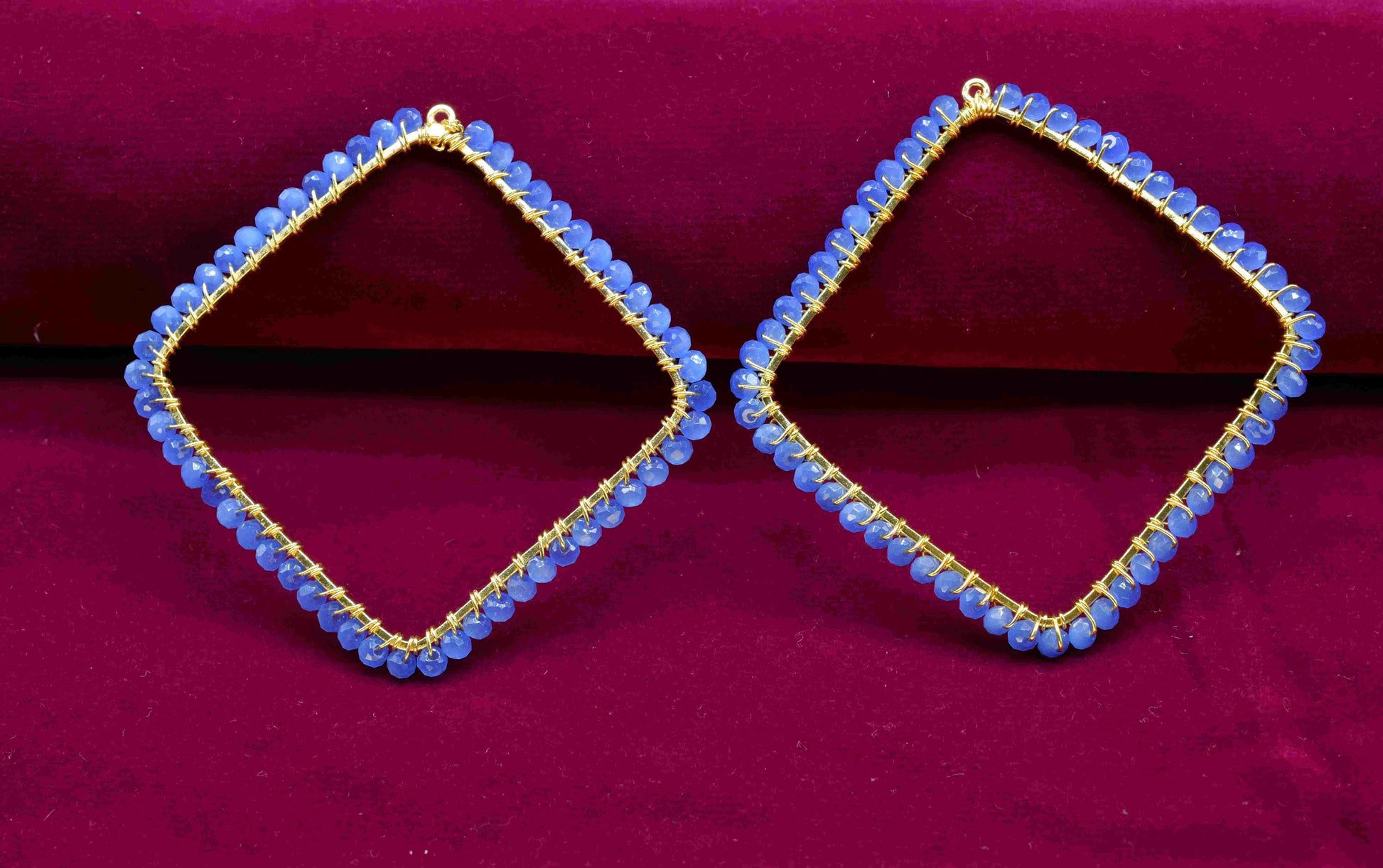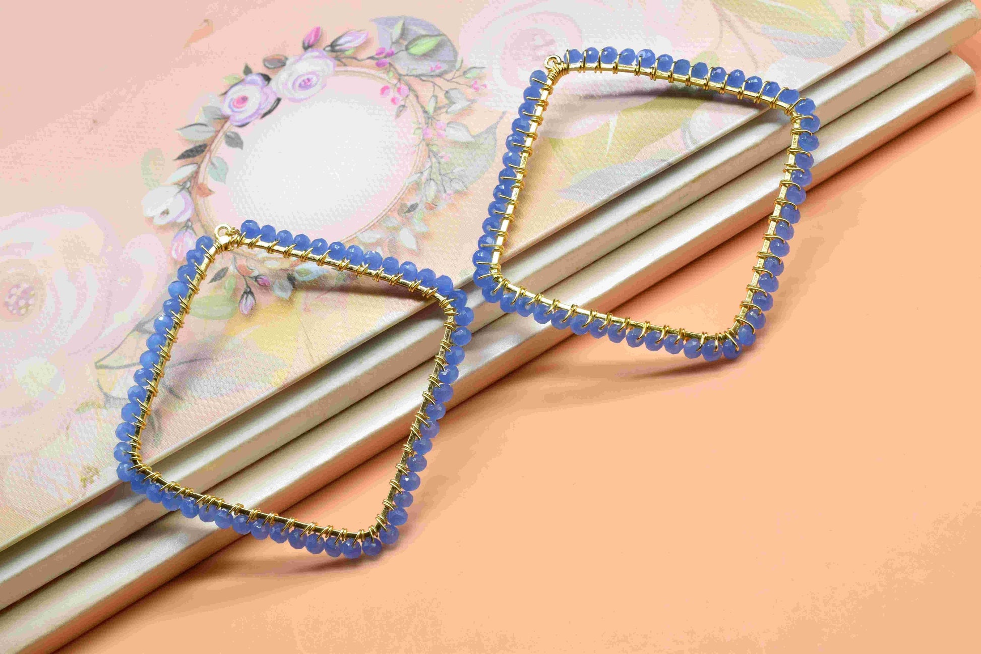 .Blue Quartz Dangle Earring Component,Gemstone Wire Wrapped Component,Beaded Earring Connector,Finding Necklace Connector,Blue Quartz Jewelry
