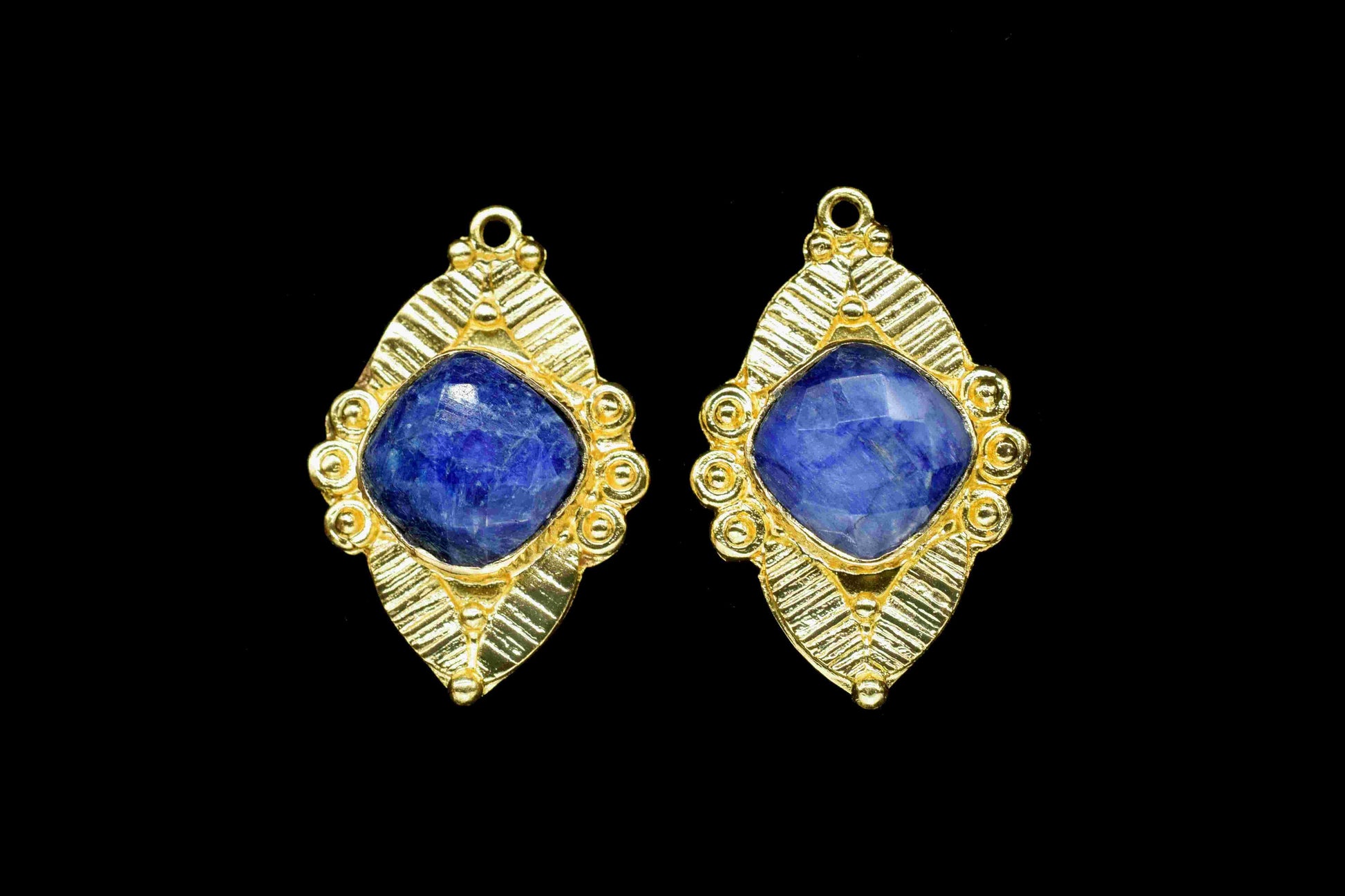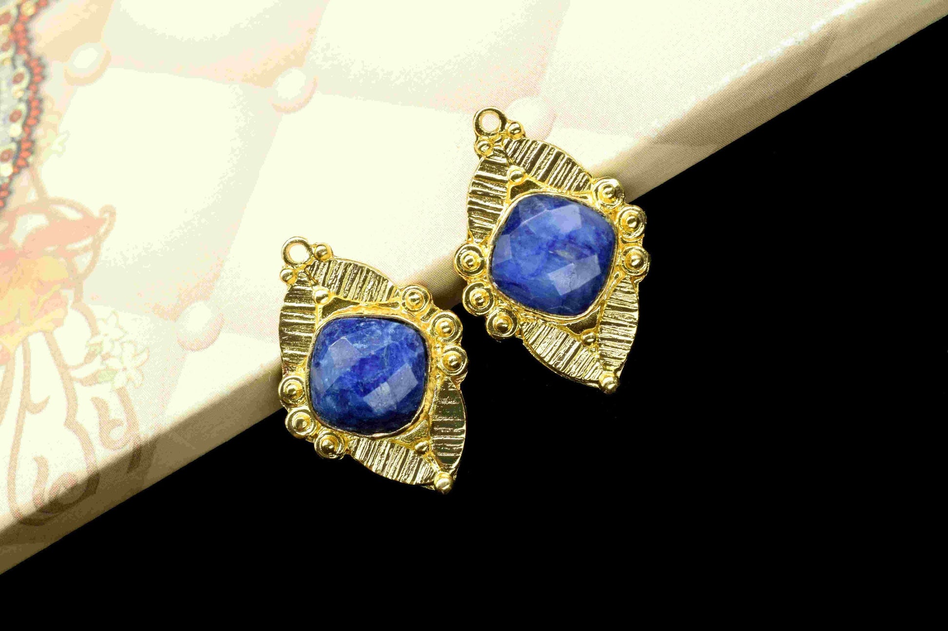 .Blue Sapphire 10mm Cushion Shape Connector,Pendant Findings,Blue Sapphire post stud,Gold Plated Earring Connector,Blue Sapphire Stud Jewellery