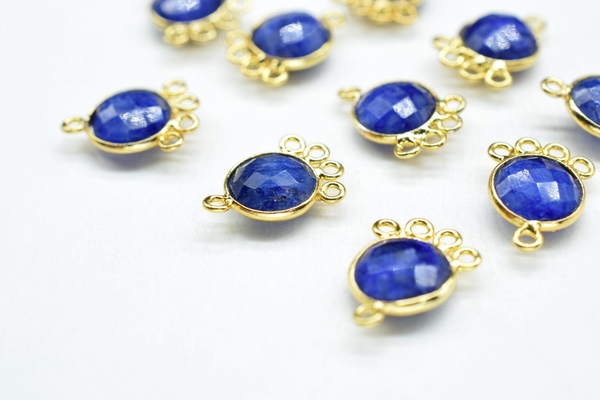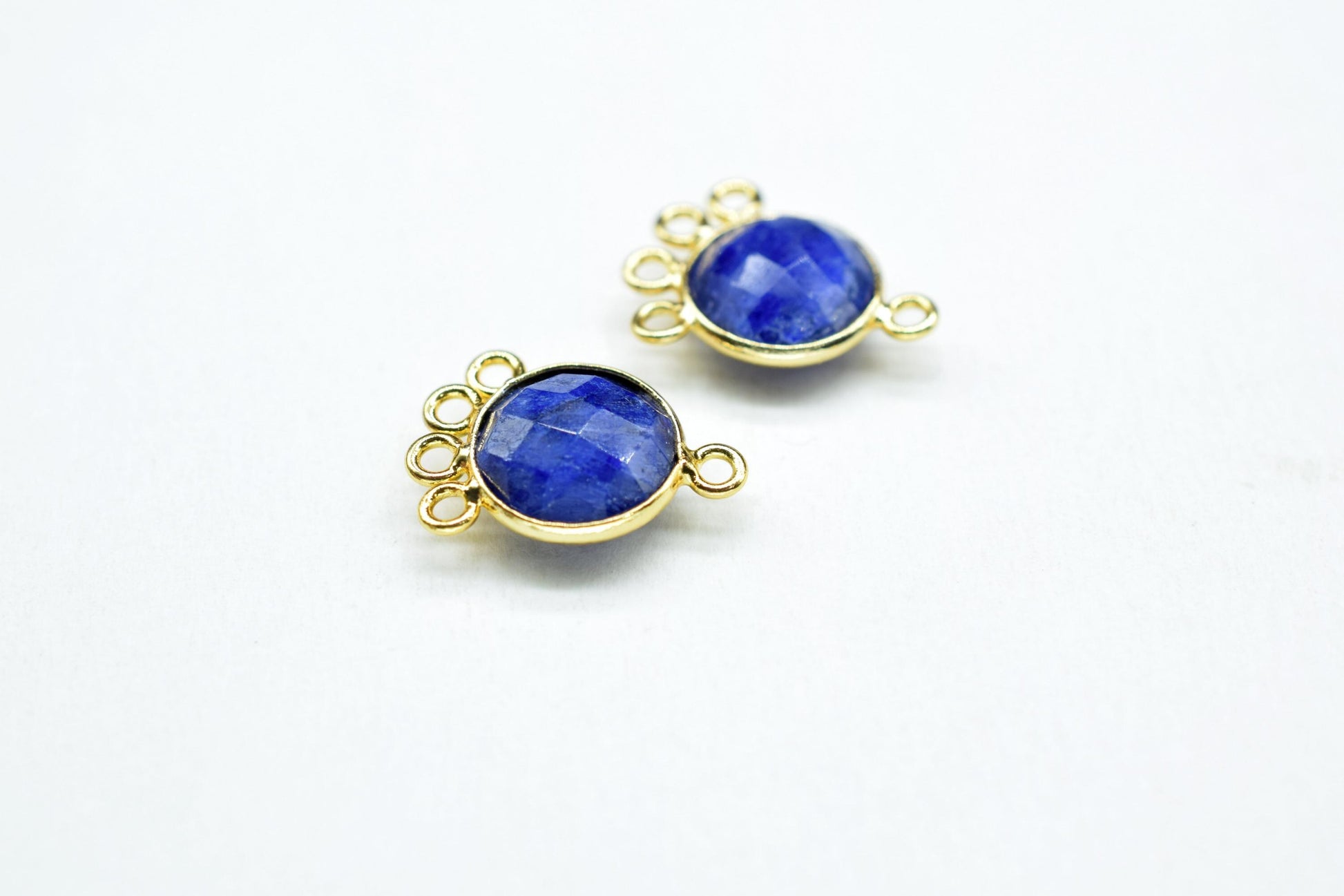 Blue Sapphire 10mm Round Bezel Charm/Gemstone Brass Component/Single Bail Pendant charms/Round Handmade Jewellery Connector/B'day Gift