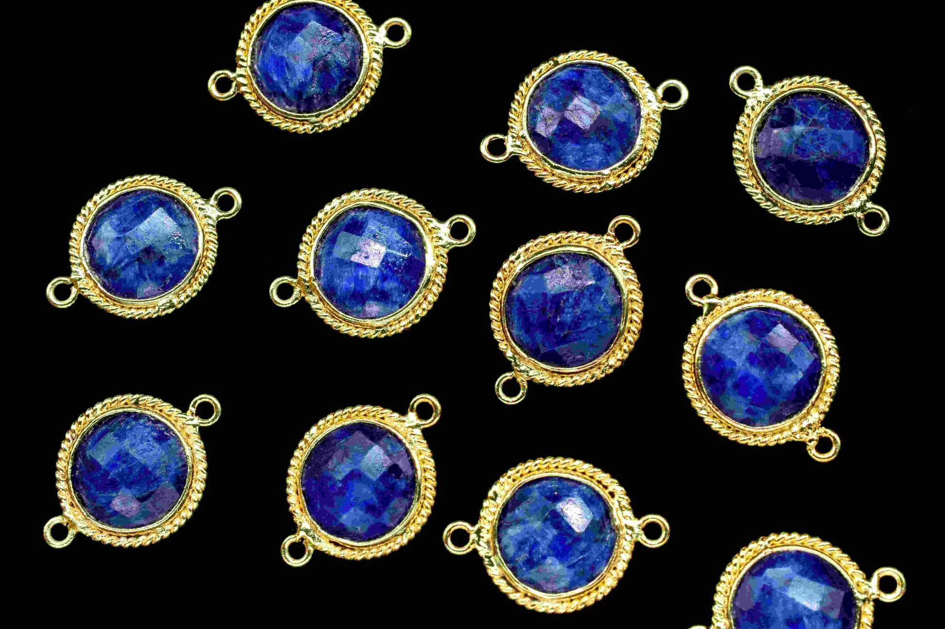 .Blue Sapphire 10mm Round Shape Connector,Blue Sapphire Double Bail,Gold Plated Earring Connector, Pendant Findings,Blue Sapphire Stud Jewellery