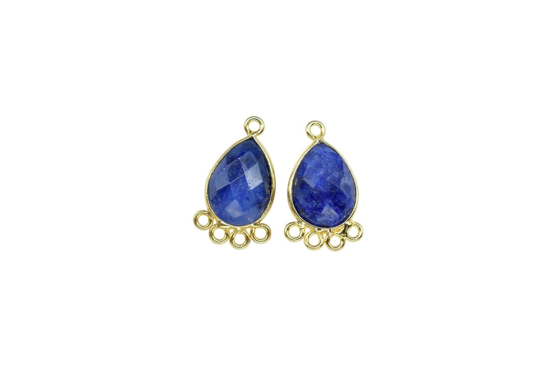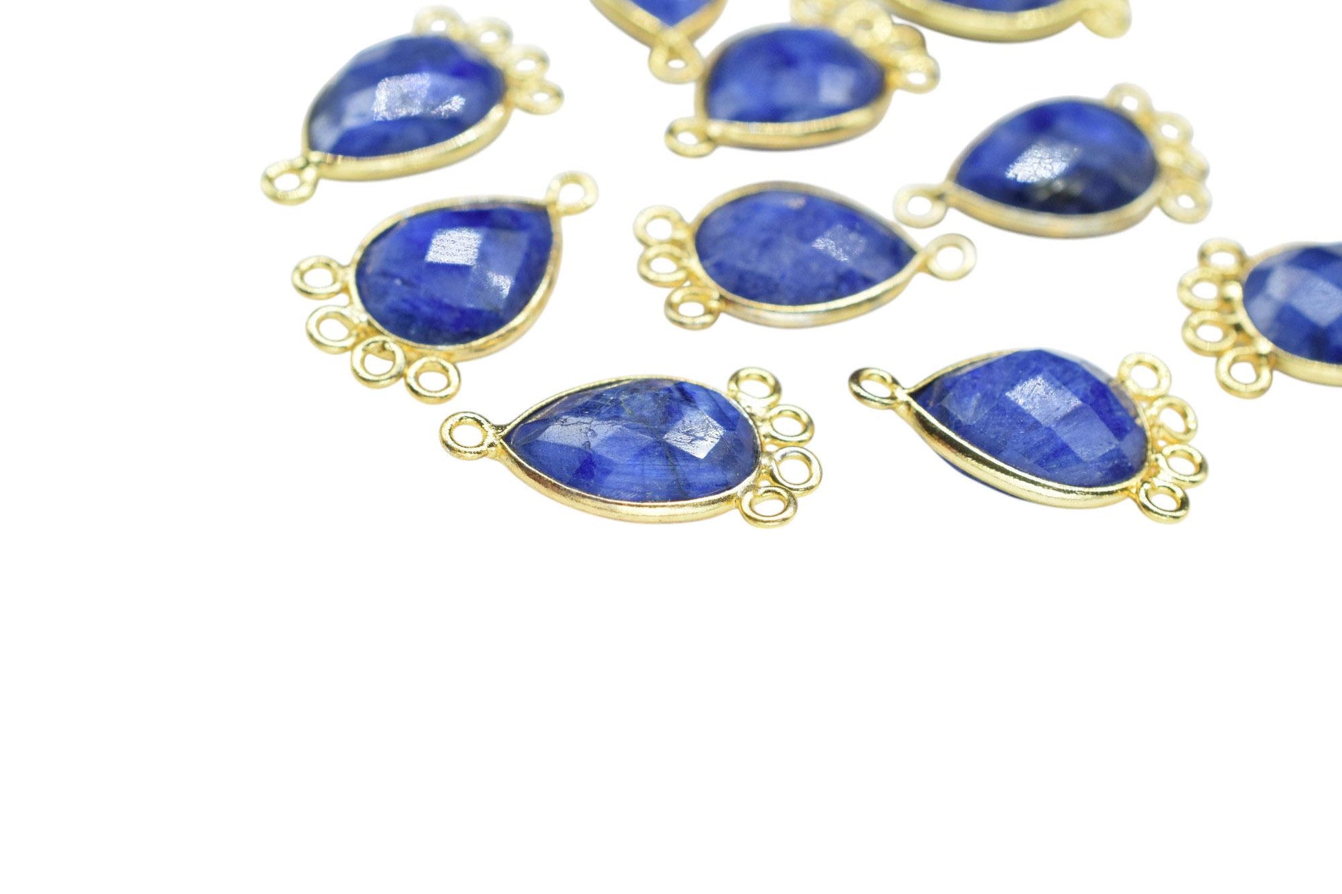 Blue Sapphire 10x14mm Teardrop Bezel Charm/Charms Connector/Handmade Jewellery Connectors/Gemstone Brass Component/Women Jewelry/B'day Gift