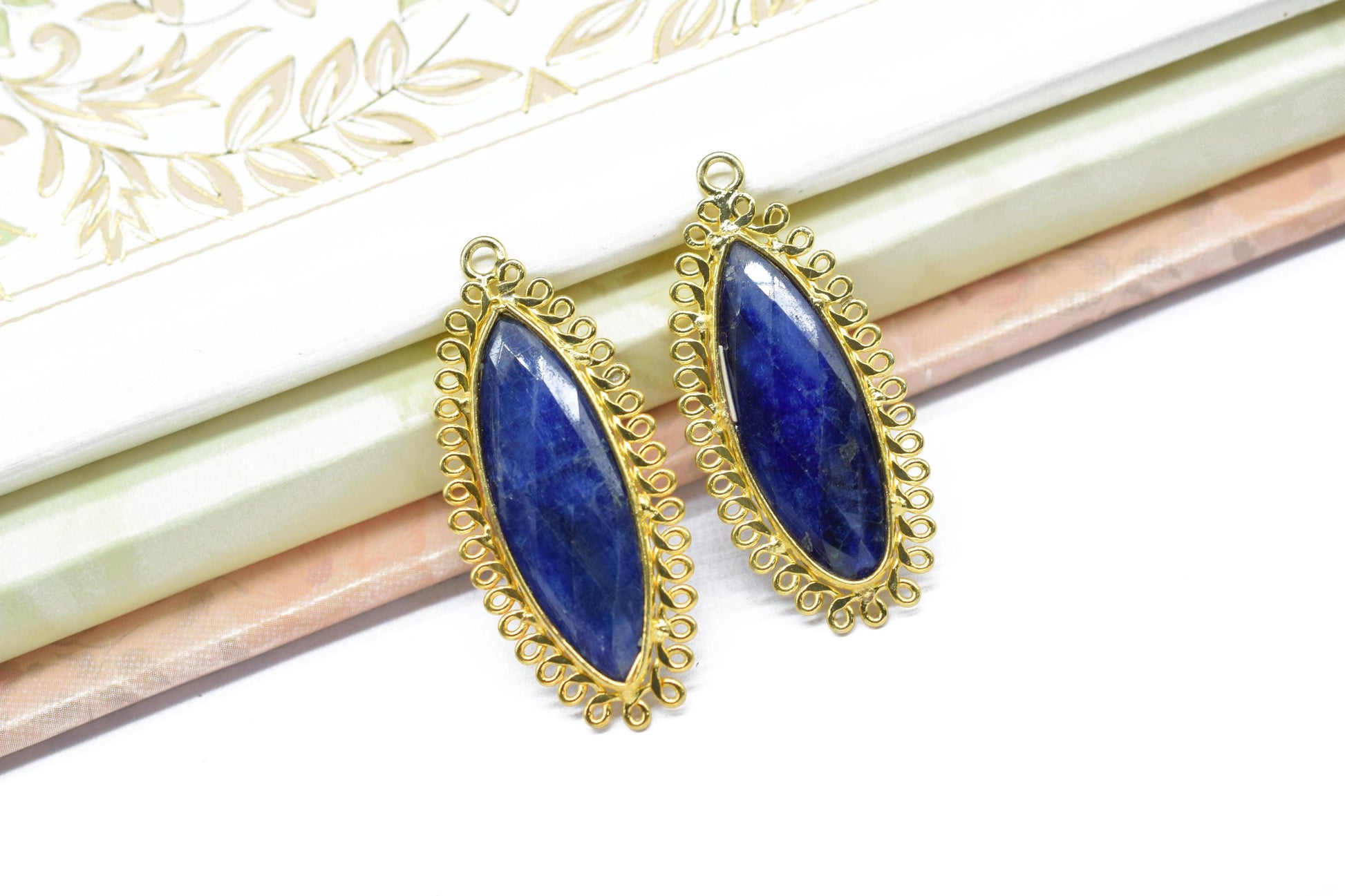 Blue Sapphire 10x30mm Teardrop Bezel Charm,Long charms,Gemstone Brass Component,Single Bail Pendant,Handmade Jewellery Connectors,B'day gift