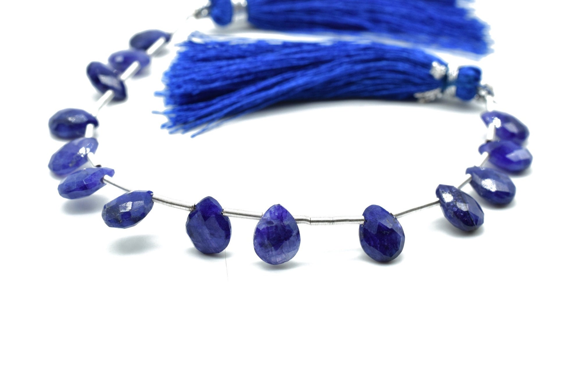 Blue Sapphire 6x8mm TearDrop Briolettes,Sapphire drops,Jewelry making beads,Supplies beads,Sapphire Pear shape Briolettes,Briolettes strand