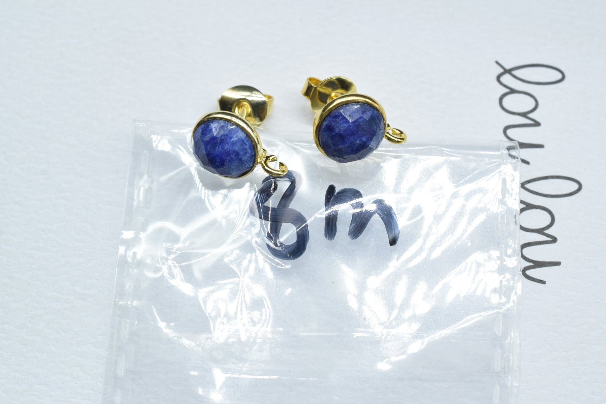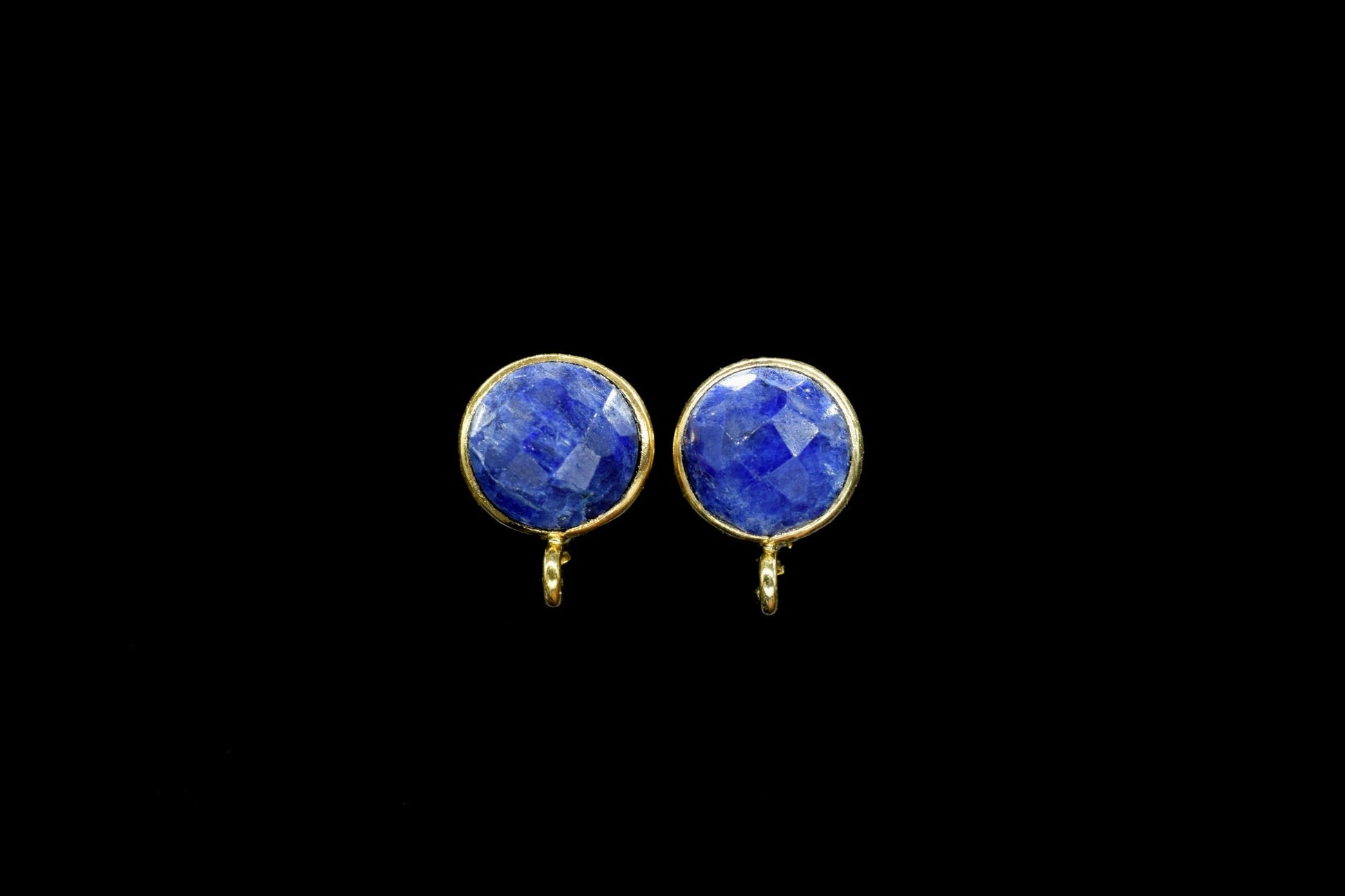 Blue sapphire 8mm Round Earring Connector,Gemstone Connector Post Stud,Craft Supplie,Jewelry Findings,Jewelry Making Connector,Sapphire Stud