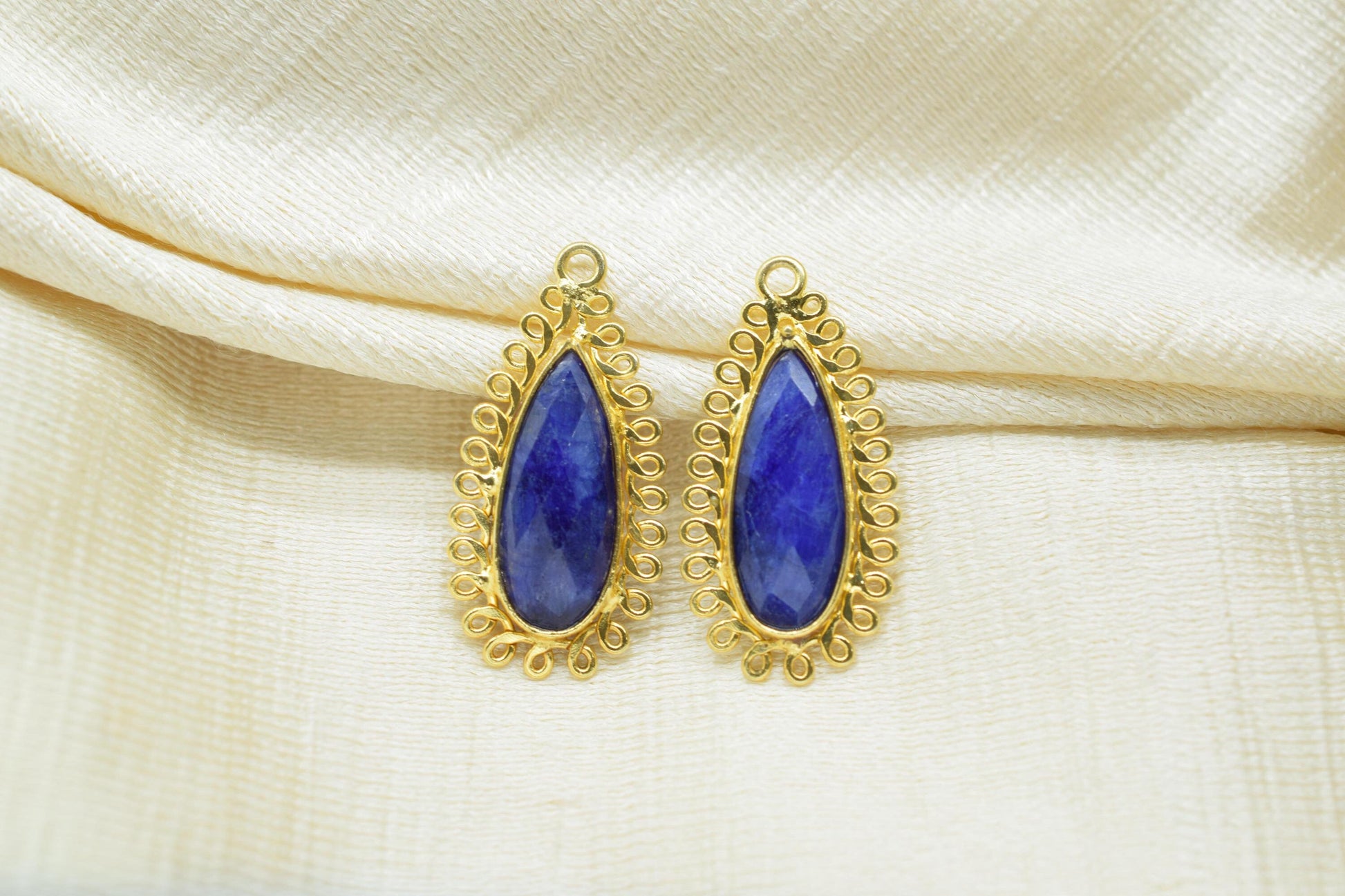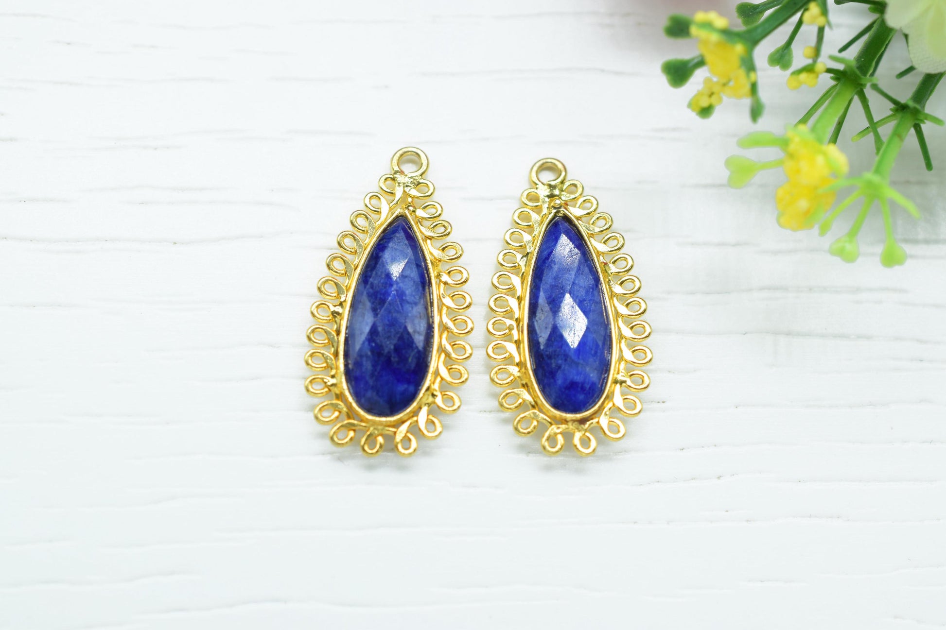 Blue Sapphire 8x20 Teardrop Bezel Charms,Wholesale Jewelry,Single Bail Pendant,Gemstone Brass Component,Handmade Jewellery Connectors,Gift