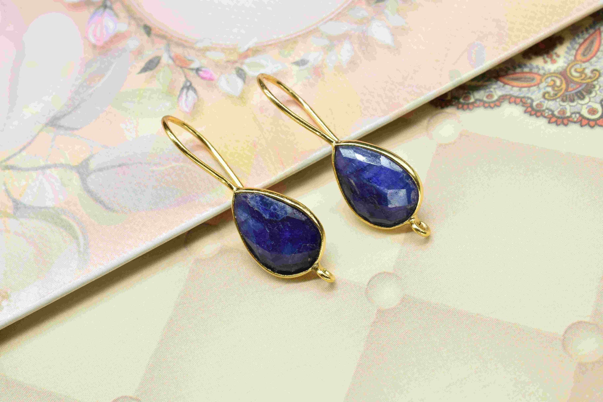 .Blue Sapphire 9x13mm Teardrop Earring Connector,Sapphire Earring Studs,Gold Plated Earring Connector, Sapphire Teardrop Studs,Jewellery Making