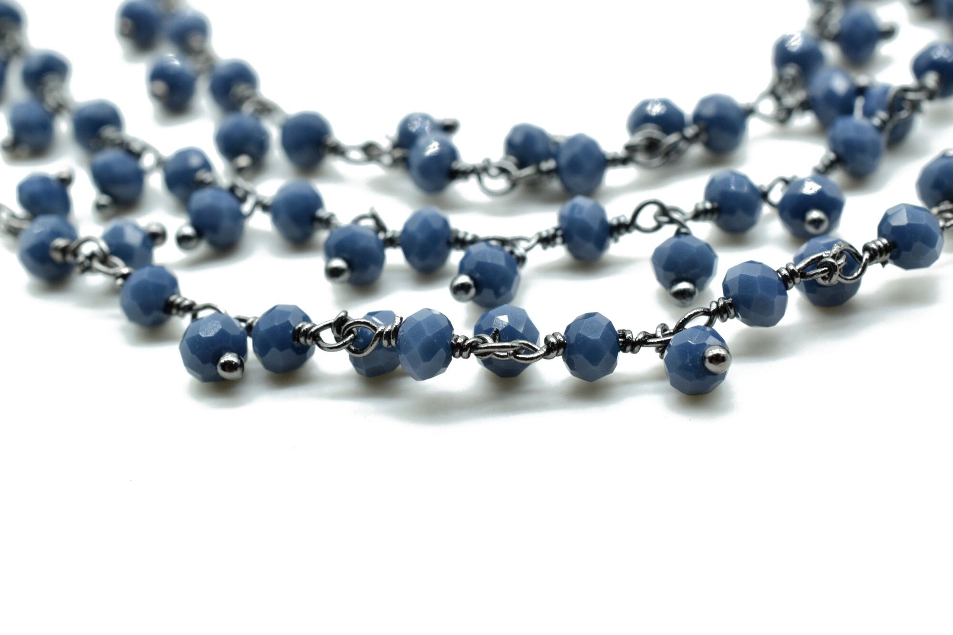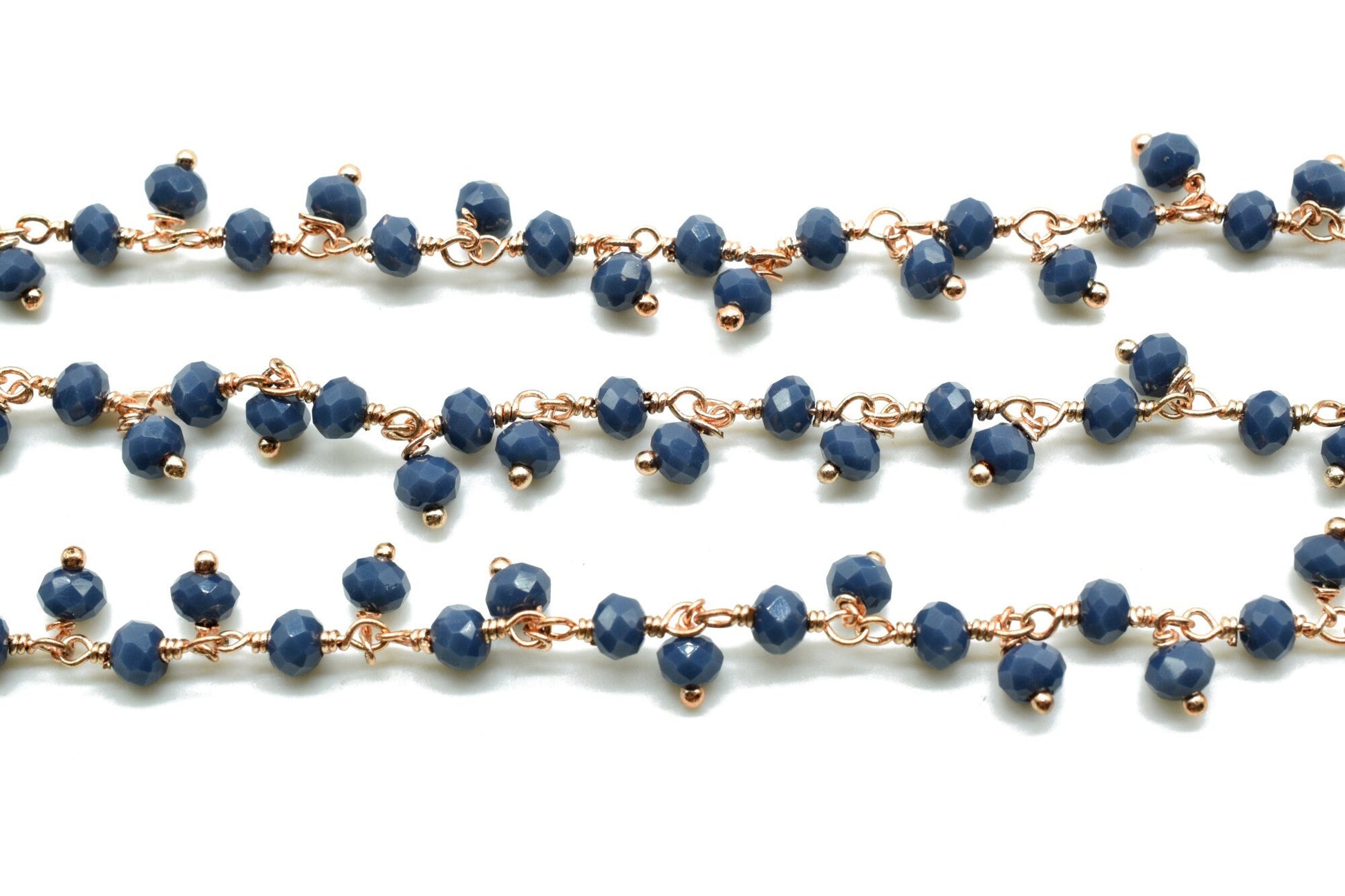 Blue sapphire Cluster Beaded Chain, Gold Plated wire wrapped Rosary Chain,Dangling Faceted Wire Wrapped Beaded Chain,Soldby Foot Wholesale