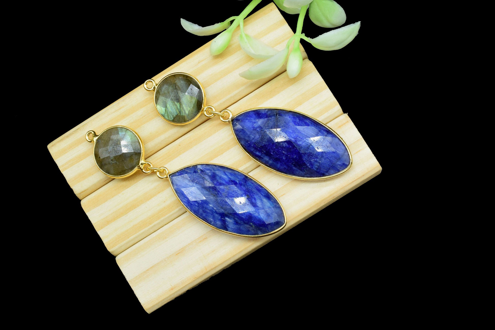 Blue Sapphire Component pendant,Multi Gemstone Dangle Earring,Necklace Connector,Handmade jewelry,Dangle pendant Charm,Labradorite Connector