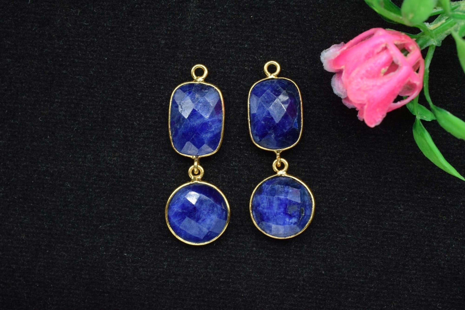 Blue Sapphire Connector,Station Bezel Link,Natural Gemstone Pendant Charm,Blue Sapphire Jewelry,Gemstone Earring Connector,Handmade Pendant
